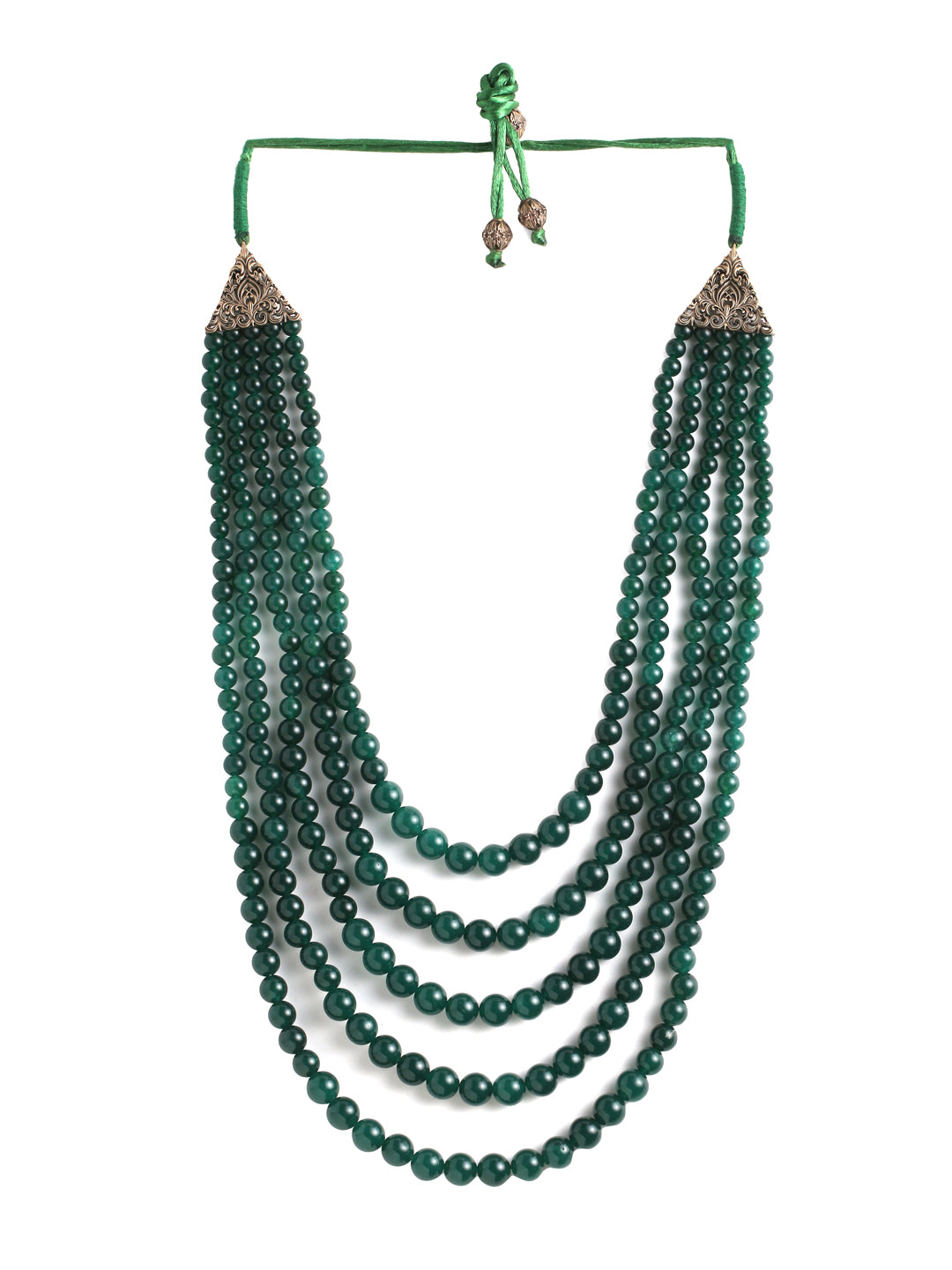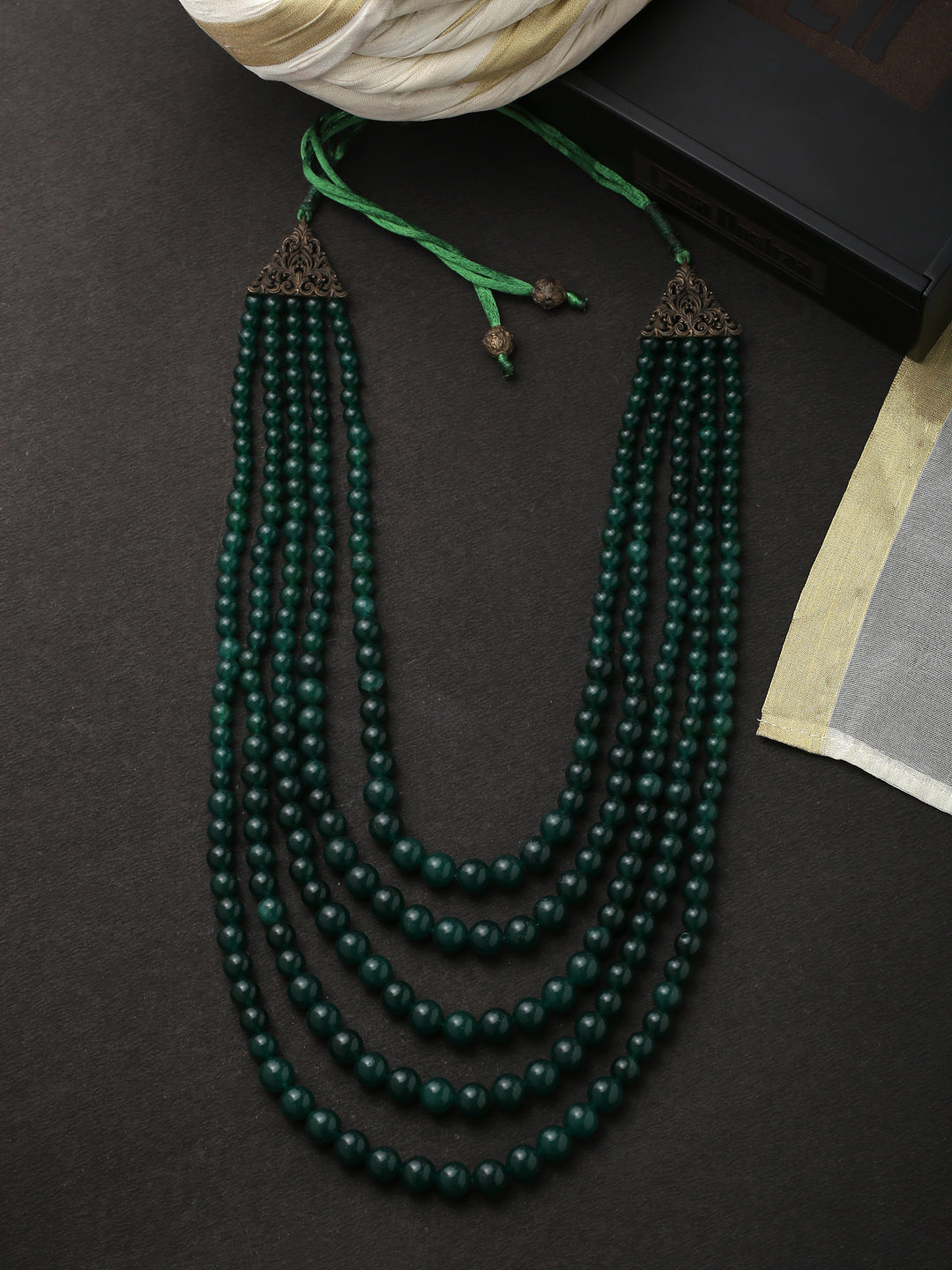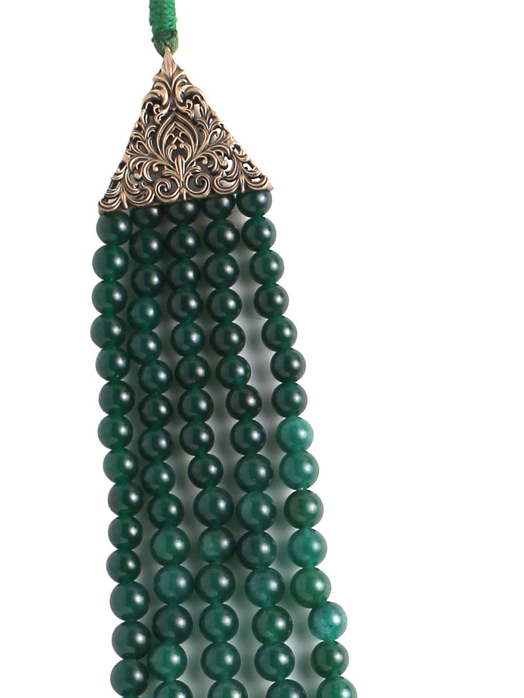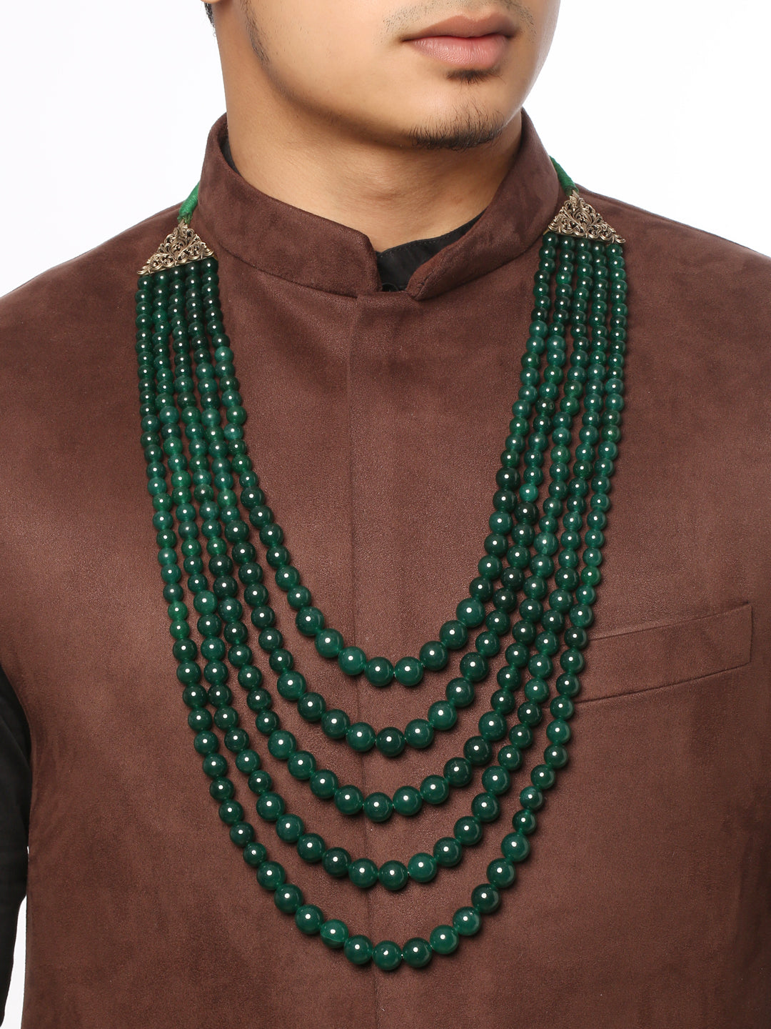 The traditional Green Brass Mala for men is fashioned with Pearl Beads that are extremely durable. This accessory is ideal for traditional situations like weddings and festivals. It is recommended to utilise a green mala in your meditation to establish a connection with nature, to seize fresh chances, or to pursue personal development.