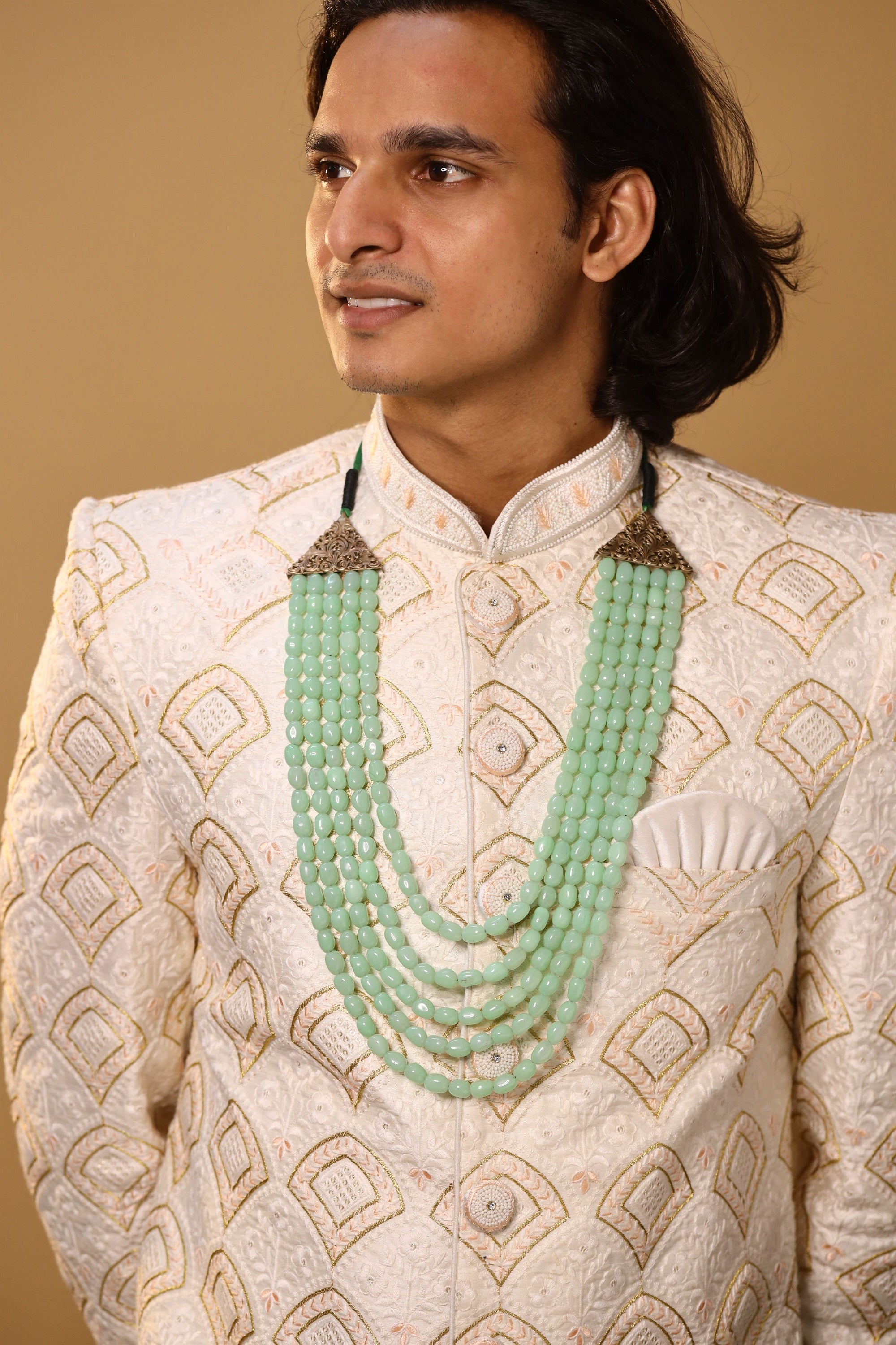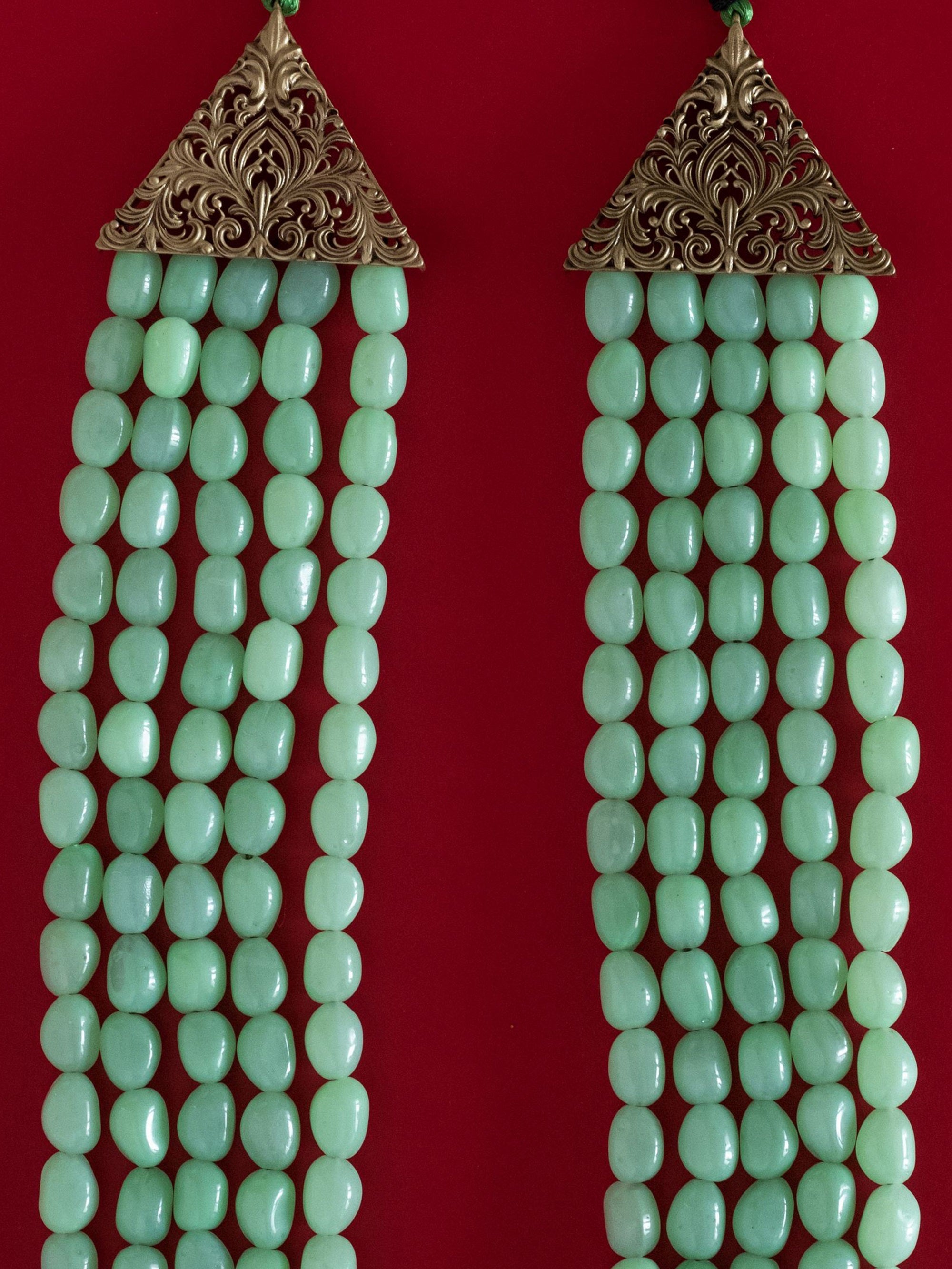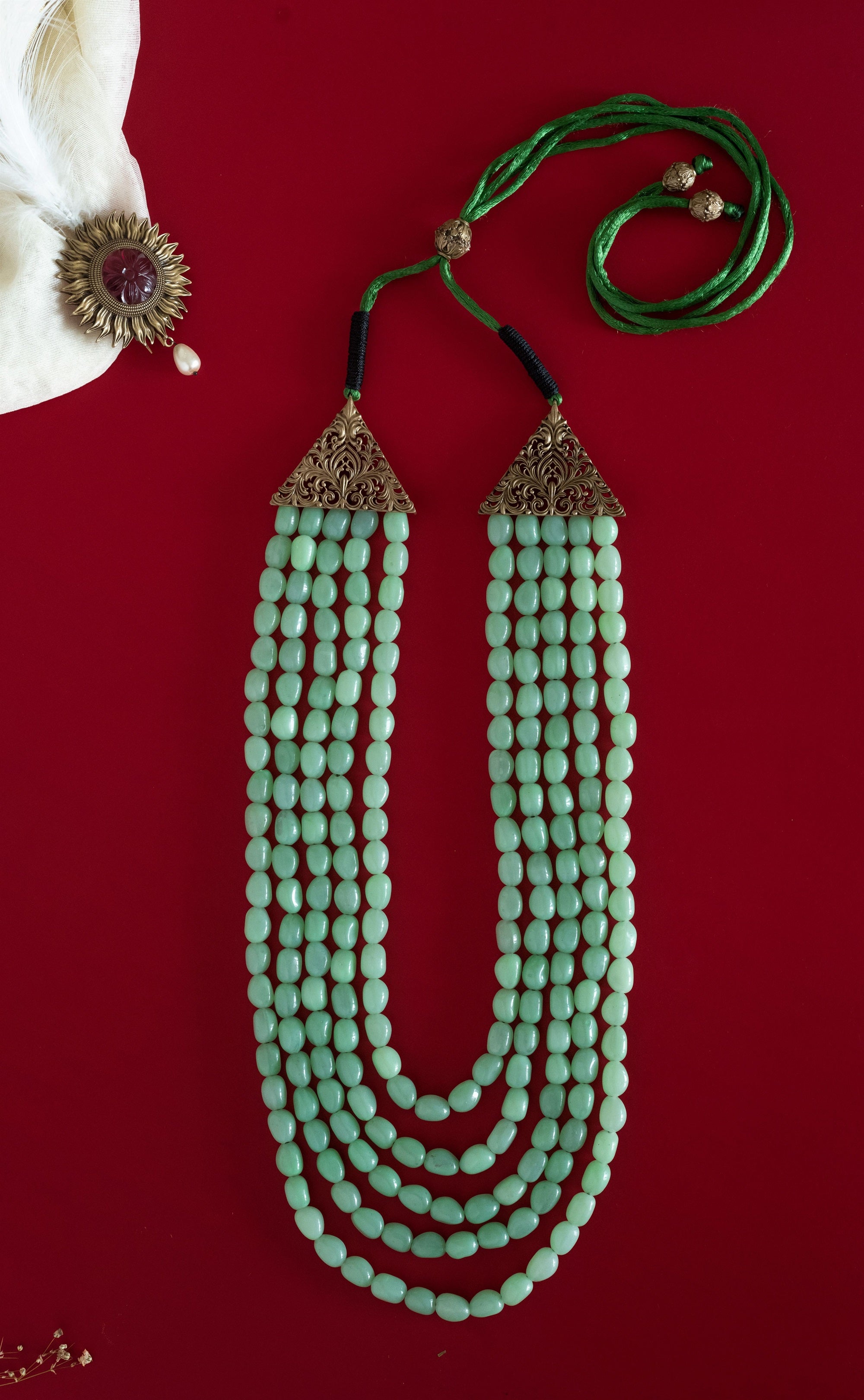 The Green Glam Mala is a luxurious string of beads made from high-quality green stones. The polished stones are strung together with a durable cord and finished with a tassel. This mala is designed to be used during meditation or as a glamorous and meaningful accessory.