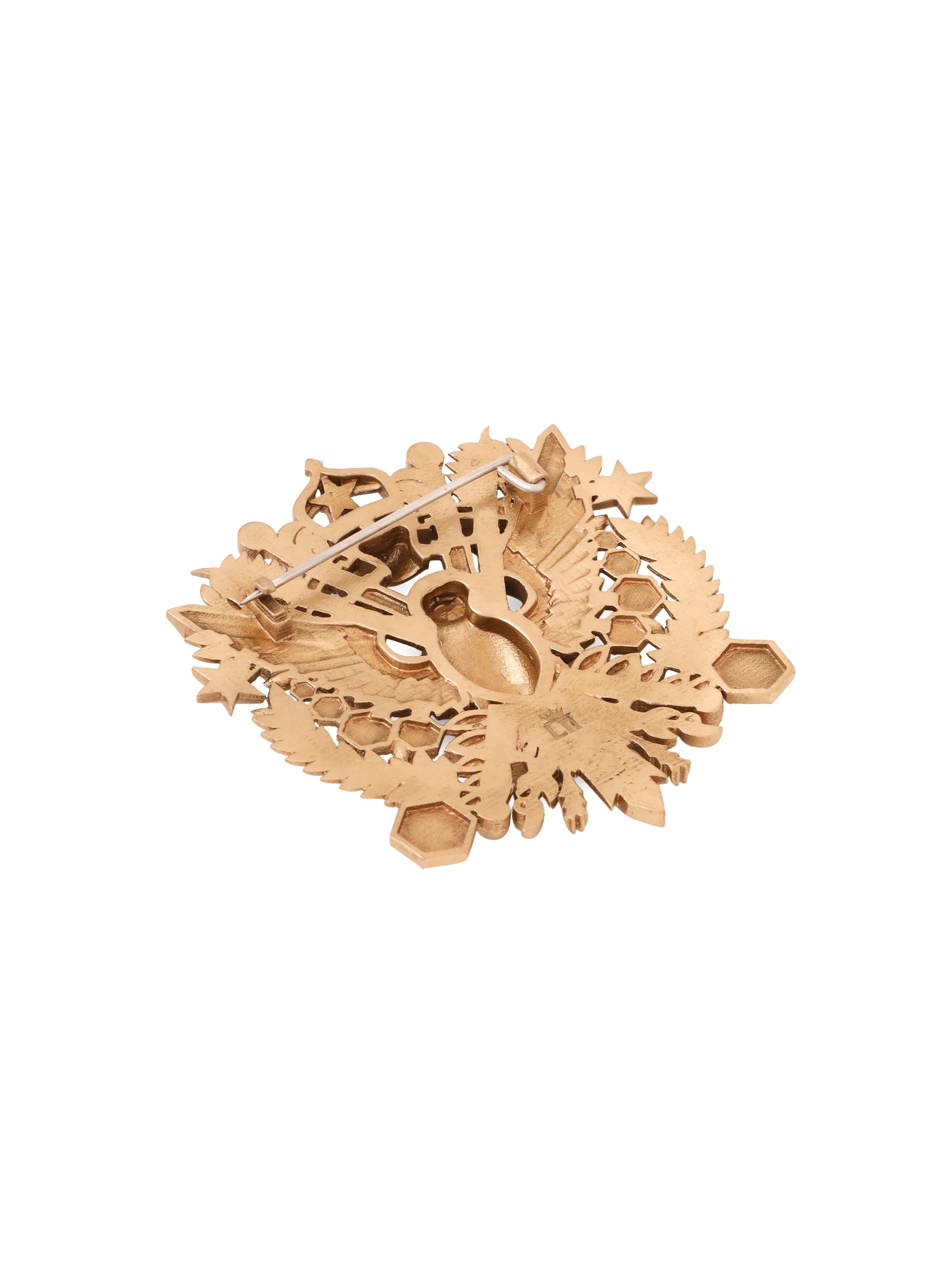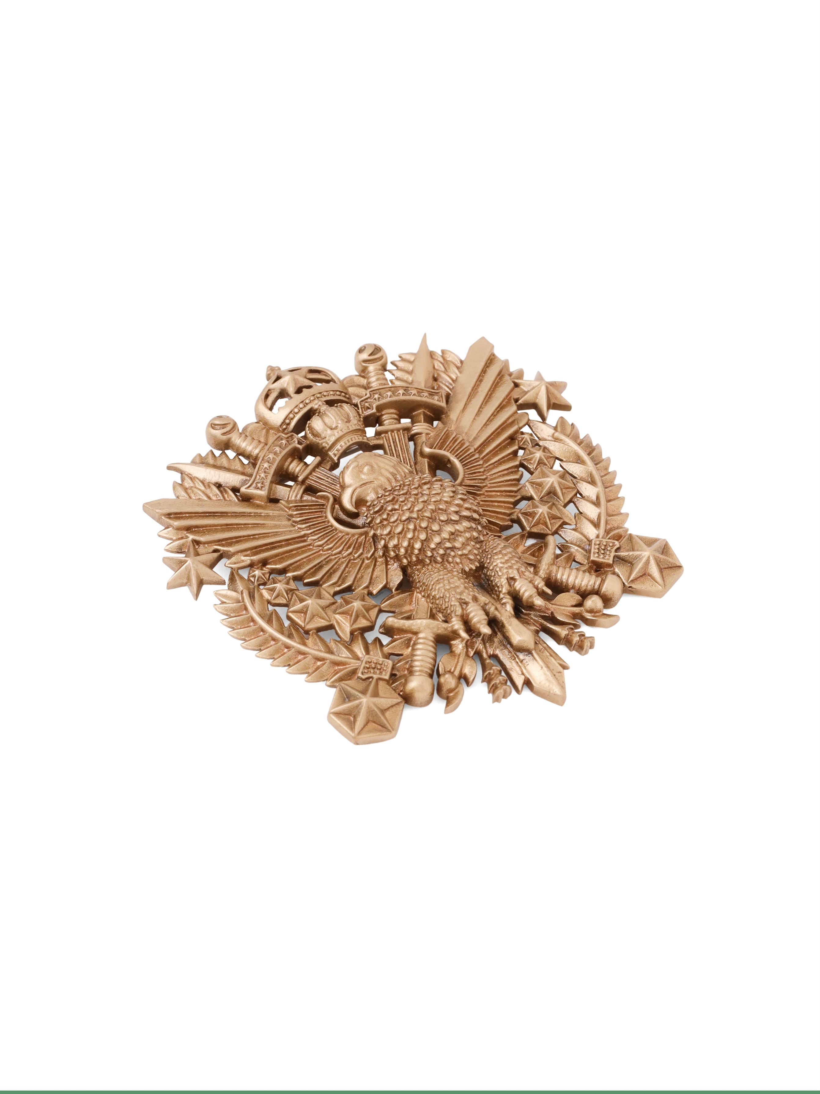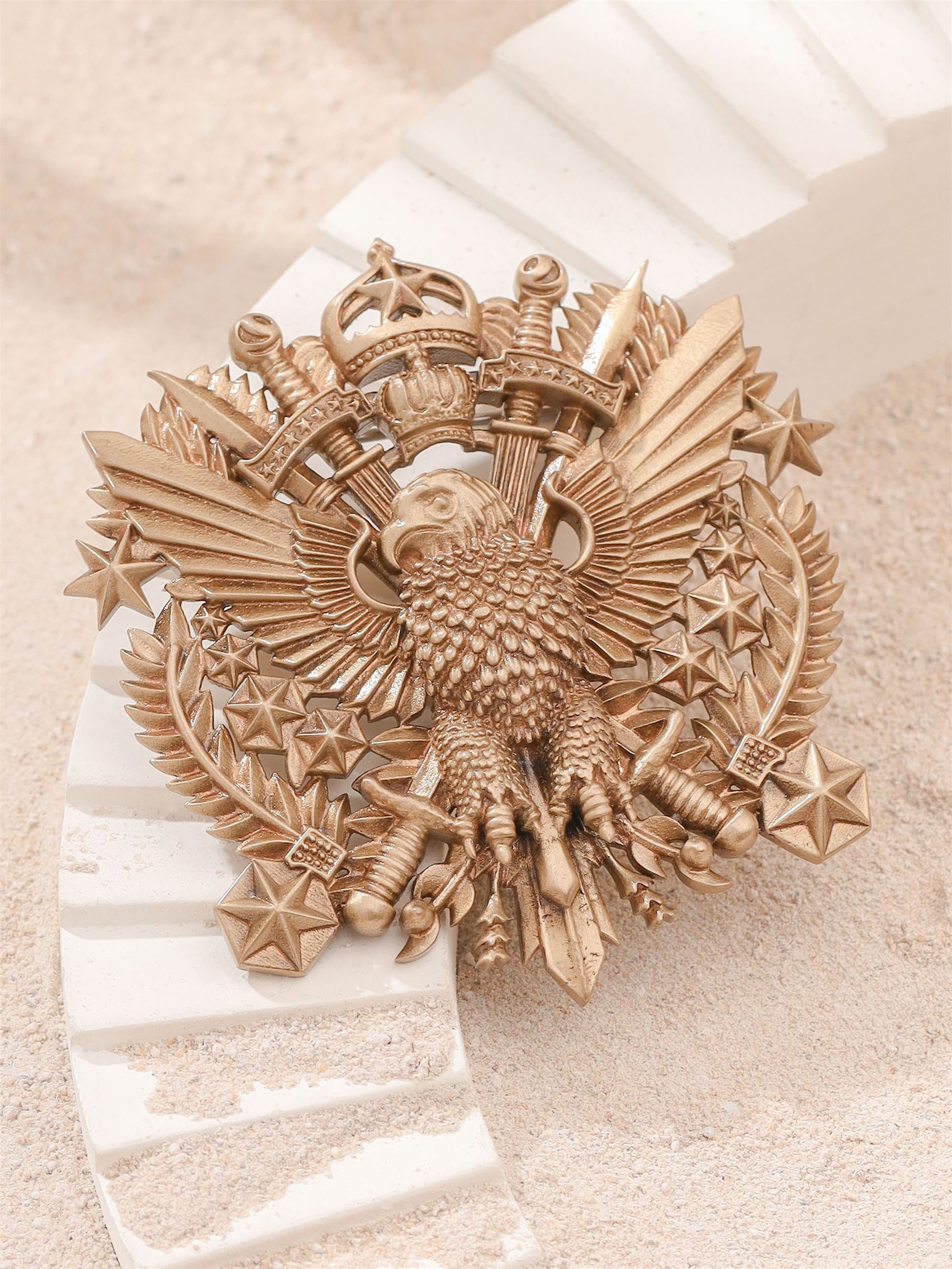 | Command attention and exude authority with the Imperial Eagle Emblem Brooch, a distinguished accessory that embodies power and prestige. Crafted from lightweight metal, this brooch features a majestic eagle with outstretched wings, crowned by regal symbols of royalty and strength. Intricately detailed with swords, stars, and laurel leaves, it’s a perfect blend of elegance and grandeur. Ideal for enhancing the look of a coat, jacket, or bandhagala, the Imperial Eagle Emblem Brooch adds a touch of aristocratic flair to your attire. Whether you're attending a formal event or seeking a statement piece that reflects your leadership qualities, this brooch is the perfect accessory to make a bold impression |