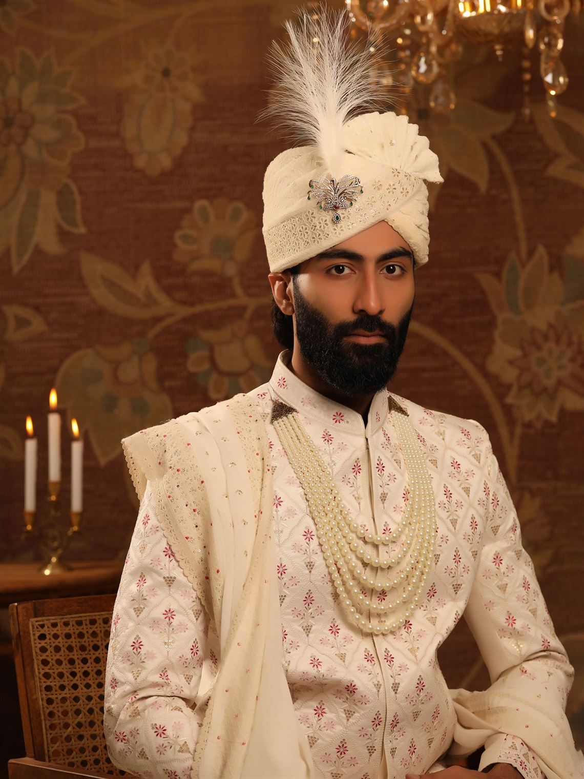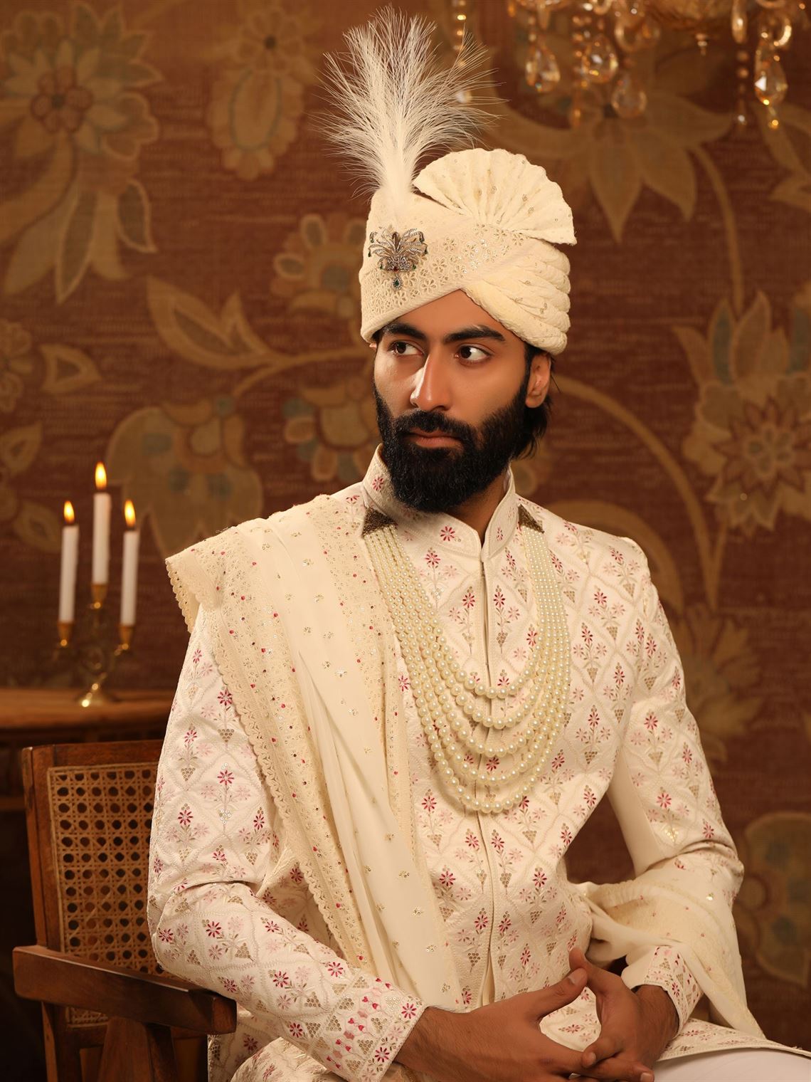 The Imperial Kalangi for men is the perfect accessory to complete your traditional look. With its intricate design and premium quality, this Kalangi is a must-have for any groom. This accessory pairs beautifully with sherwanis, bandh galas and wedding suits, making it a versatile choice for any occasion.