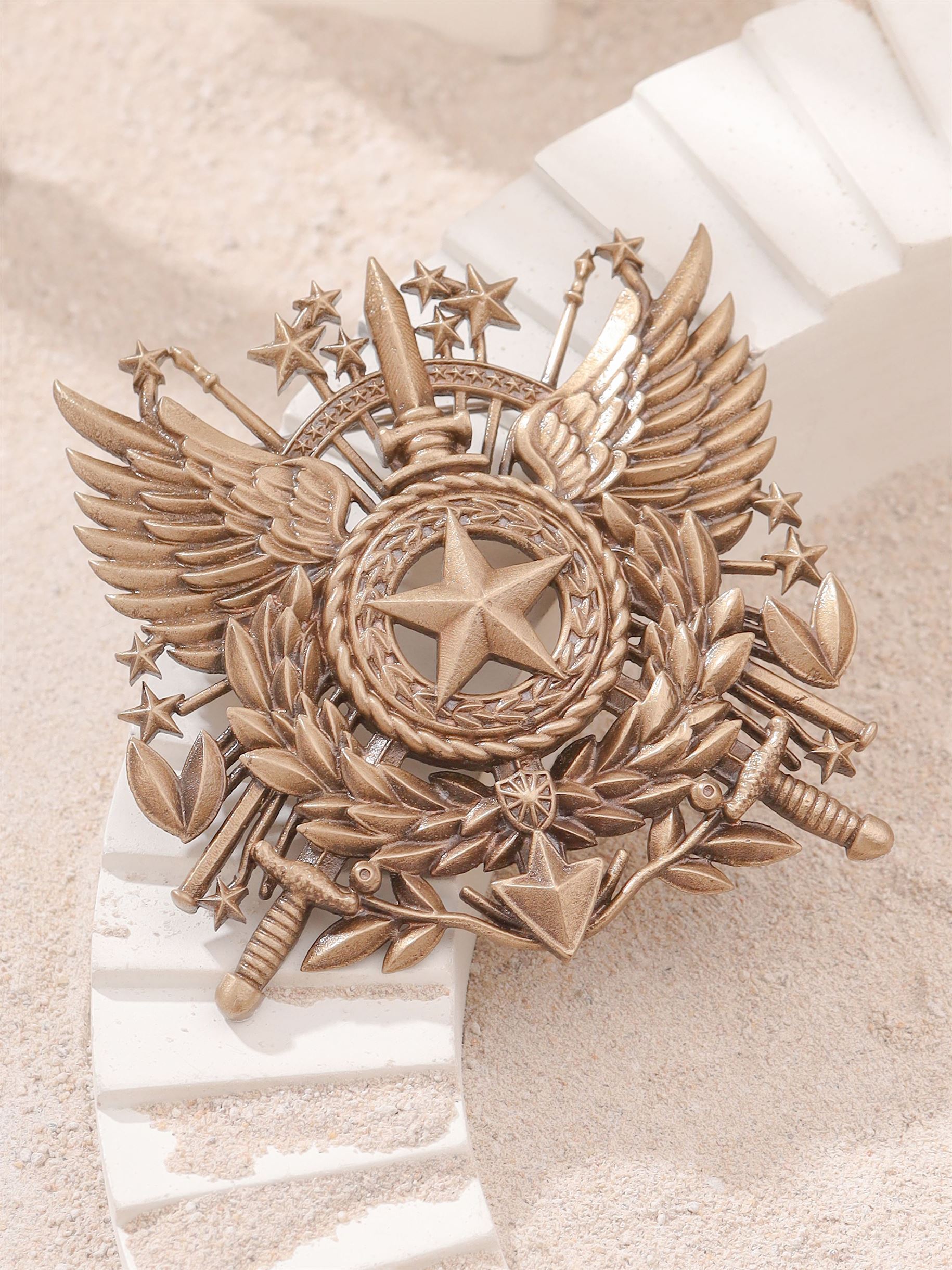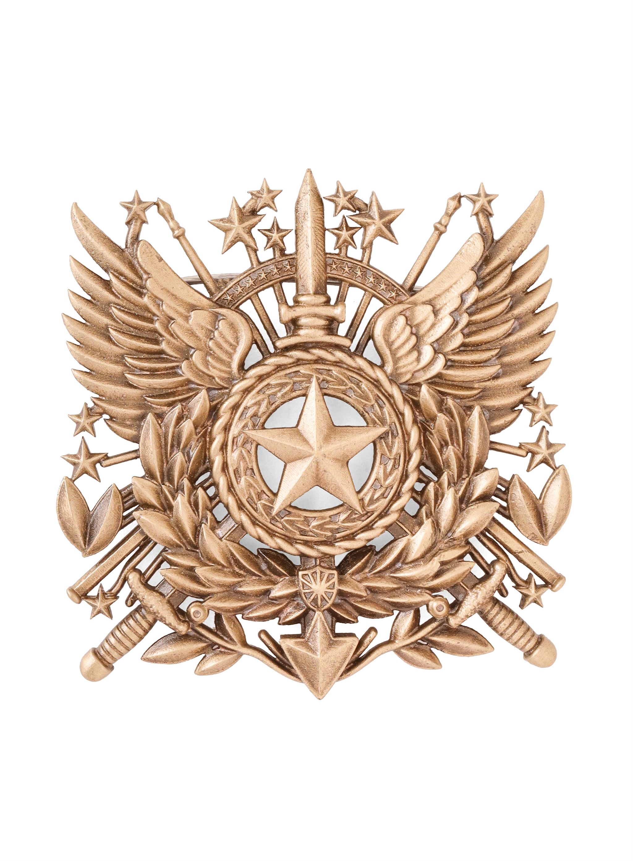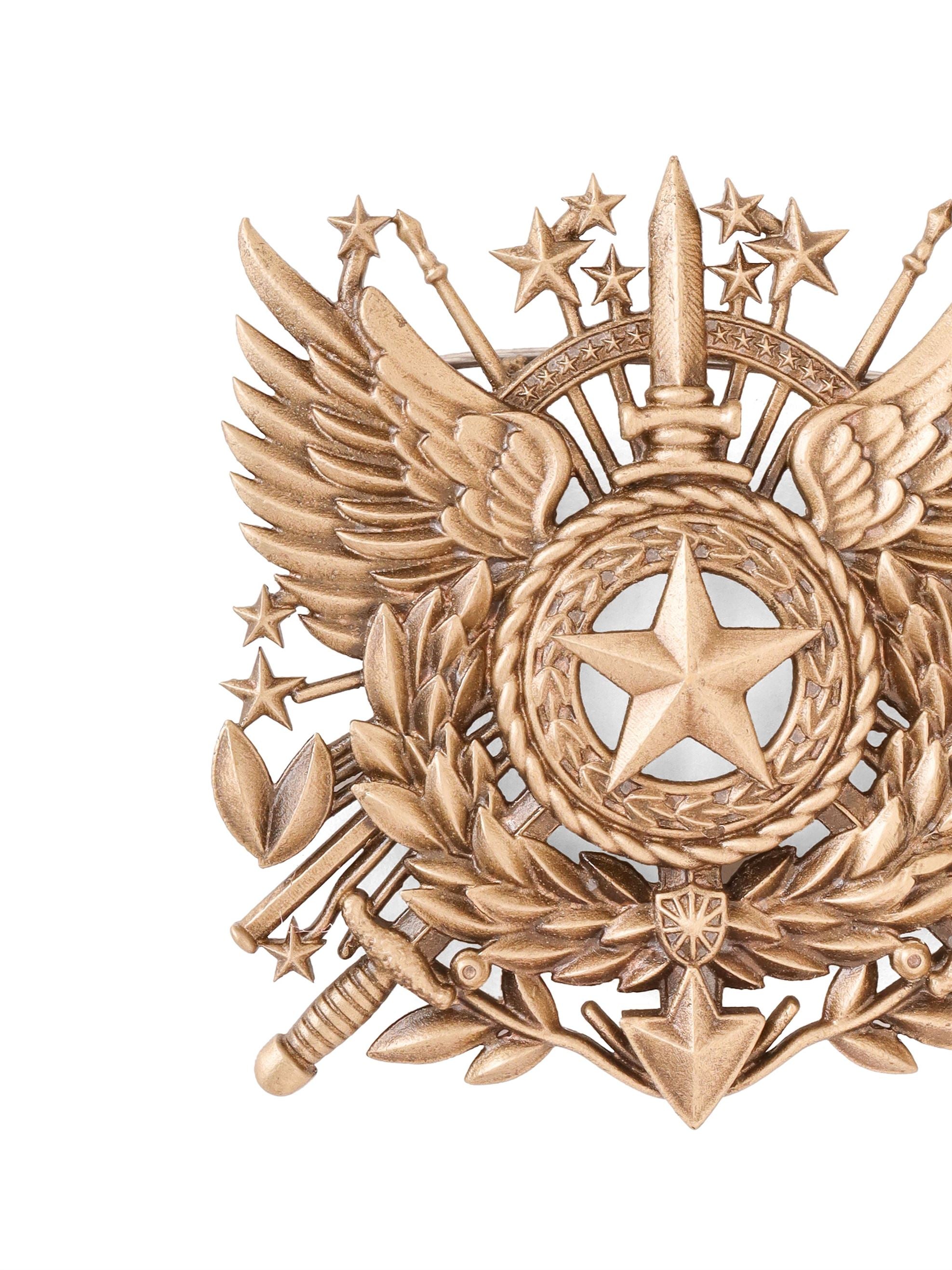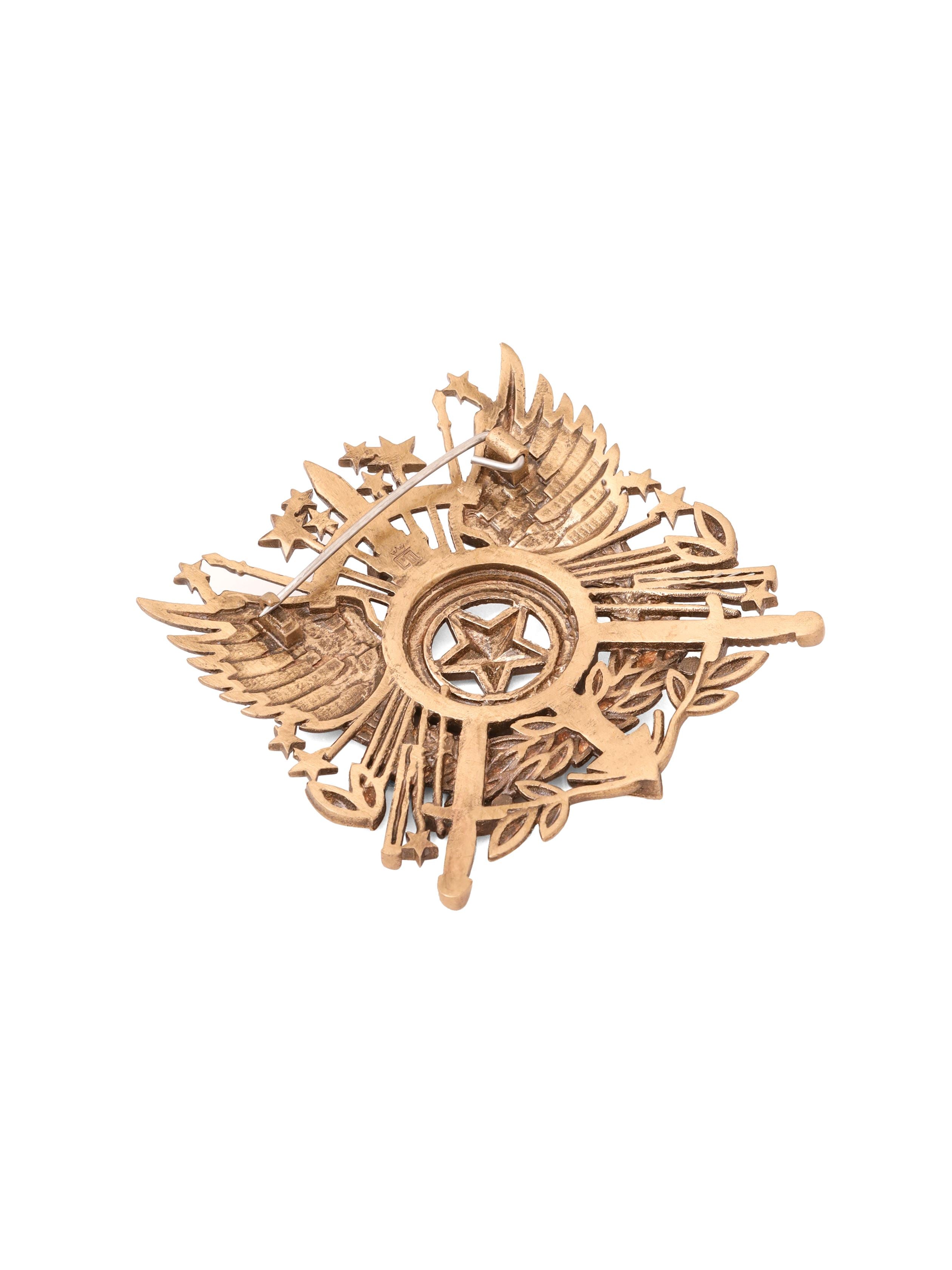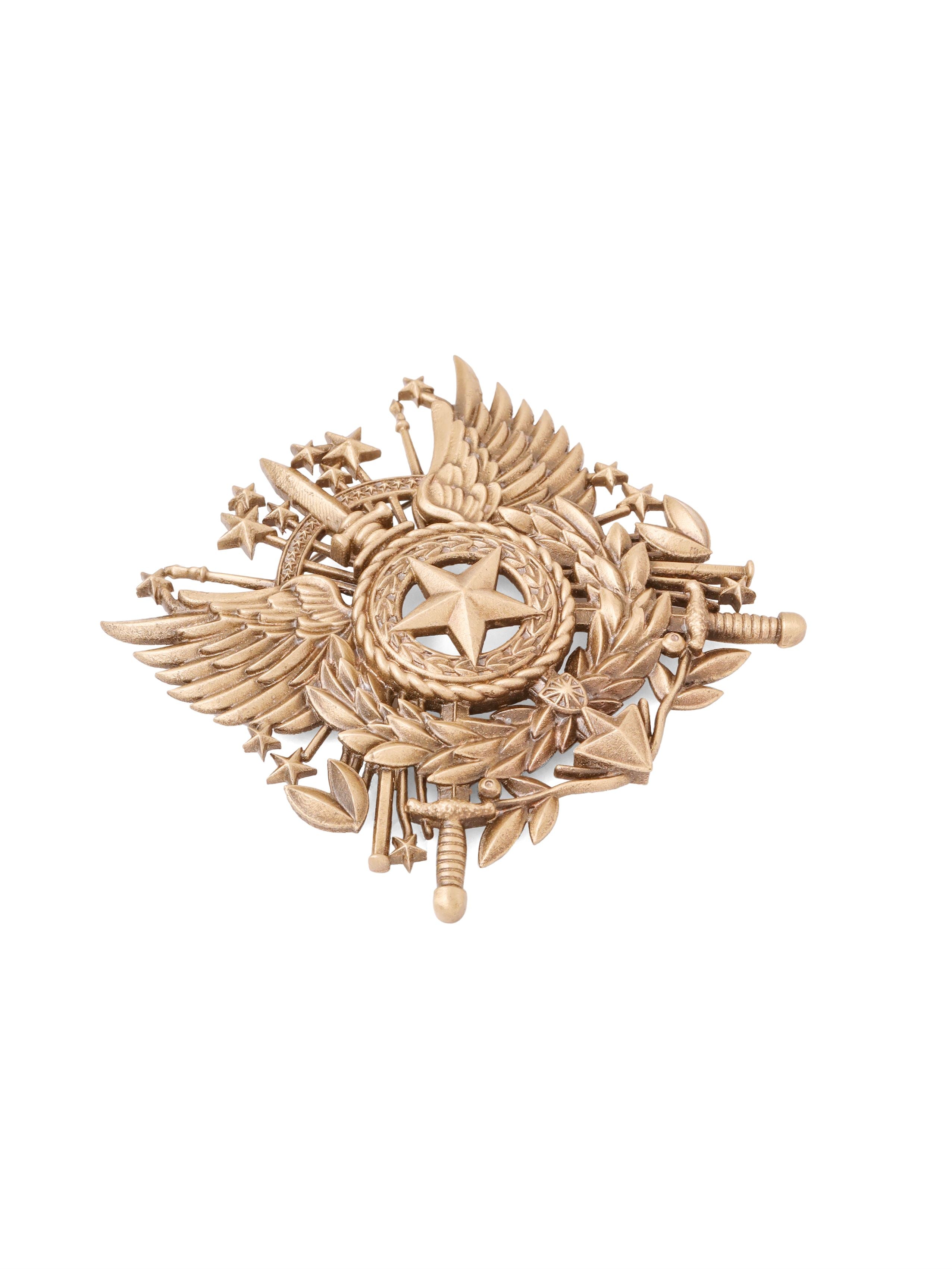 | Command attention with this lightweight brass brooch, ideal for coats, jackets, and bandhgalas. Featuring a central star surrounded by wings, swords, and laurel wreaths, this emblem symbolizes strength, honor, and victory. Its intricate design reflects a legacy of military excellence and adds a bold, royal touch to any attire. |