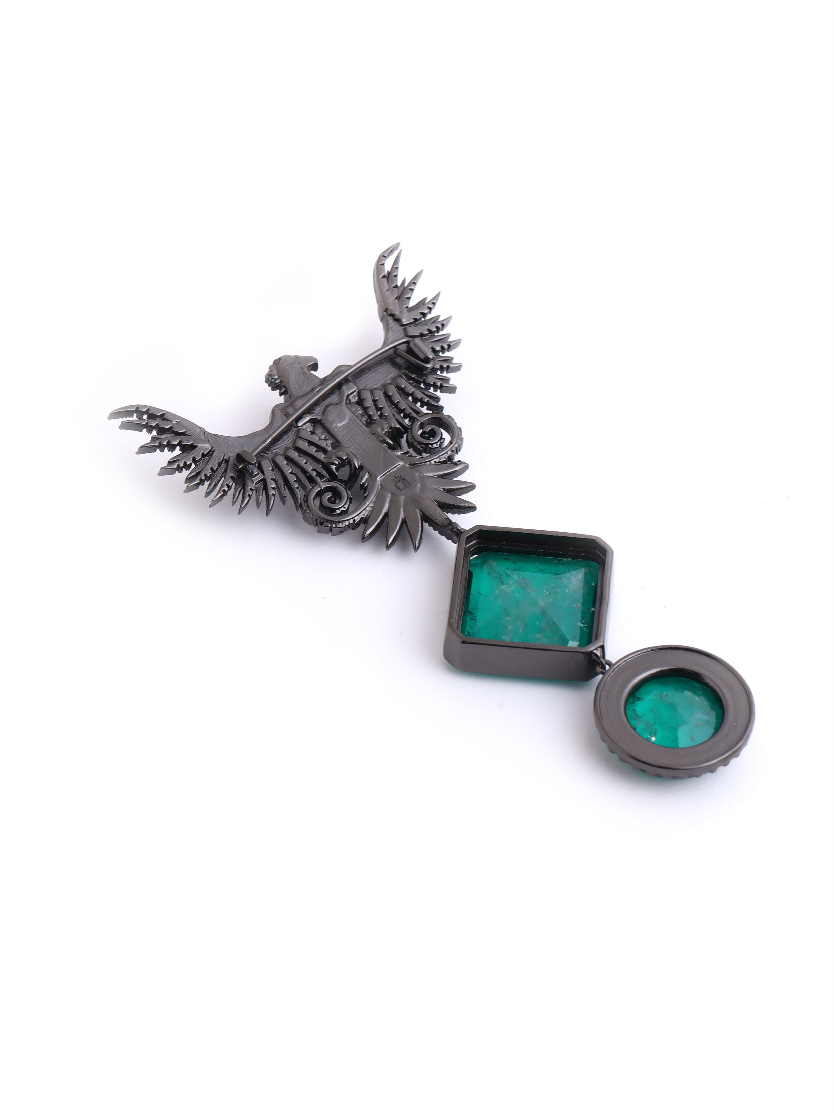 "The Jwala-e-Jung Brooch is a captivating symbol of resilience and rebirth. This accessory showcases an intricately designed phoenix in all its fiery glory, radiating majestic aura. Adorned with brilliant green gemstones that mirror its radiant plumage, it embodies the triumph of overcoming challenges and rising stronger. With empowering symbolism, the Brooch inspires courage to face life's trials. Wear it with pride as a timeless emblem of resilience, reminding you to emerge from adversity with renewed strength and pride.