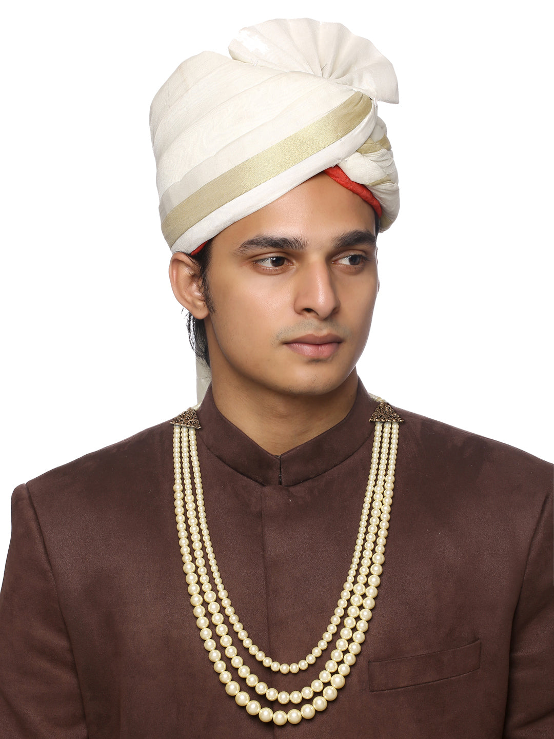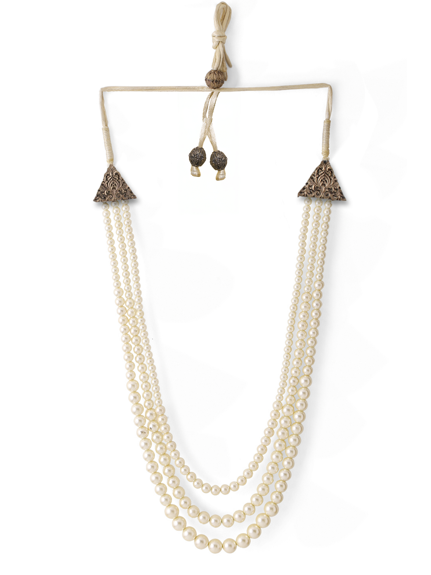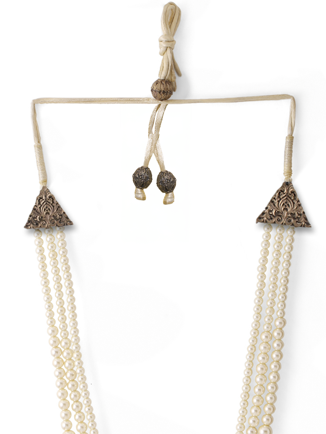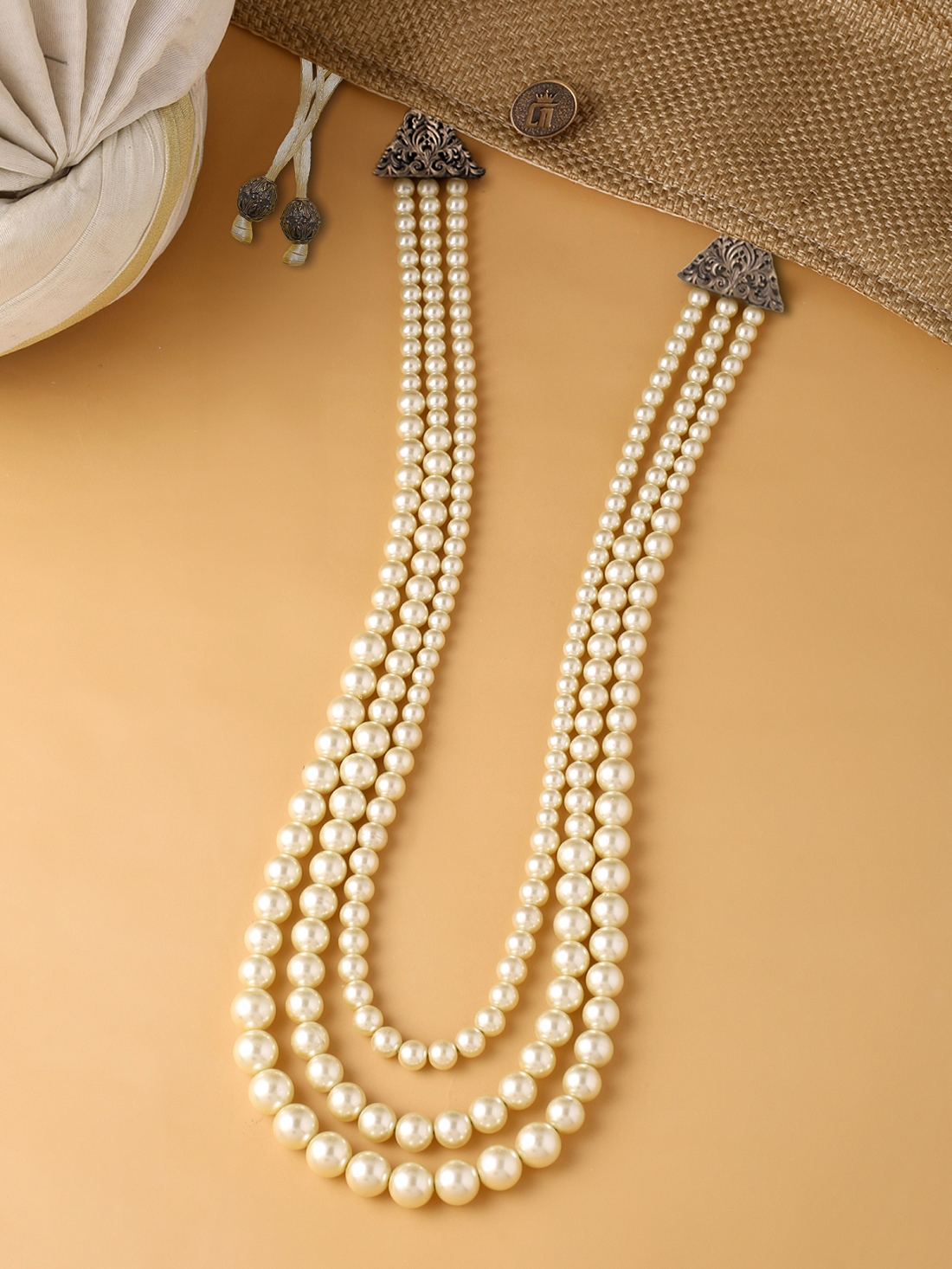 The off-white gold-toned pearls are incredibly attractive and will undoubtedly give a royal appearance. Wearing this mala will enhance your individuality in numerous ways. This mala is expertly crafted from traditional gold-toned pearls to make a lasting impression. Use this Mala to give you a touch of class and make you stand out!