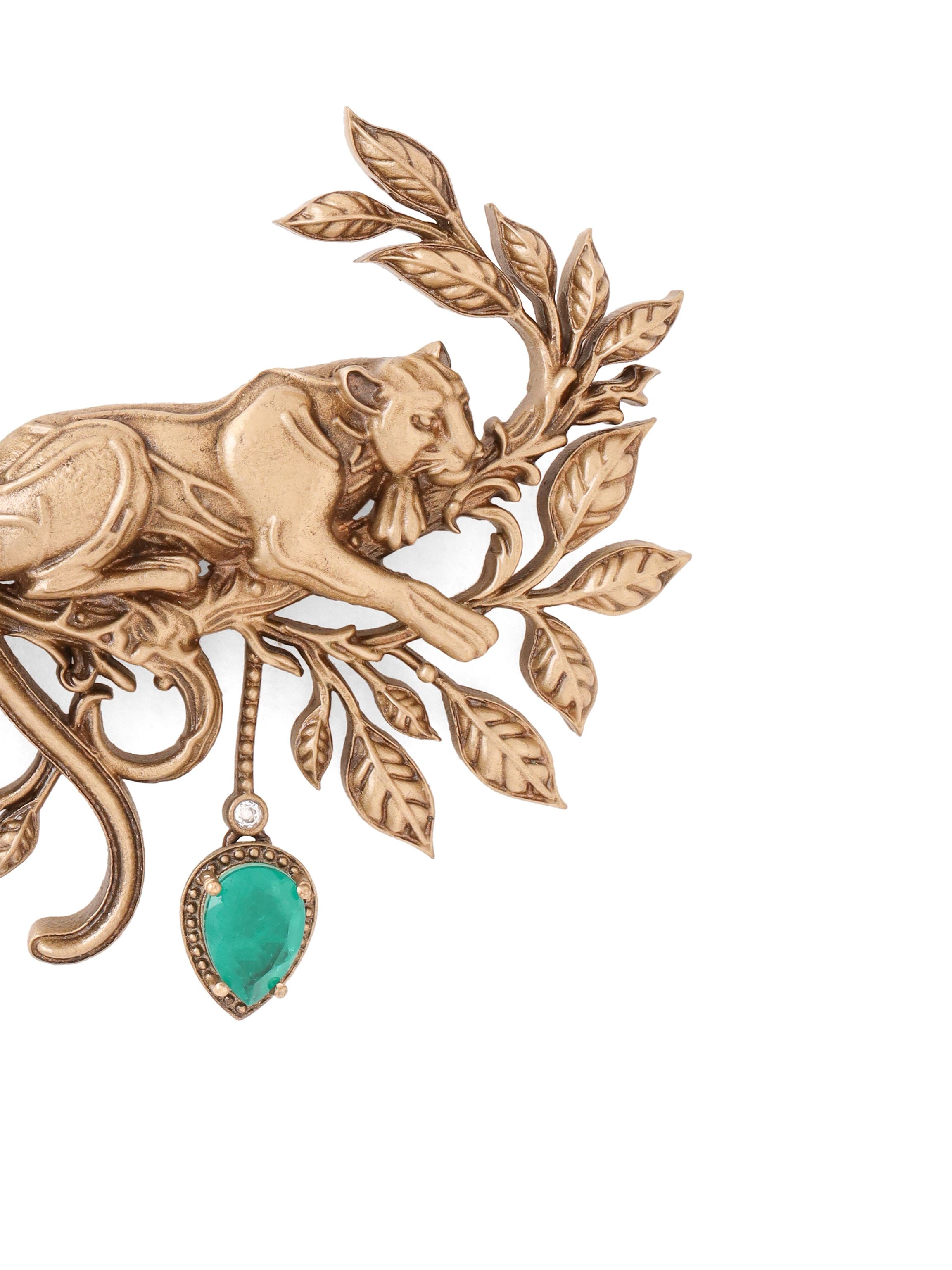 Elevate your ensemble with the Majestic Panther Brass Brooch, a stunning accessory that captures the essence of elegance and power. Expertly crafted from lightweight brass, this brooch features a regal panther gracefully poised on a leafy branch, symbolizing strength and grace. The detailed design is accentuated with a striking green teardrop pendant, adding a touch of sophistication to the piece.