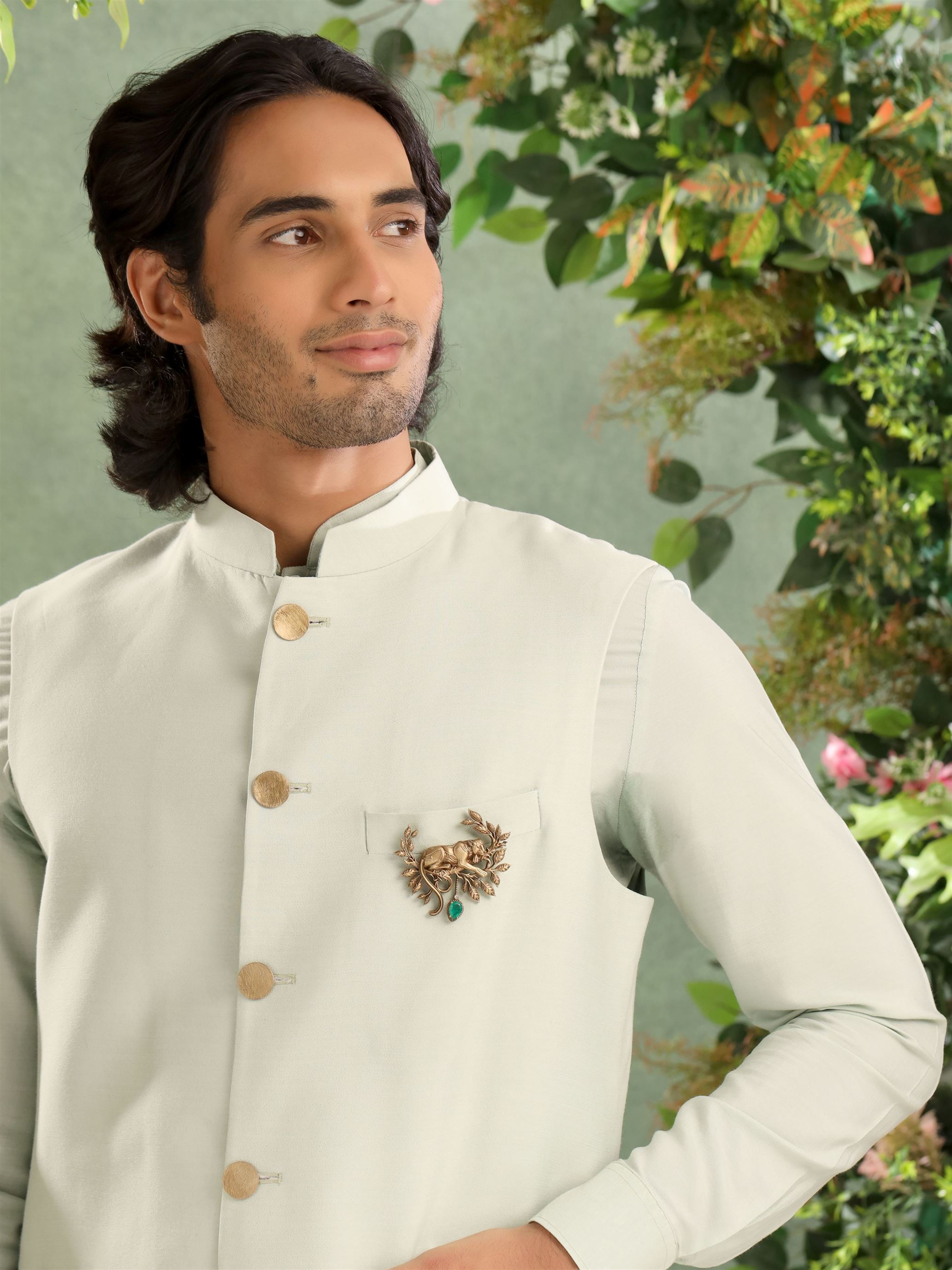 Perfect for adorning your coat, jacket, or bandhagala, this versatile brooch seamlessly blends with both formal and semi-formal attire. Whether you're attending a grand event or looking to add a statement piece to your everyday outfit, the Majestic Panther Brass Brooch is sure to leave a lasting impression.