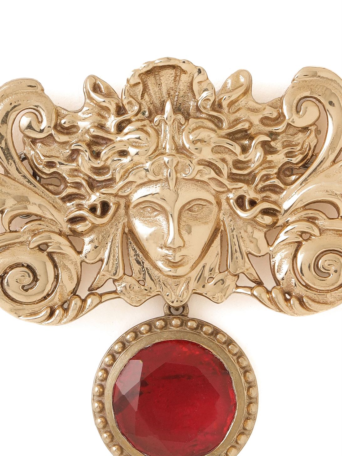 Medusa Brooch is a captivating accessory showcases an intricately designed Medusa, exuding an aura of enchantment and power. Crafted with artistry, the brooch captures the serpent-haired Gorgon's gaze that turns hearts to stone. Adorned with a brilliant green gemstone, it radiates a mesmerizing allure. Wear the Medusa Brooch as a bold statement of your inner strength and confidence, a reminder that facing life's challenges with unwavering poise can transform adversity into empowerment, just like the legendary Medusa herself.