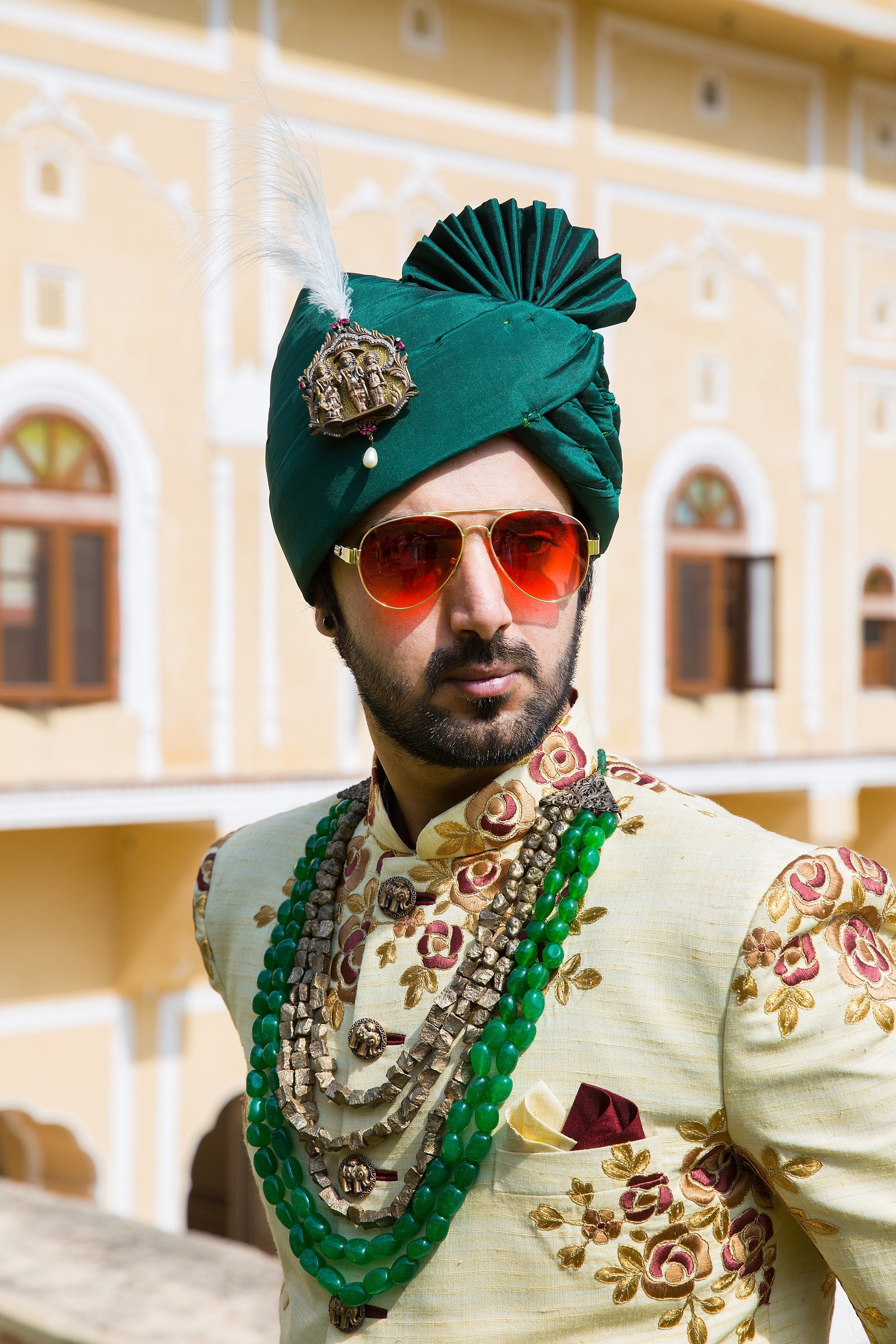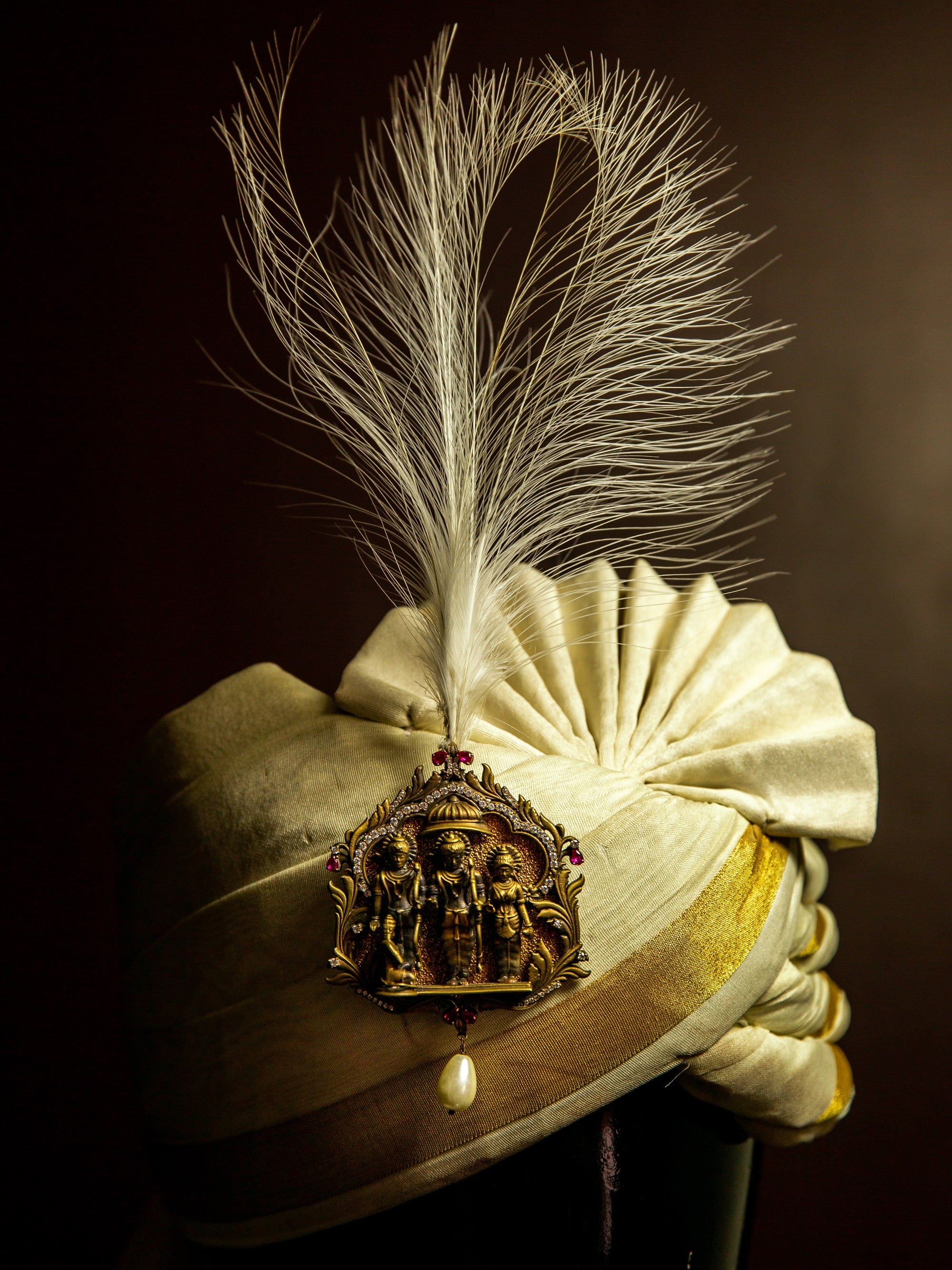 The Ram Darbar Kalangi is elegant and has a legacy of India's most renowned epic Ramayana. Wear it with a safa and grace the occasion with poise. The intricacy and detailing of the Kalangi is sure to steal the show. Be it an event that you're attending or one that you're hosting, this Kalangi is a sure winner!