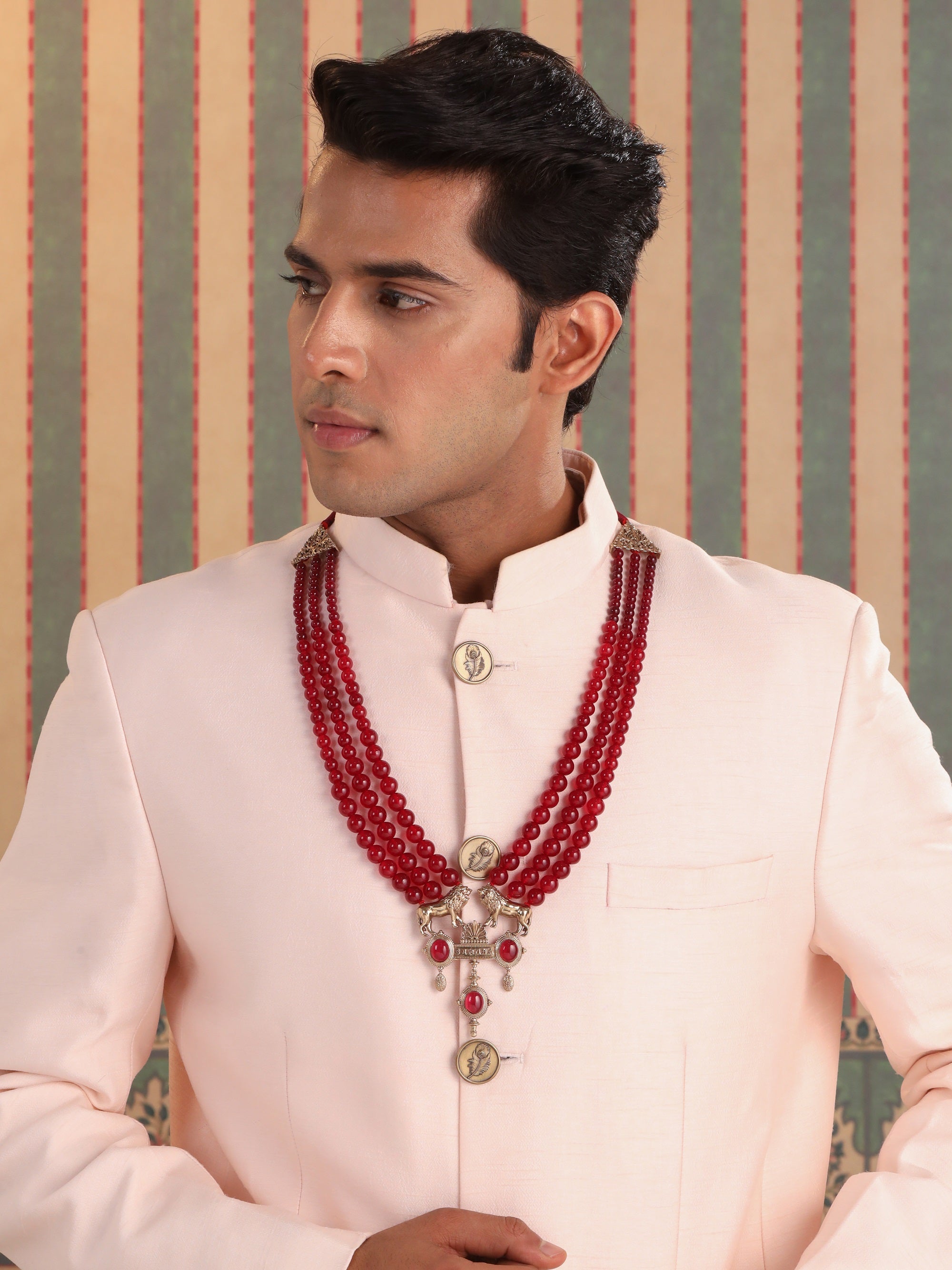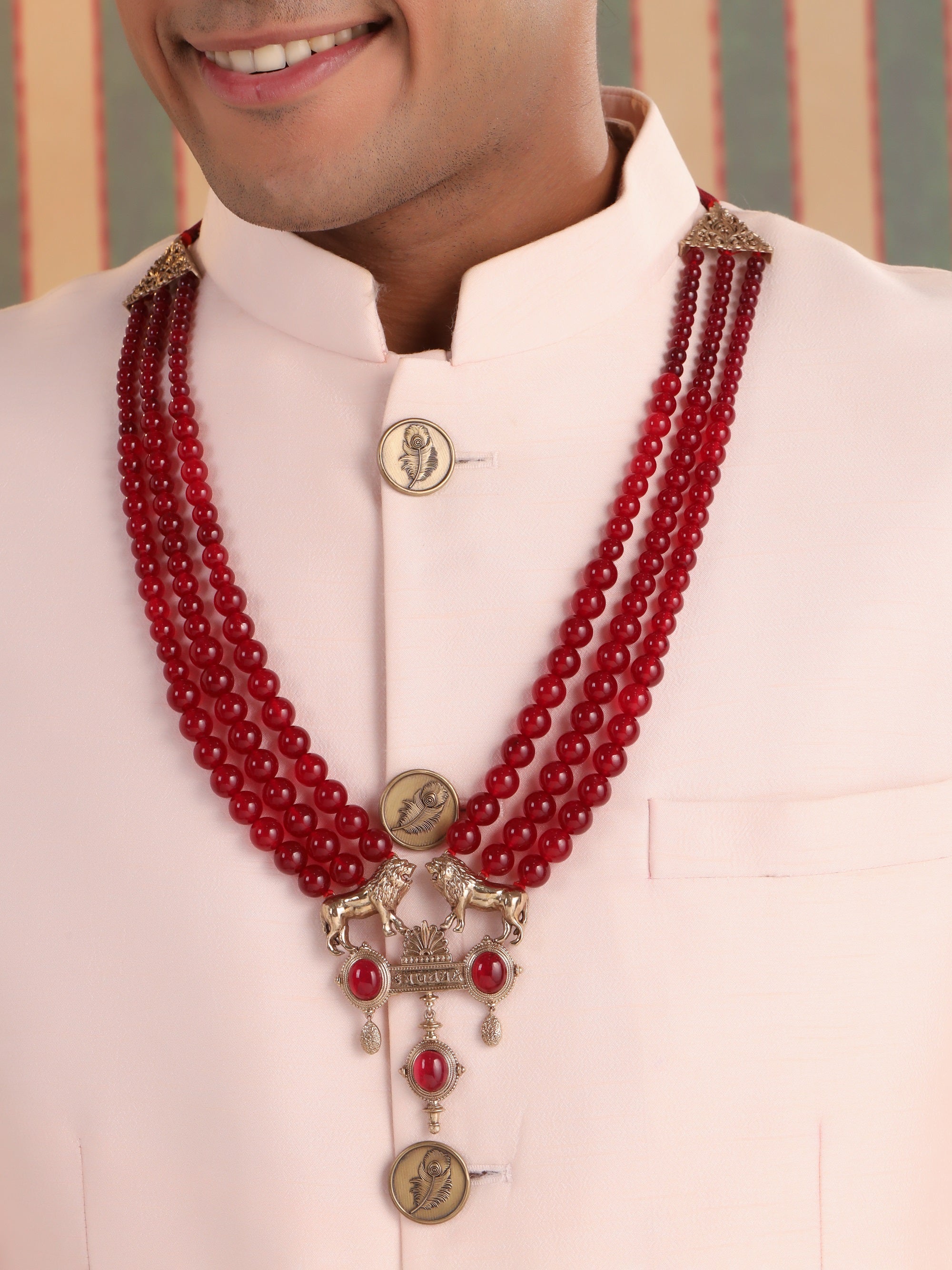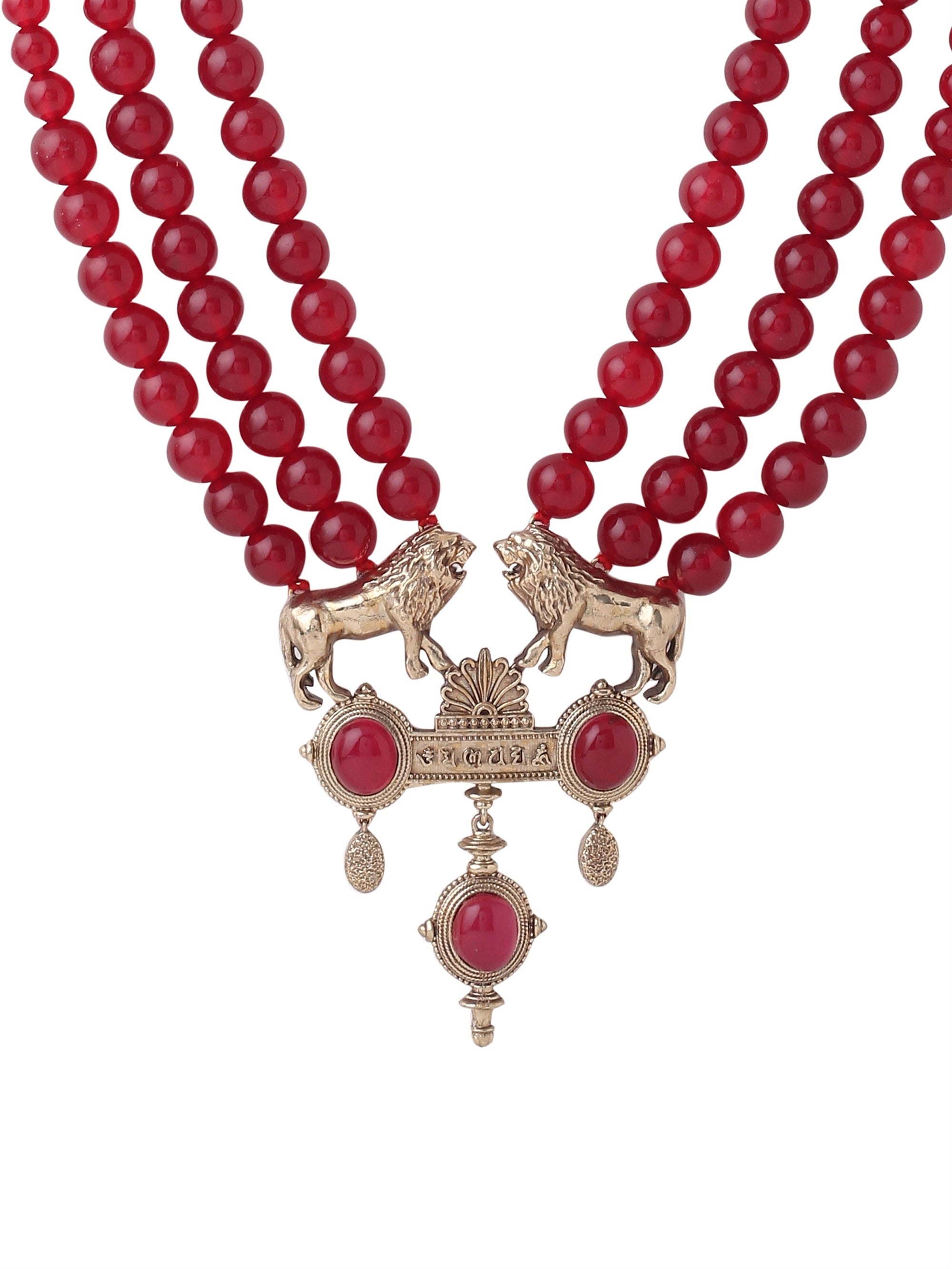 The Rouge Lion Mala, adorned with a resplendent array of deep red beads, effortlessly commands attention and resonates with a powerful aura. Its design, characterized by the simplicity of arrangement, manages to strike a harmonious balance between boldness and grace. With its striking red beads, this mala serves as a testament to strength and passion while seamlessly integrating into your personal style, making a profound statement that echoes the majesty of a lion.