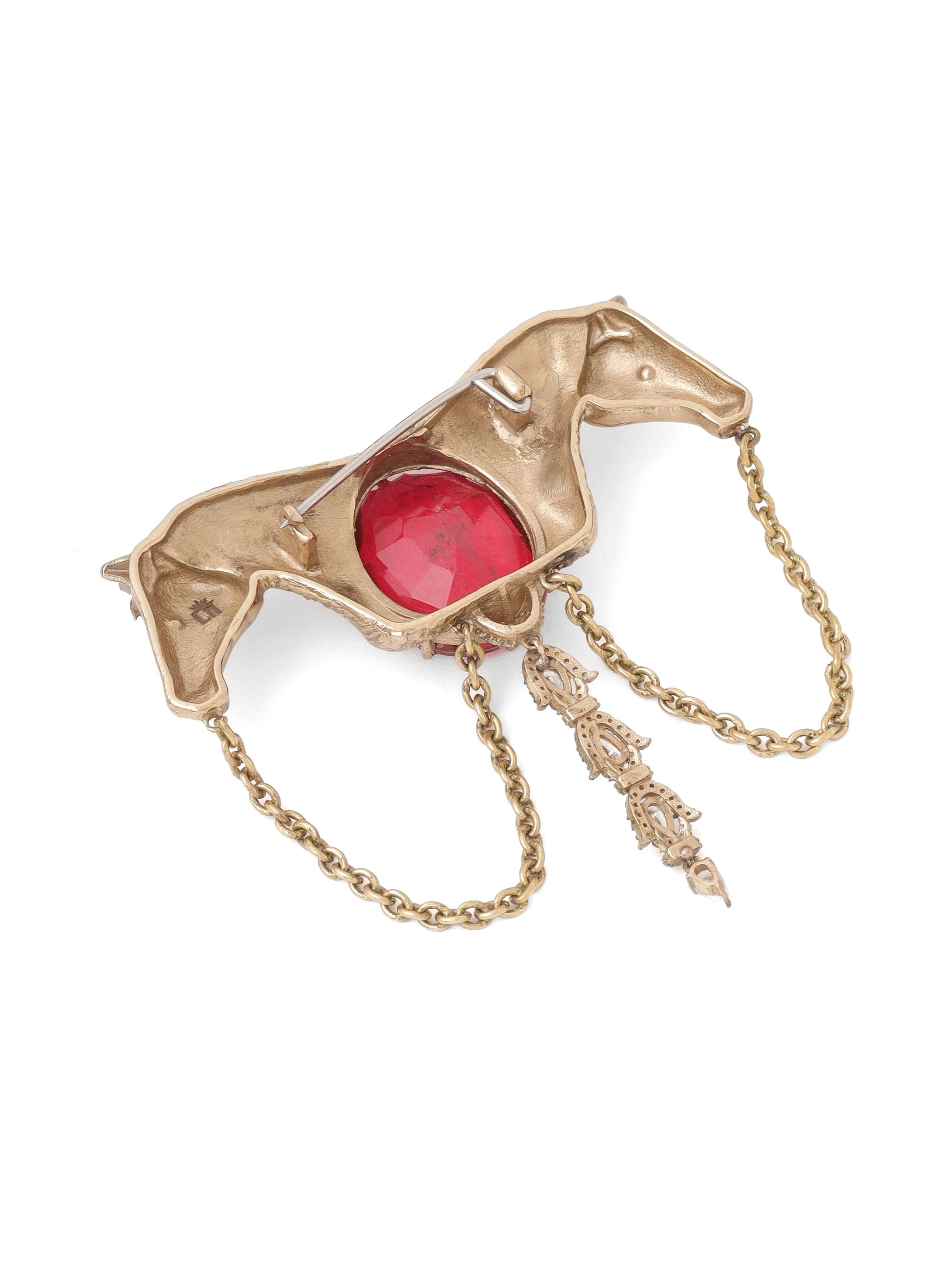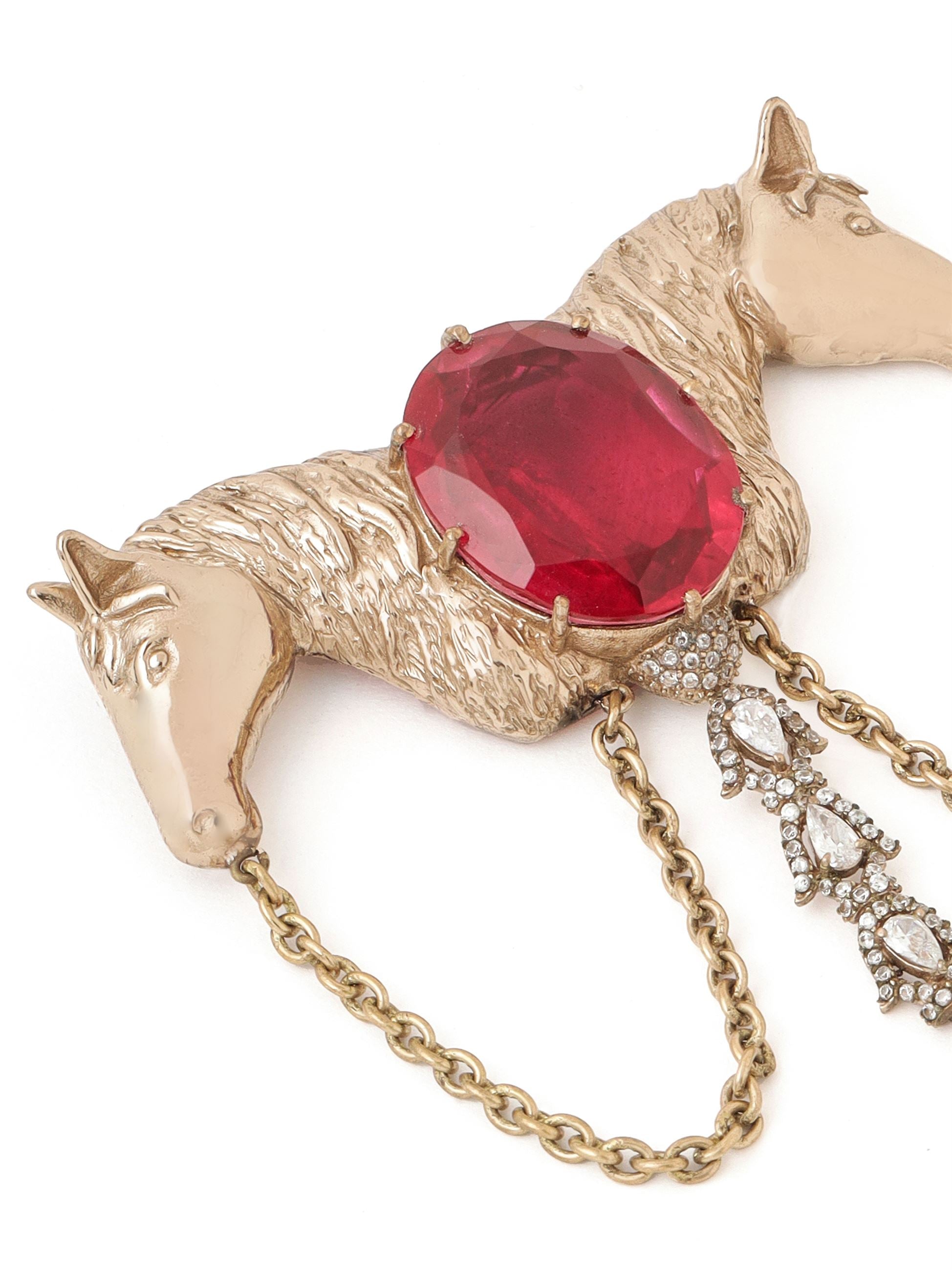 "Introducing the ""Shaahi Sawaar Brooch,"" an exquisite testament to the grace and magnificence of these noble creatures. This captivating brooch features intricately designed horses, adorned with dazzling gemstones that evoke their radiant spirit. With meticulous craftsmanship, the Brooch captures the essence of untamed elegance and free-spirited energy. A symbol of strength and unity, this accessory empowers every man to embrace the unbridled passion within and embark on life's journey with confidence and poise.