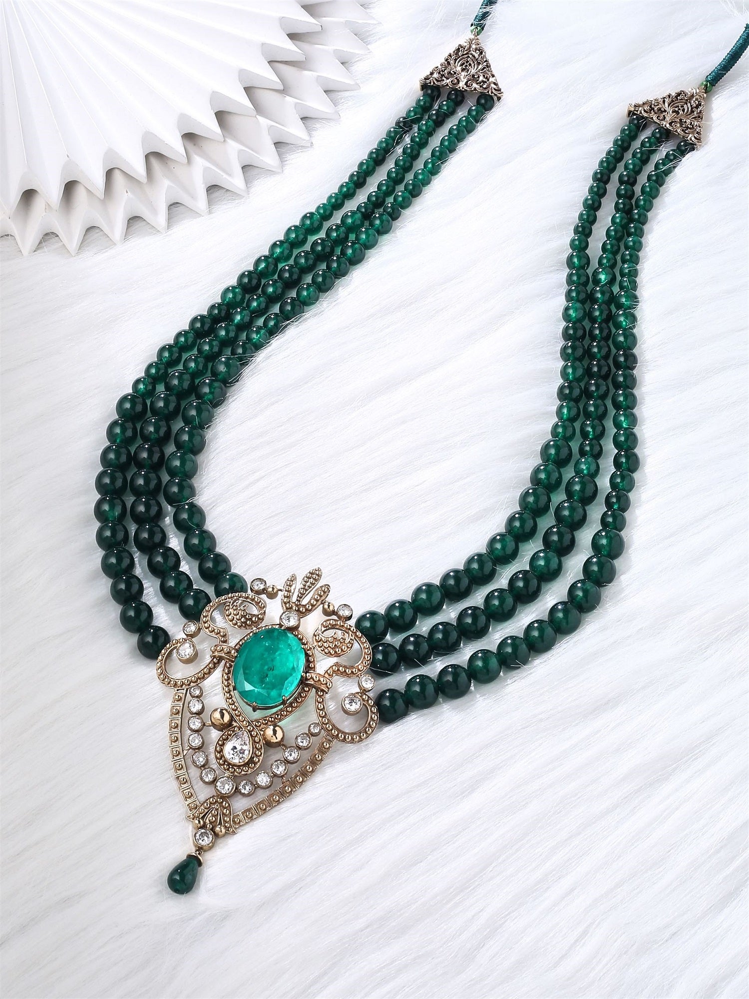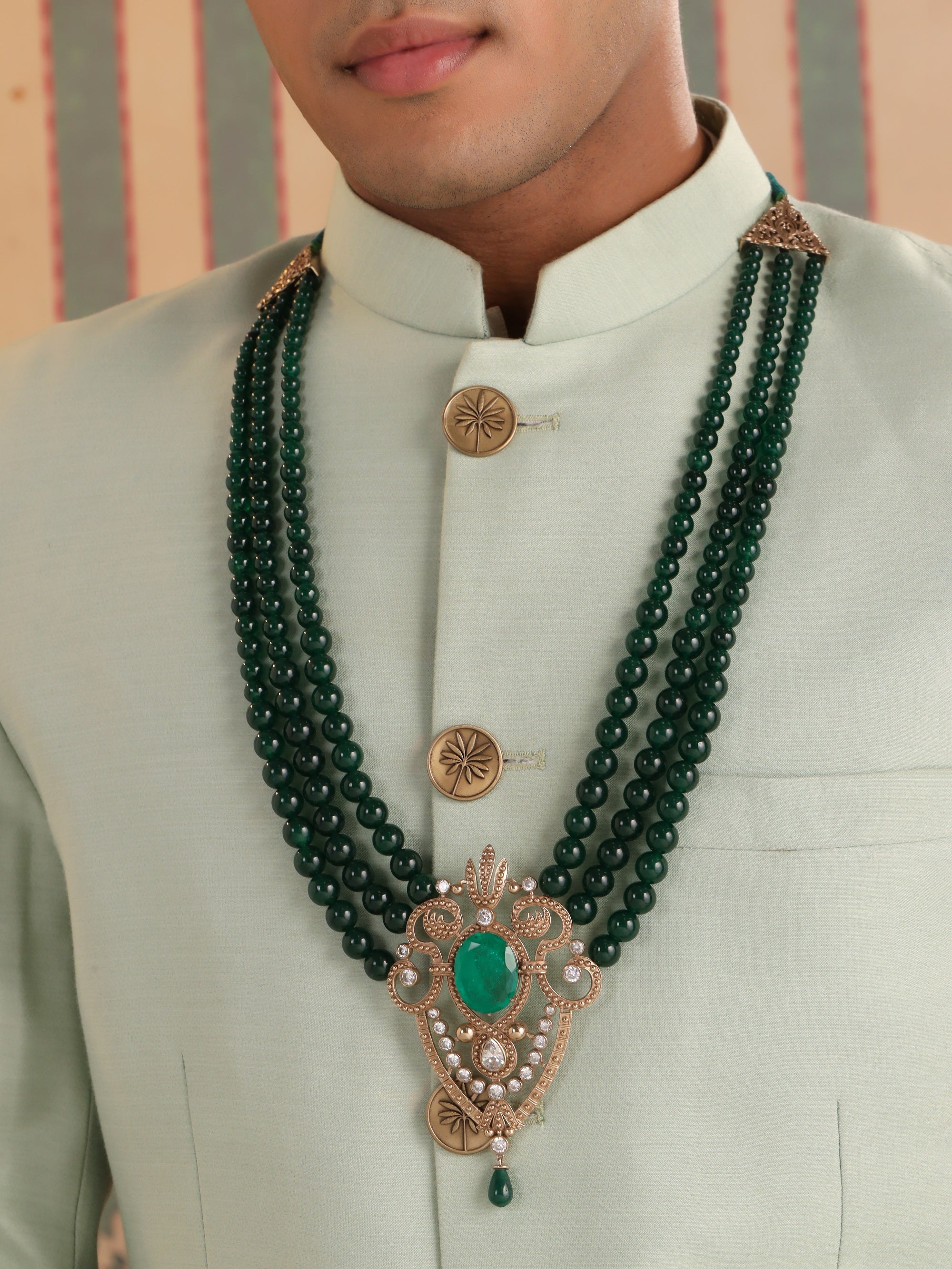 Let's embark on a journey of tranquility with the Verdant Harmony Mala. The beads, a rich spectrum of greens, interlace in a dance of hues, creating a tapestry of serene elegance. Crafted with a keen eye for detail, this mala encapsulates nature's quiet intricacies.