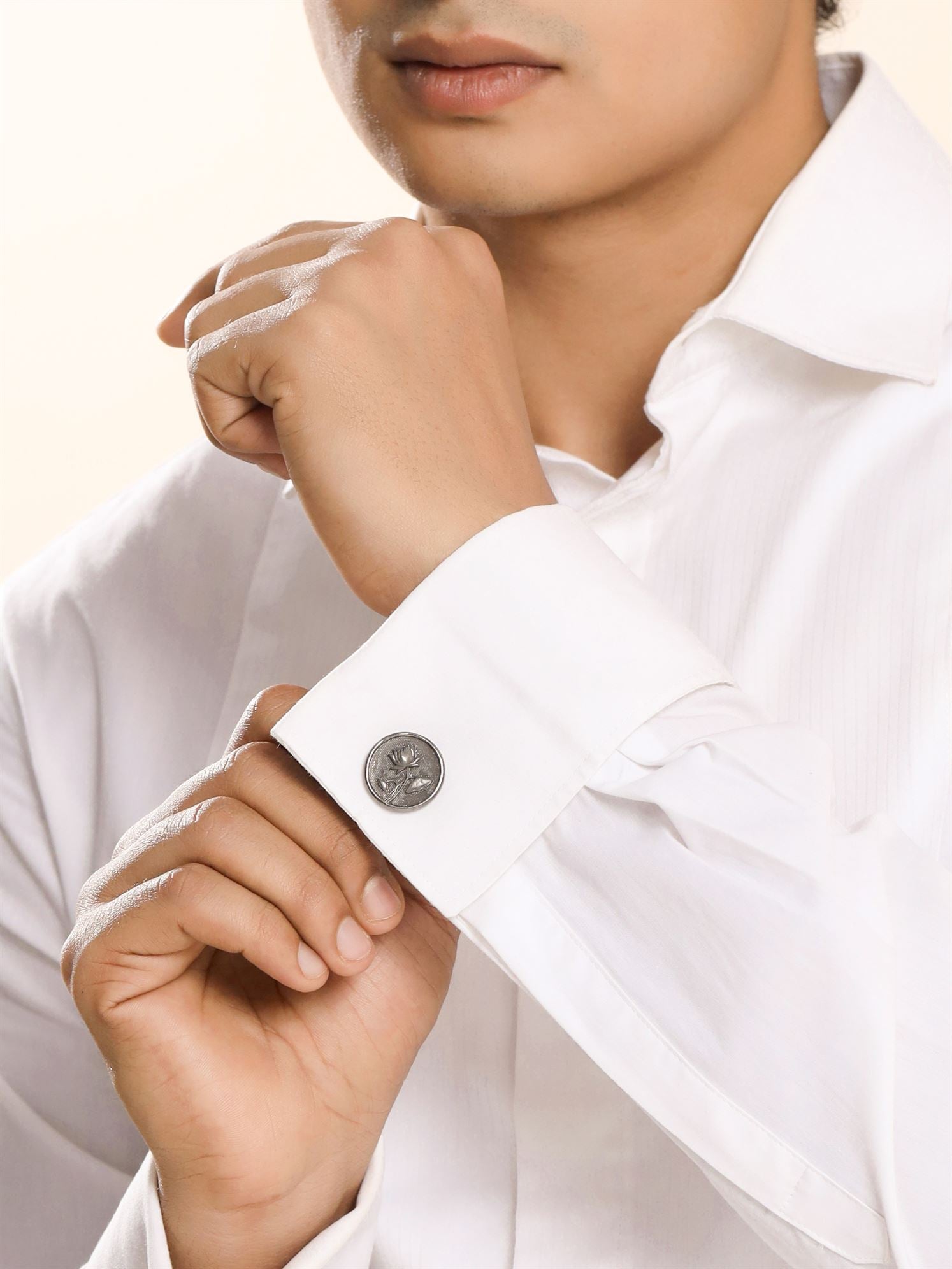 | With your elegant formal clothing, these Lotus-inspired Cufflinks will stand out. These exquisite Cufflinks, which enable you to leave your imprint wherever you go, were carved by our artists with the utmost care. The lovely lotus, a common cultural emblem, might signify rebirth, purity, or enlightenment. |