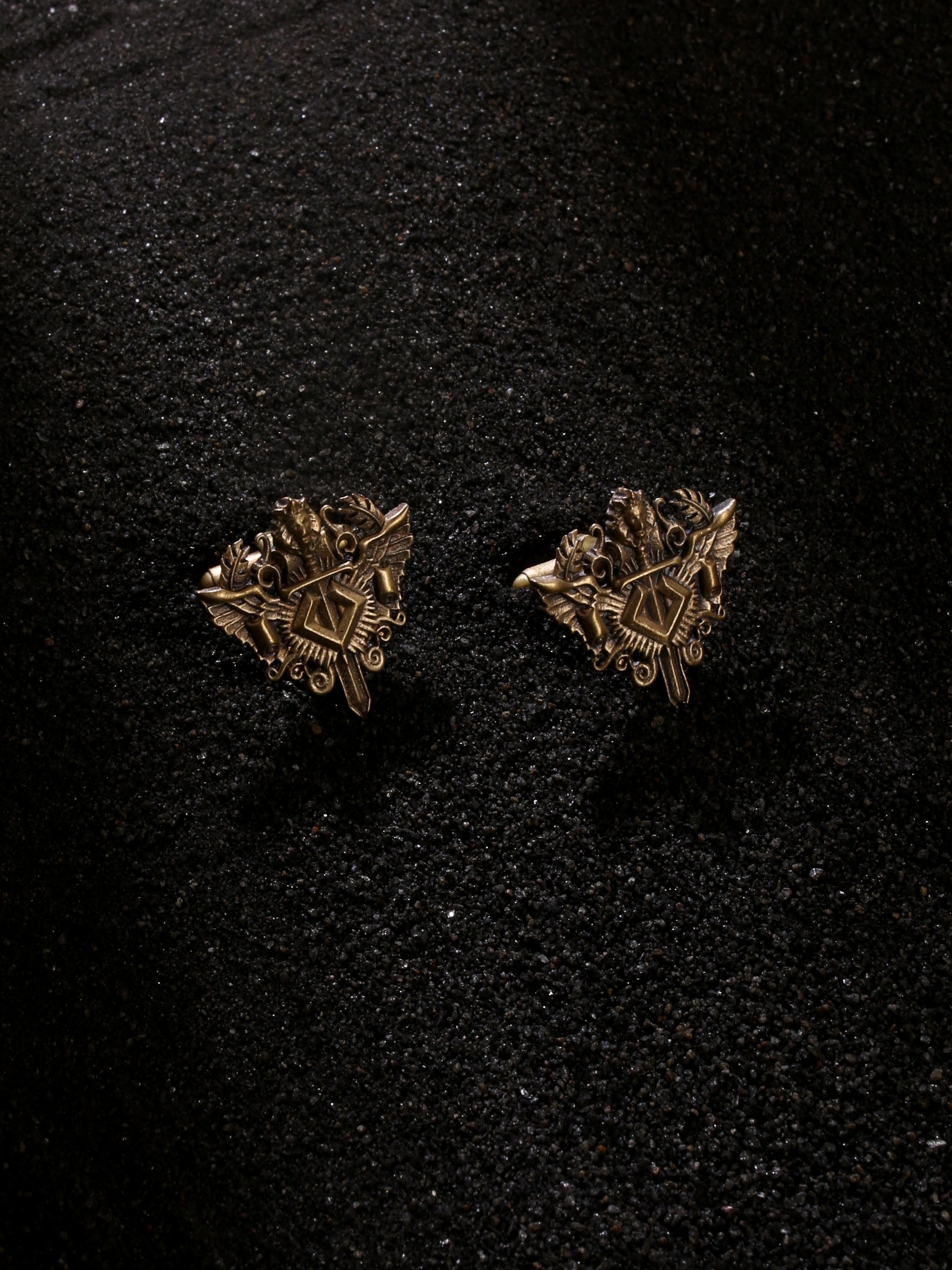 | Featuring exquisitely crafted shields cufflink made of brass metal in antique gold. Wear this precious adornment with a formal boardroom meeting or a wedding. |