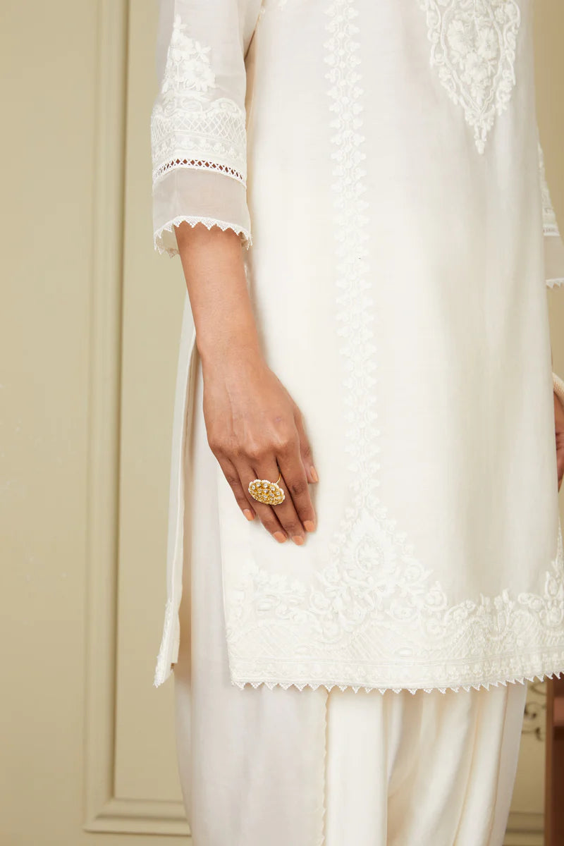 Ayanna daisy ivory short kurta with dhoti