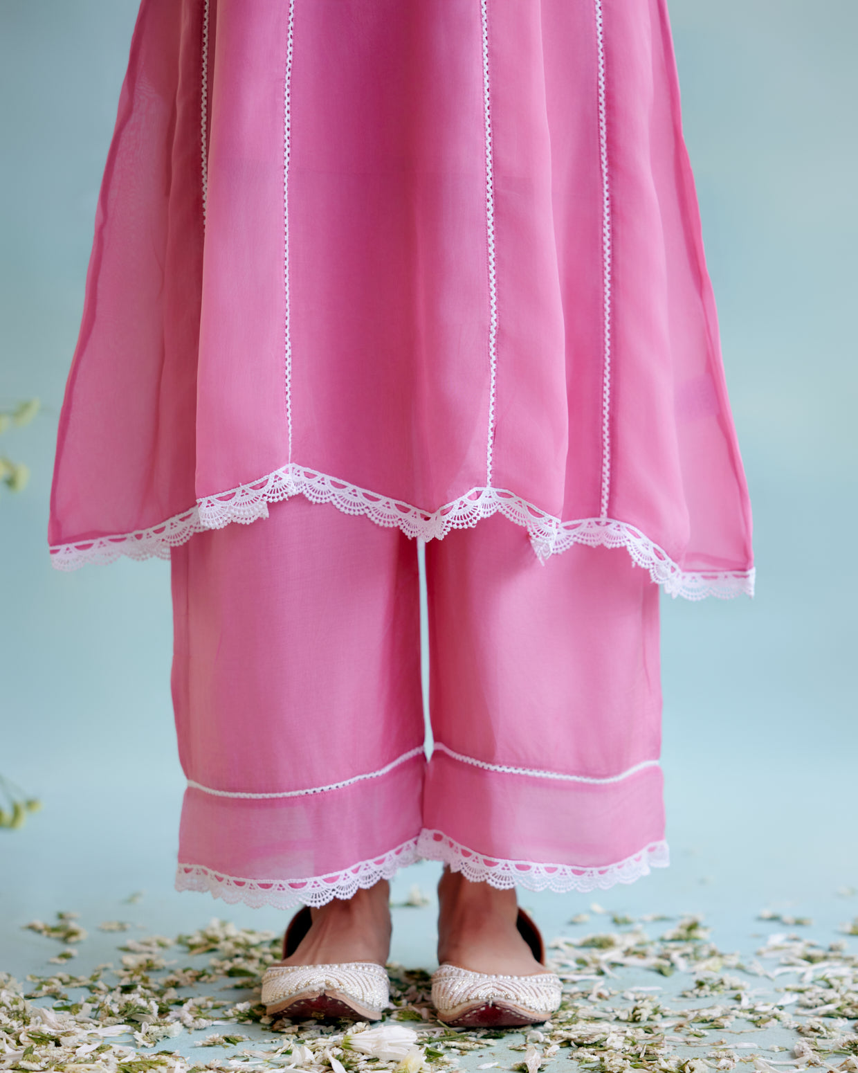 -Anarkali Kurta in Blush Pink Organza Fabric with multiple panels.