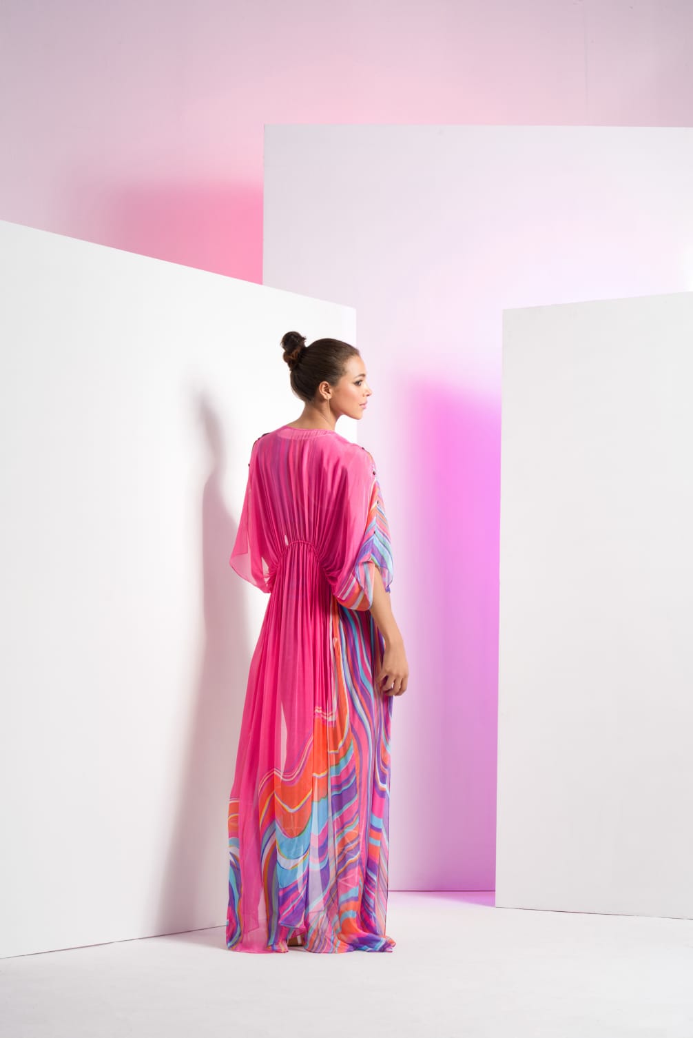 The Pink Marma bodysuit is an embodiment of contemporary fashion at its finest, with its innovative design and alluring details. The soft pink color exudes charm and elegance, while the stylized cuts add a modern, edgy flair. The inclusion of a long chiffon cape drapes gracefully, creating a captivating sense of movement and sophistication. This bodysuit is the perfect choice for those who wish to make a unique and fashionable statement at any special event, where it masterfully combines classic grace with a contemporary twist, ensuring you stand out with style and confidence.