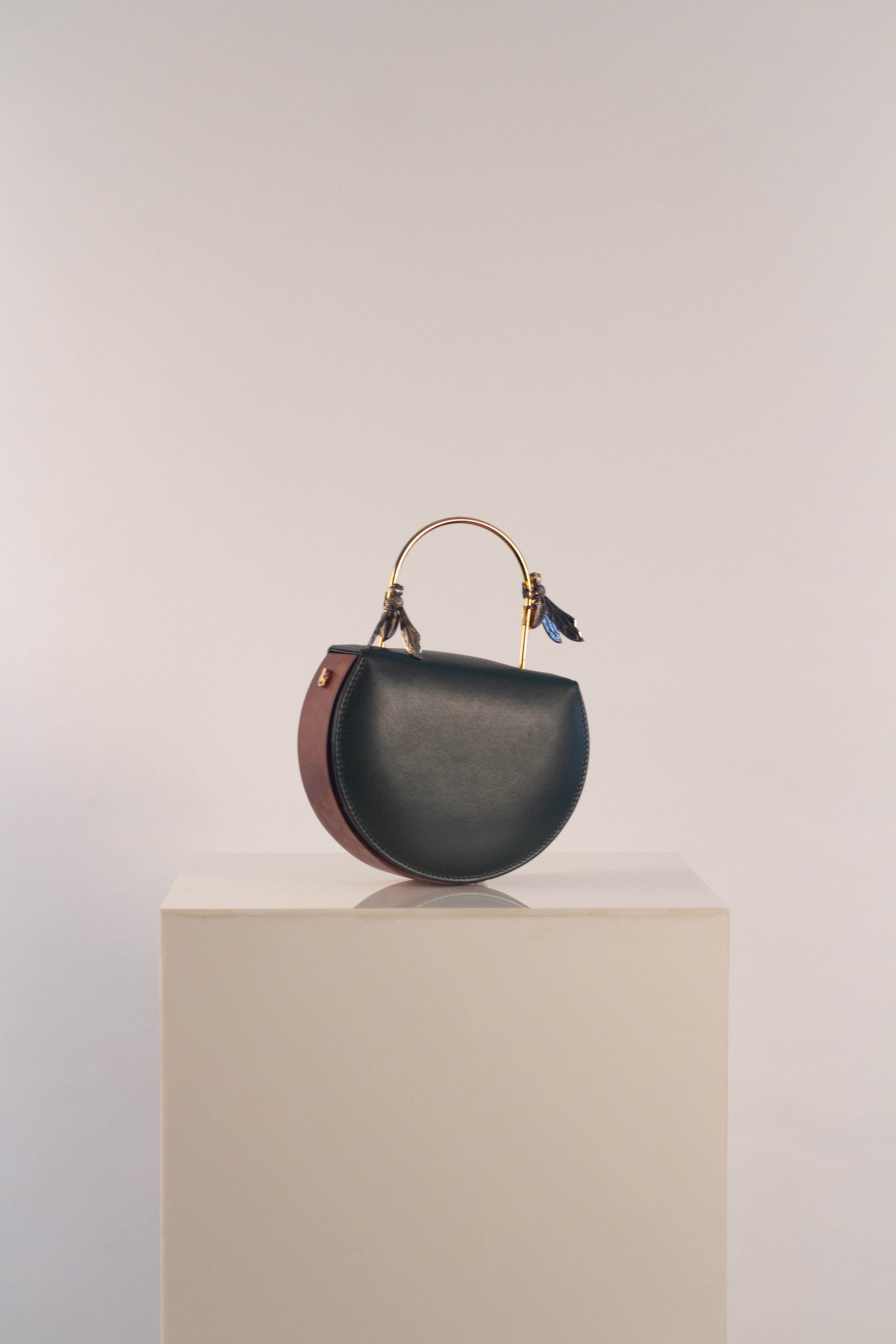 Emeralds to liven an evening dress or a crisp white shirt — the Drone bag uses top quality leather that is structured to a stand-out shape.