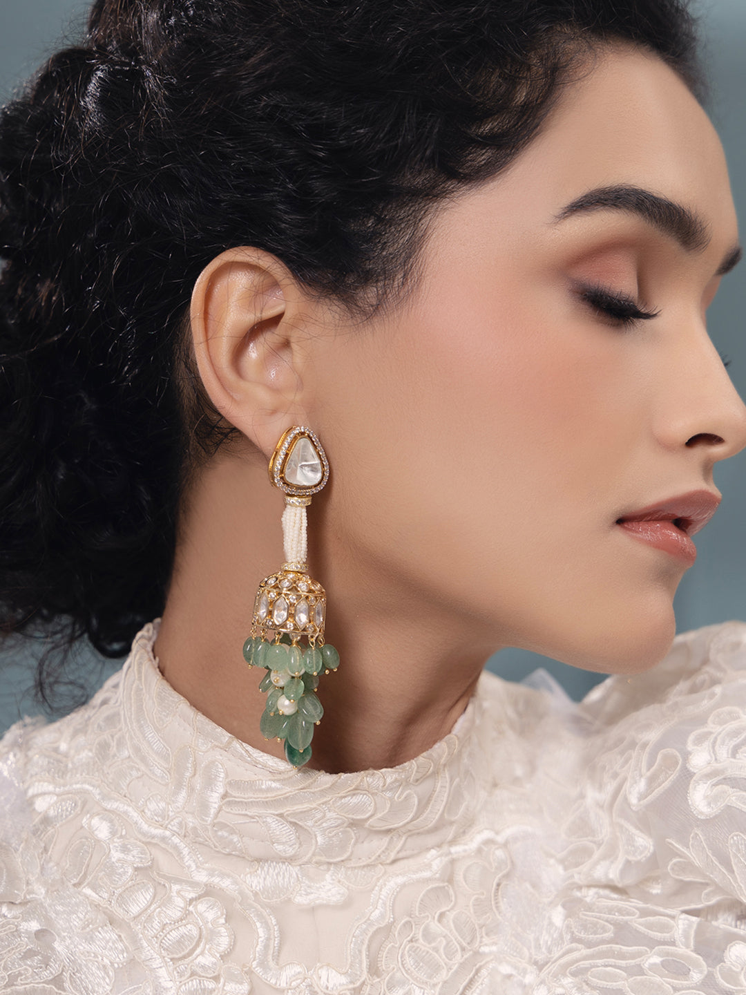 Polki-pearl dazzling green earrings