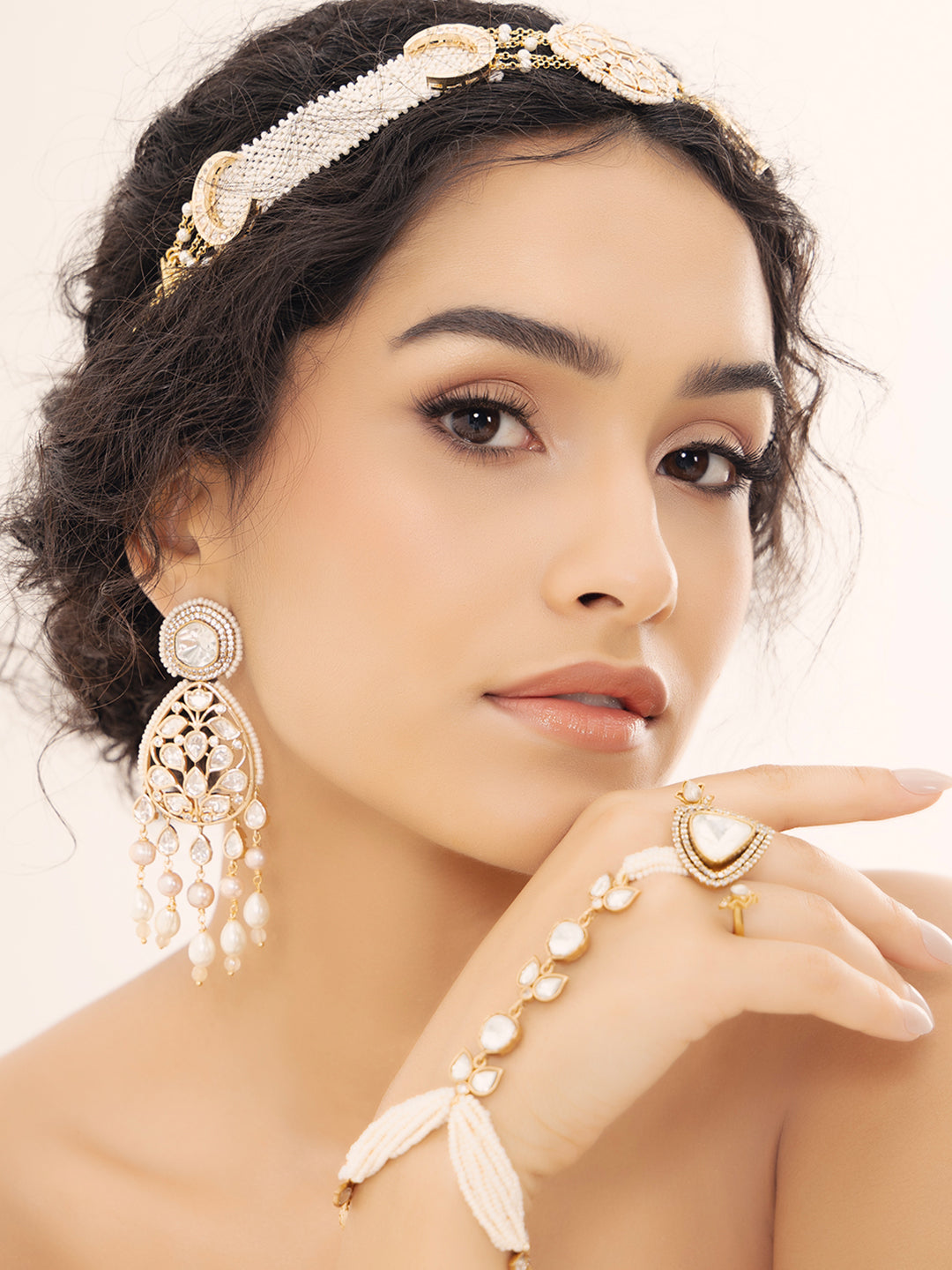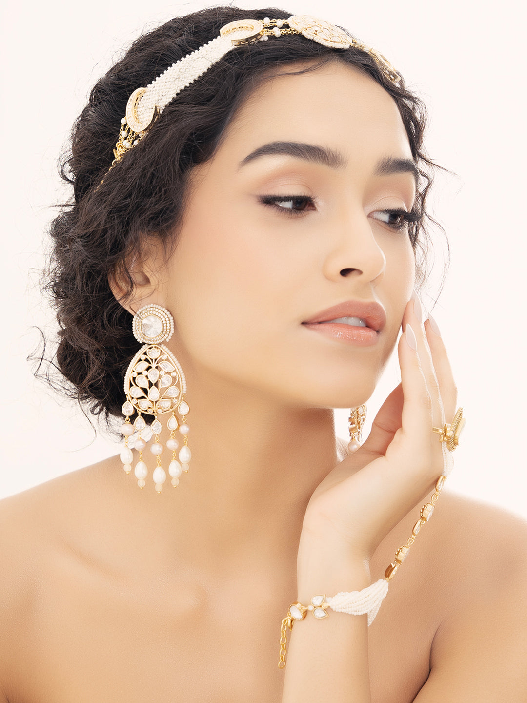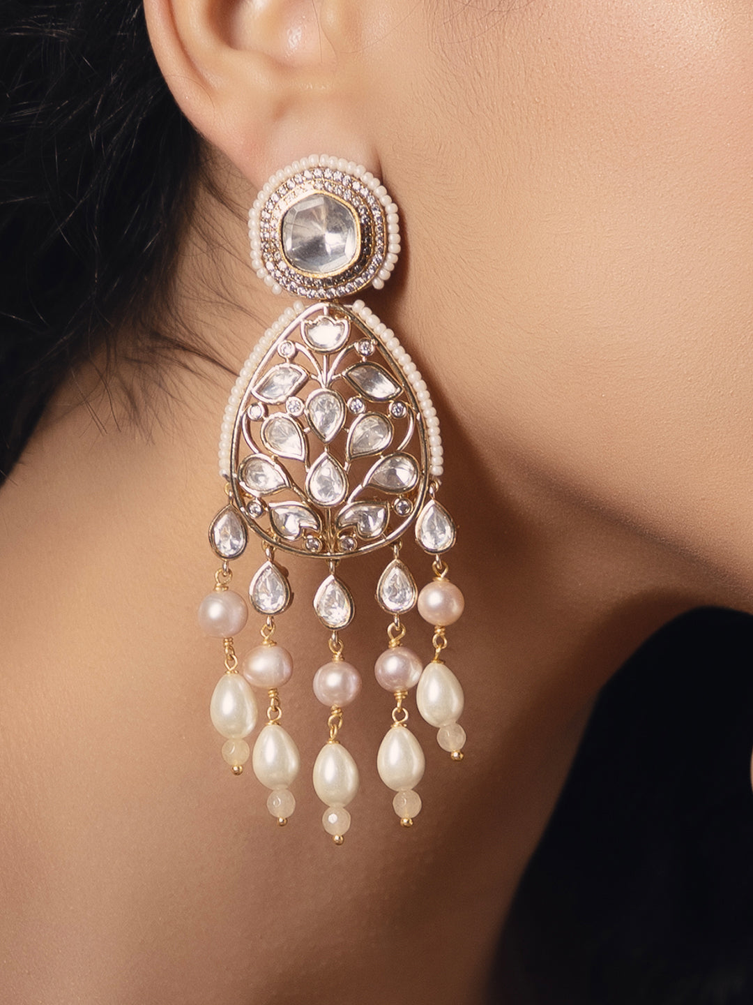 Radiant Gold Earrings Adorned With Polki Pearls And A Yellow Gold Finish.