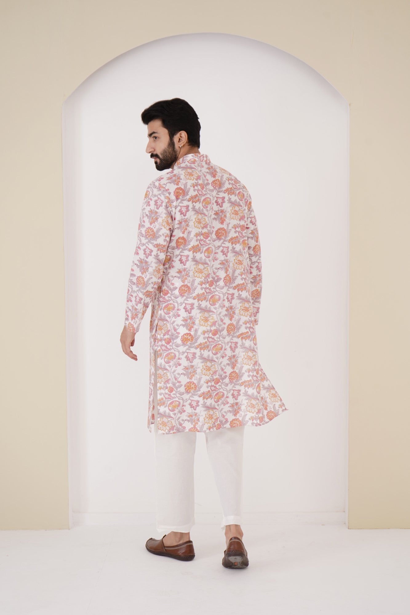 -Men's kurta in Hand Block Printed Cotton fabric with full length sleeves.