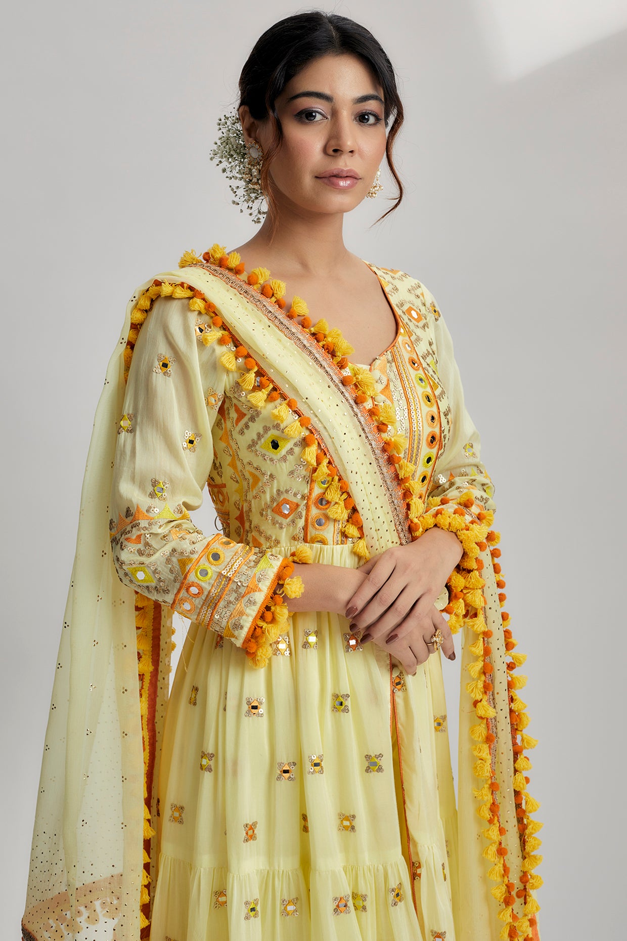 This fabric is perfect for creating stunning dresses, skirts, blouses, or any other garment that requires a touch of glamour and sophistication. It can also be used for home decor projects, such as pillow covers or curtains, to add a vibrant and luxurious accent to your living space.Embrace the beauty and charm of the Rianna Tiered AG fabric, and let its intricate details and colorful embellishments transform your creations into works of art.