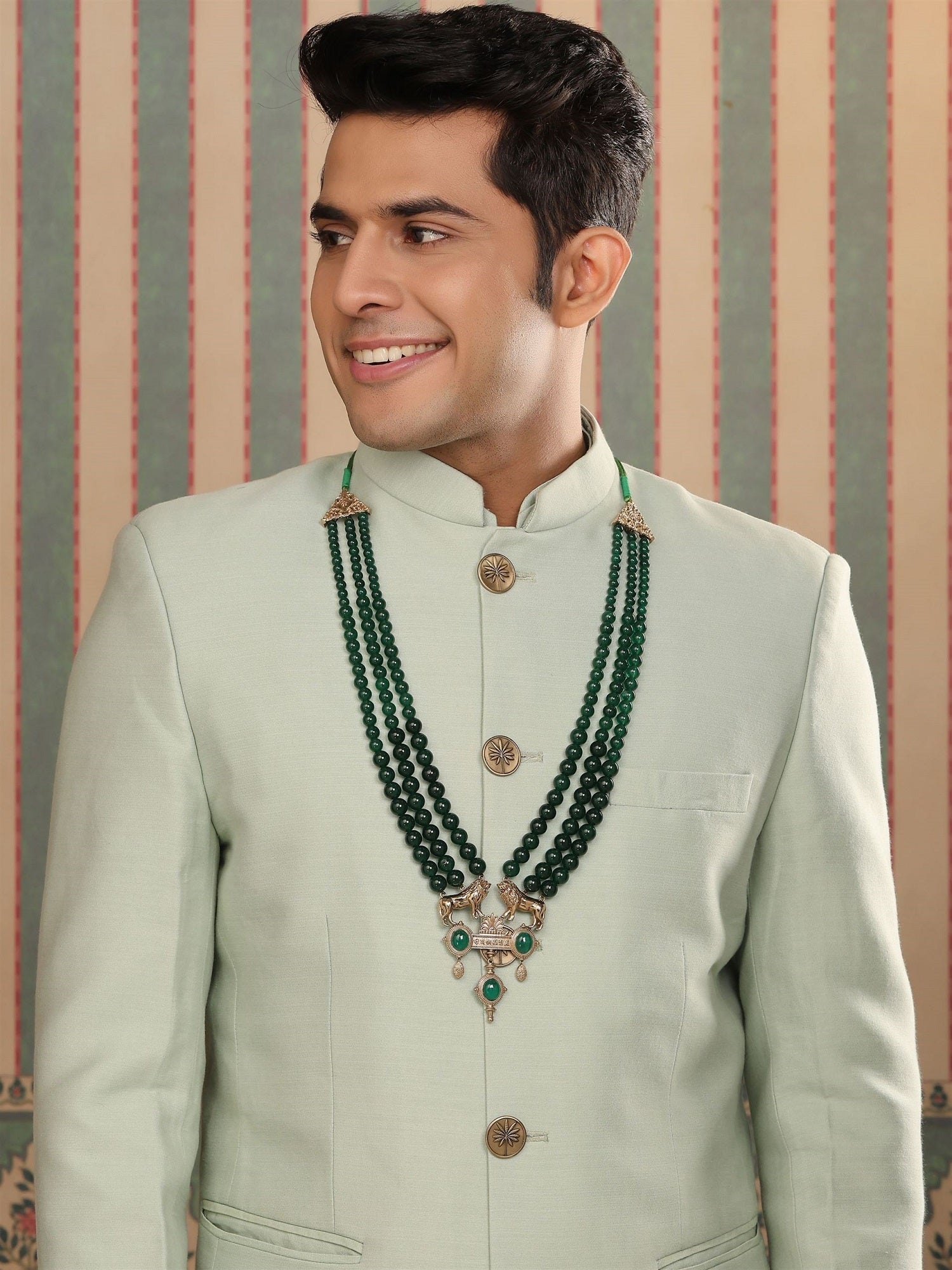 Green Grace Mala is where each ] bead is a serene portal to a world of calm elegance. It is a visual sonnet, where every green hue resonates with a sense of tranquil sophistication. Adorn yourself with the Green Grace Mala and immerse into a haven where refinement intertwines with the soothing embrace of verdant beauty.
