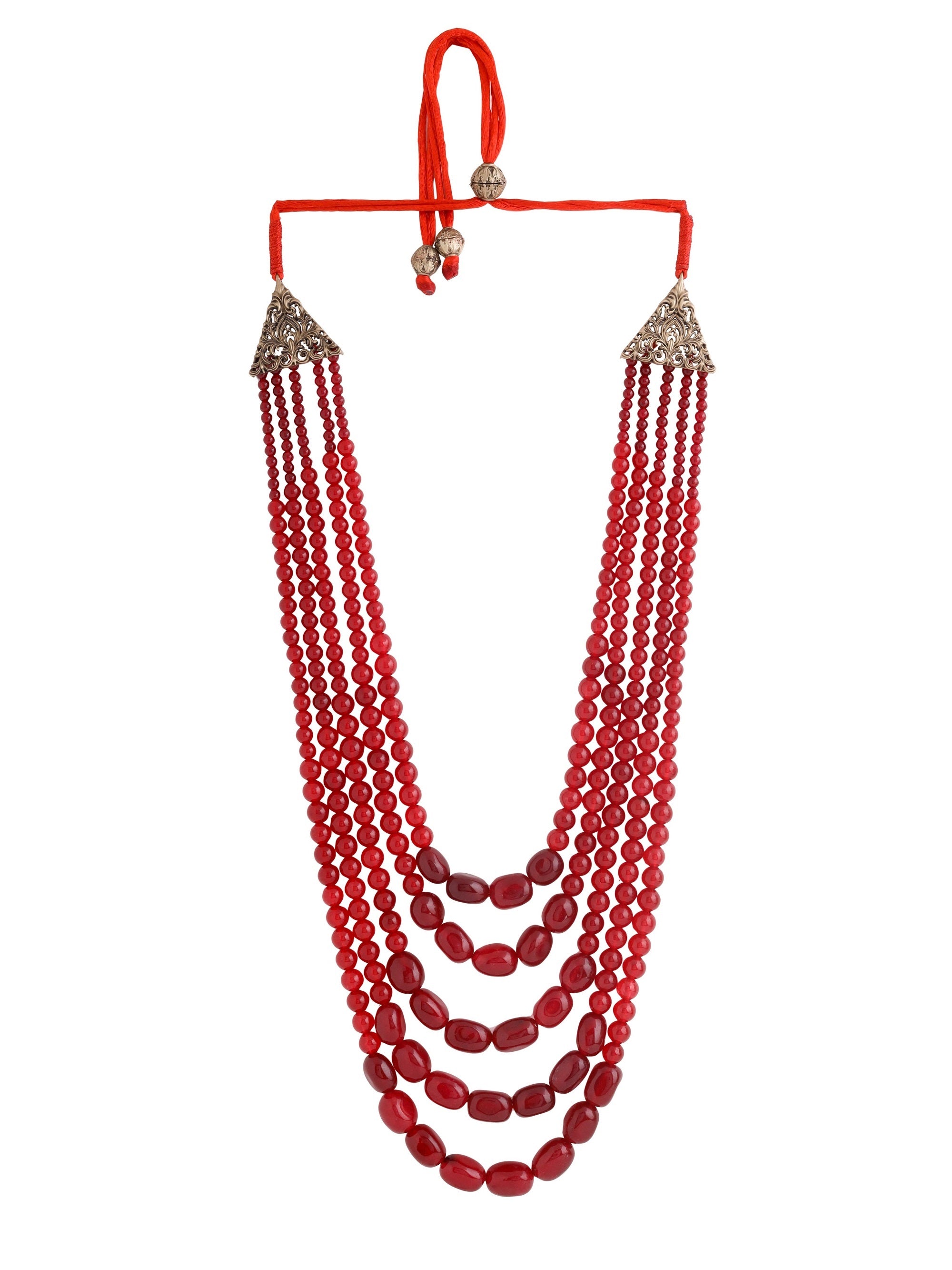 The beads are strung together on a strong, durable thread with a knot between each bead. The mala is finished with a red tassel for an added touch of color.