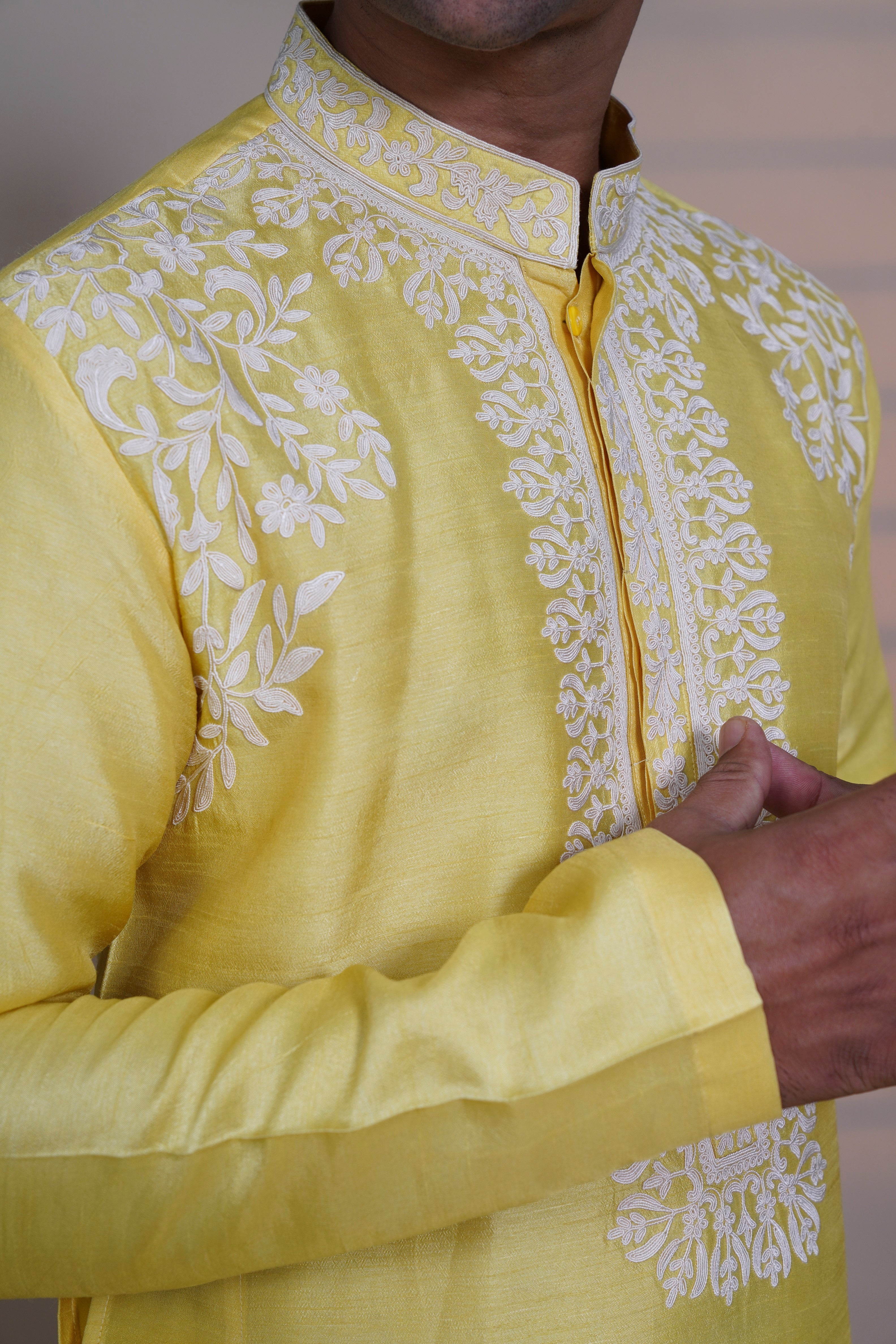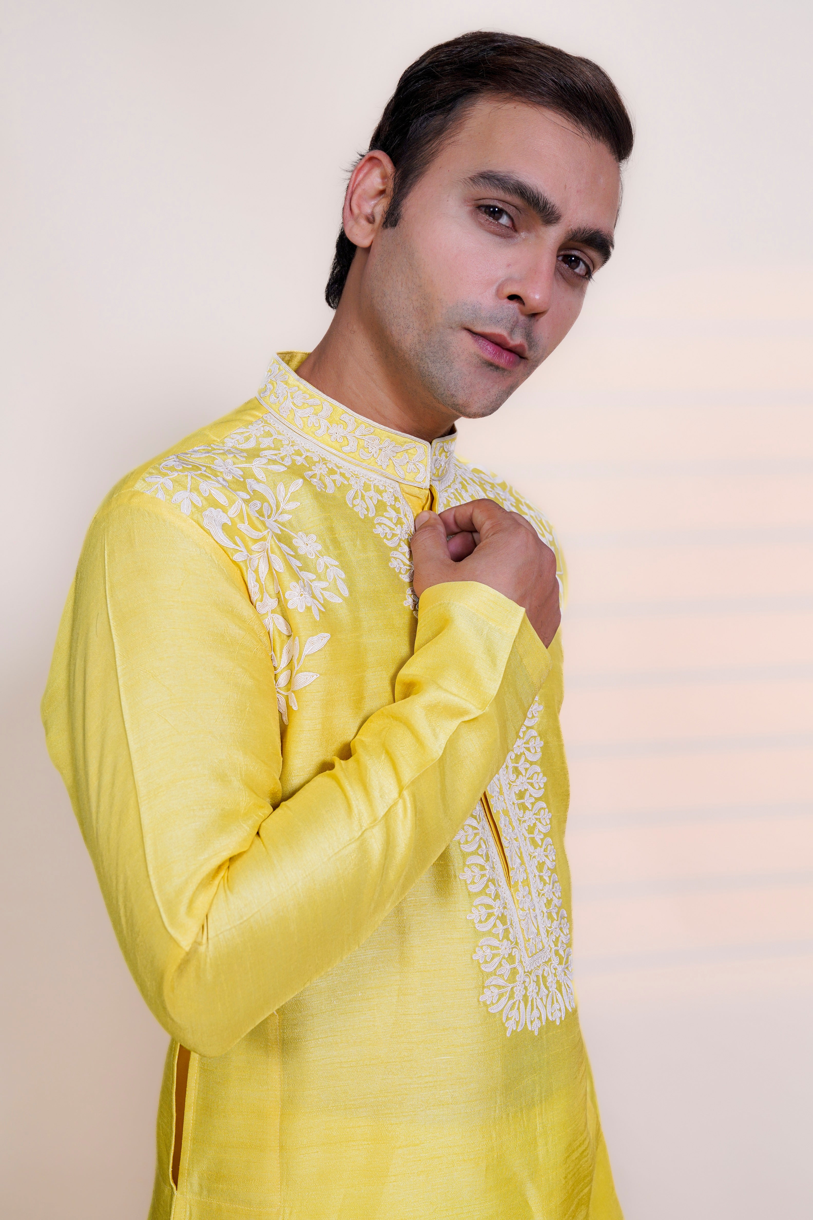 | Featuring the Yellow Color Embroided Dori Work Kurta Set |