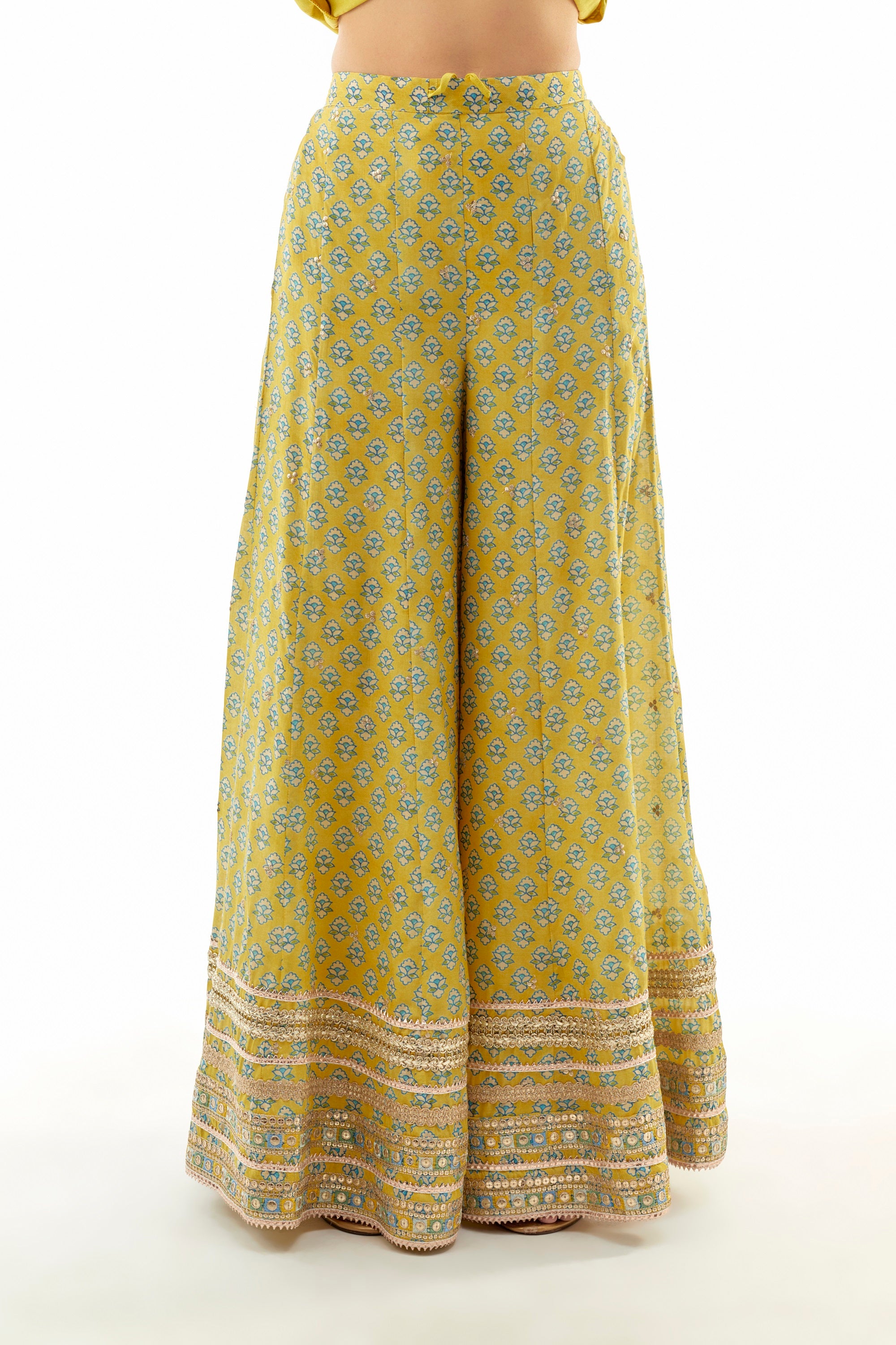 The Ensemble Features A Beautifully Crafted Sleeveless Kurti Adorned With Intricate Embroidery Lending A Regal Touch To The Outfit. The Matching Sahara Pants Are Gracefully Flared And Detailed With Complementary Embroidery At The Hem, Creating A Balanced And Eye-Catching Silhouette. Paired With A Delicate Dupatta Embellished With Motifs And A Detailed Border.