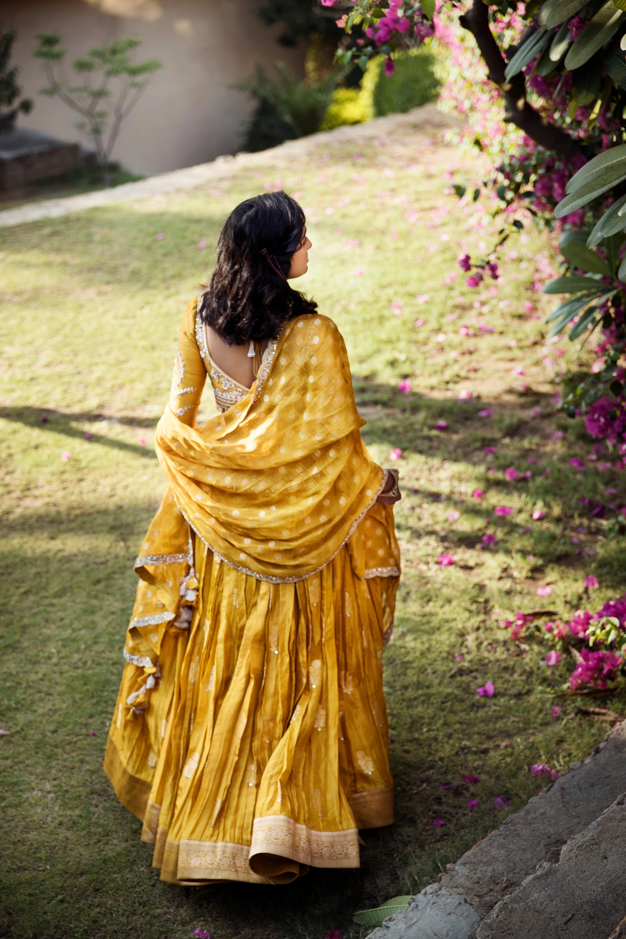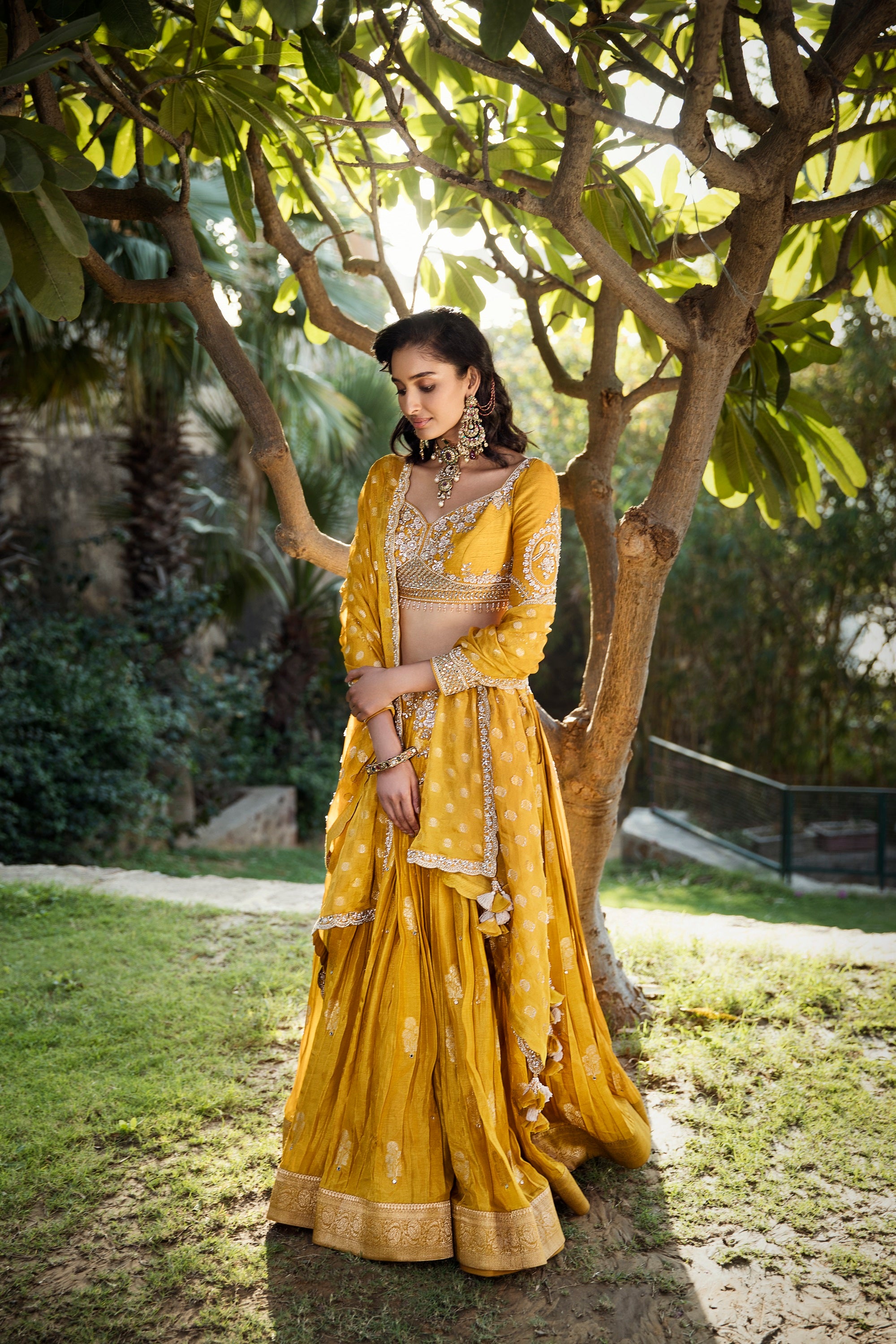 Mohsina - glaze mustard short kalidaar choga with salwar