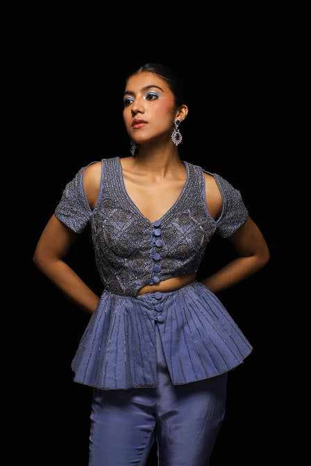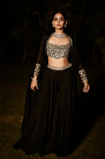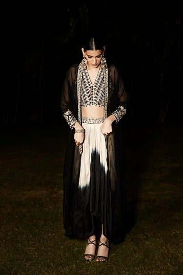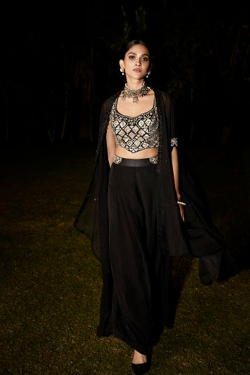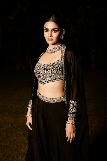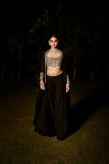 Elegant crepe indo-western set with intricate embroidery
