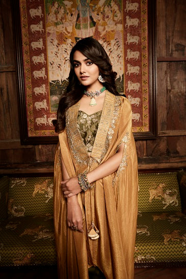 The tissue gota olive & haldi cape set