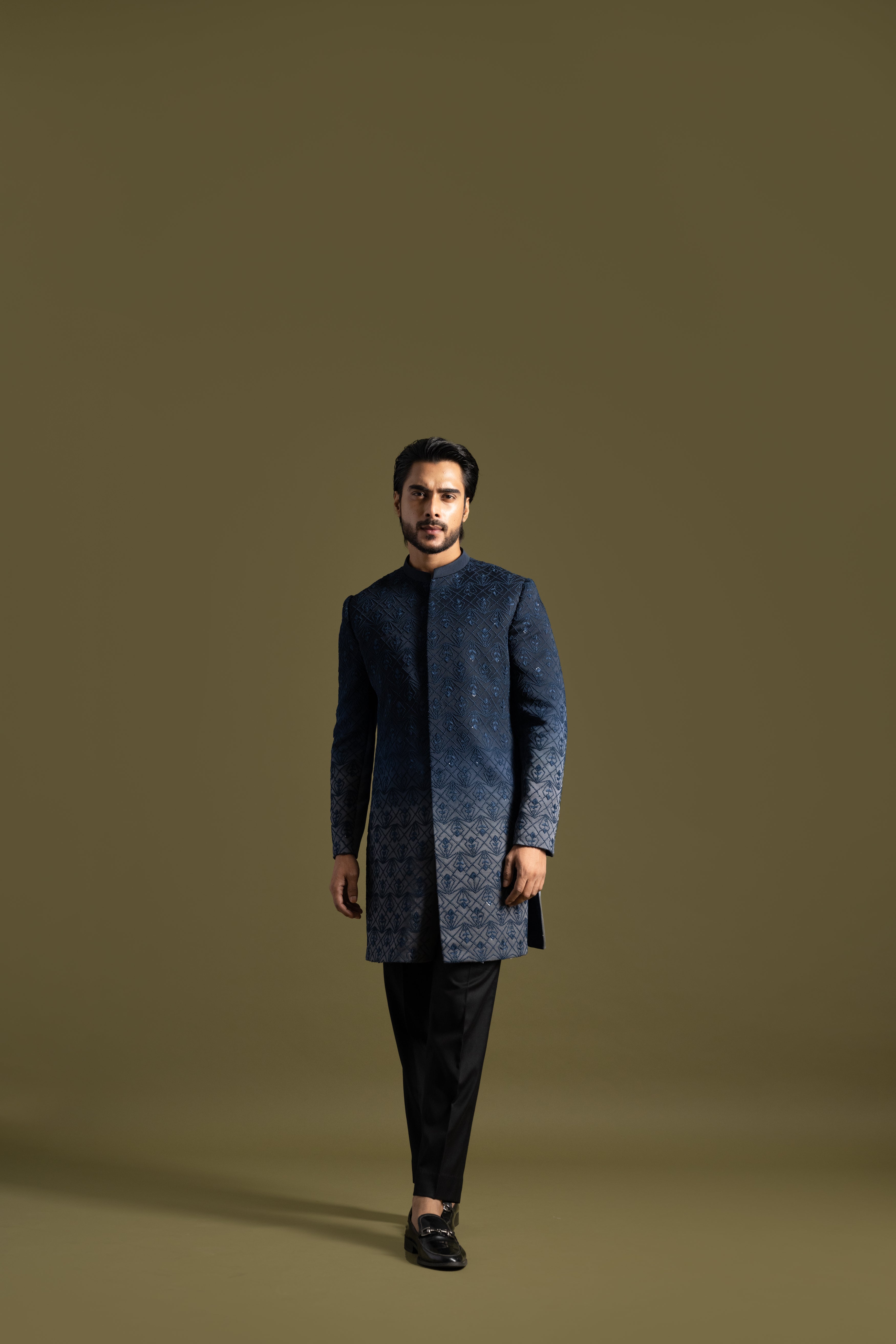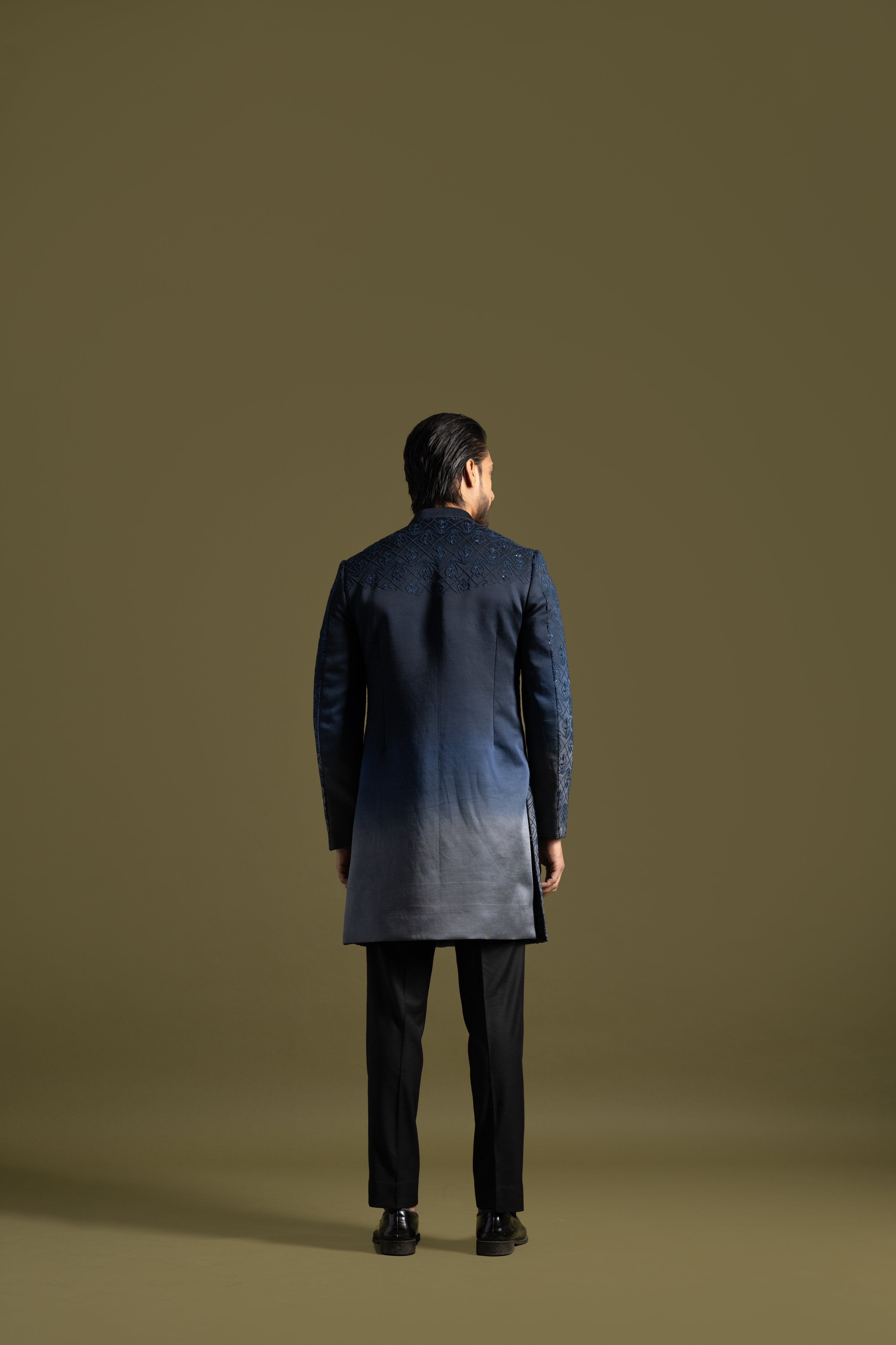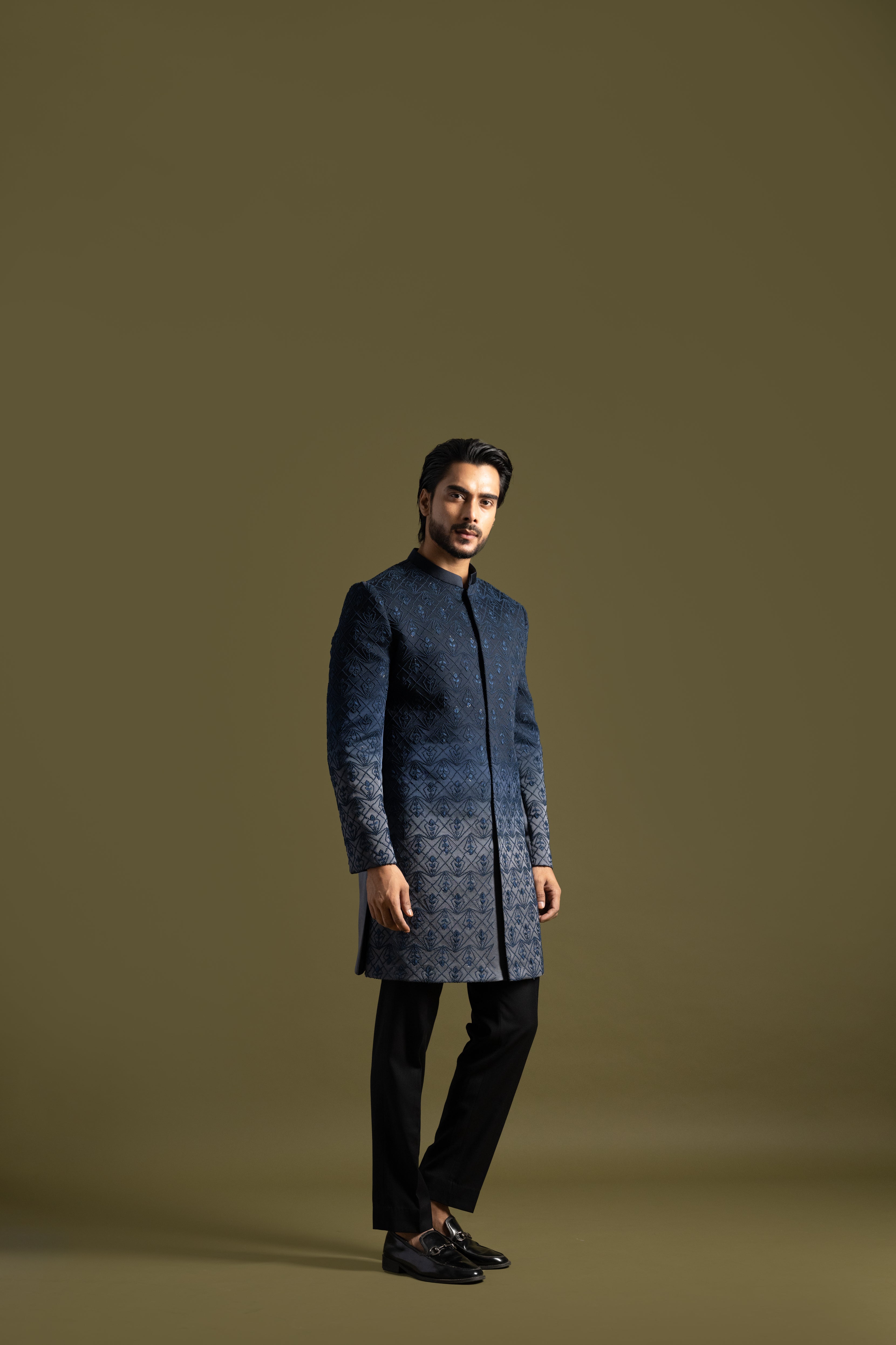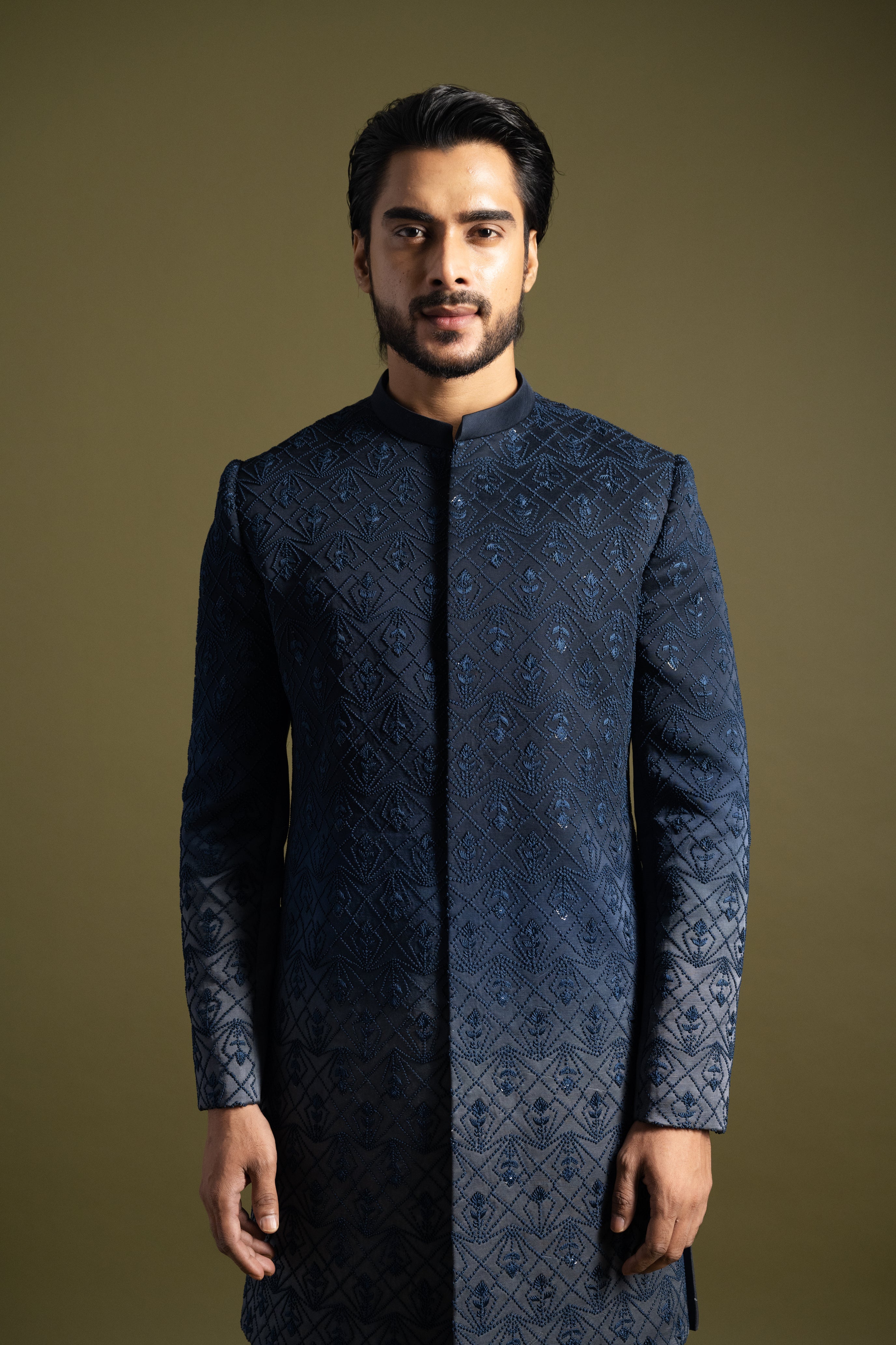 Navy blue to grey shade achkan set