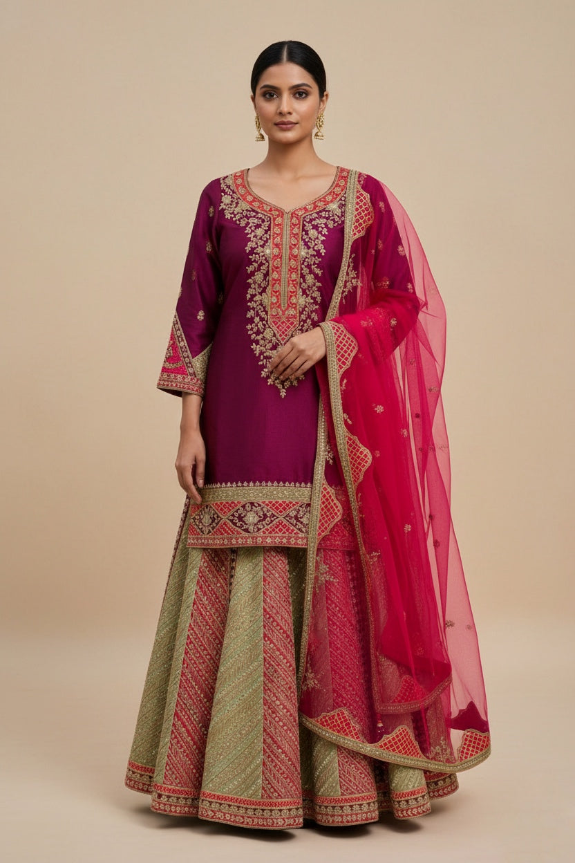Wine maroon kurti sharara set
