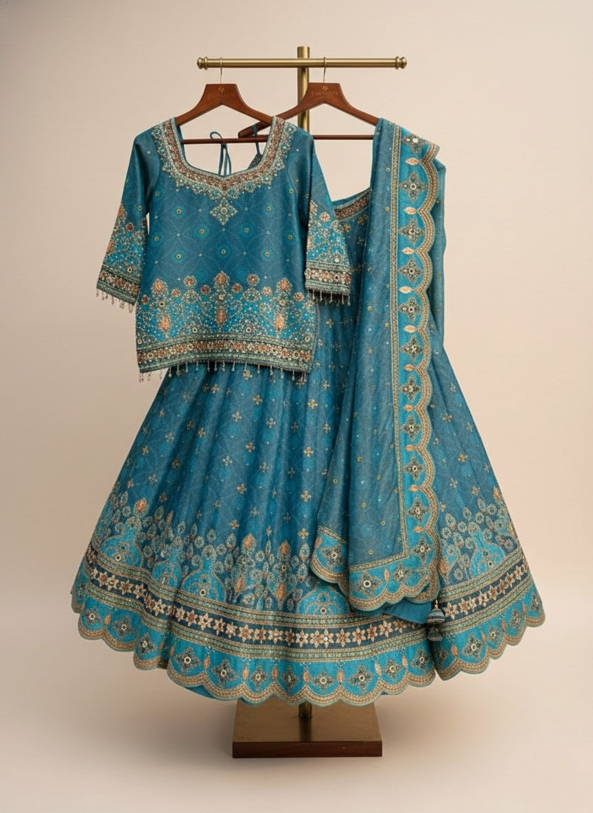 Teal blue shimmer embroidered lehenga set