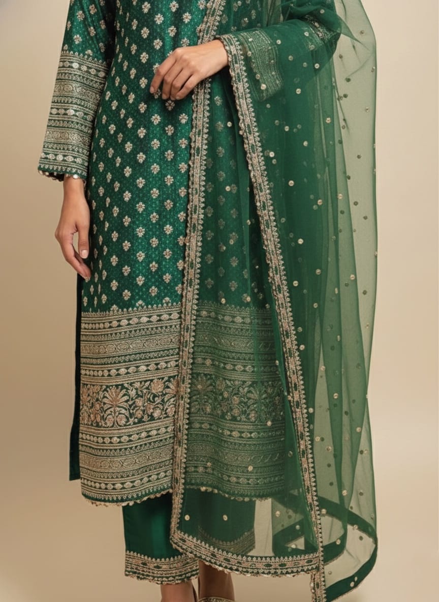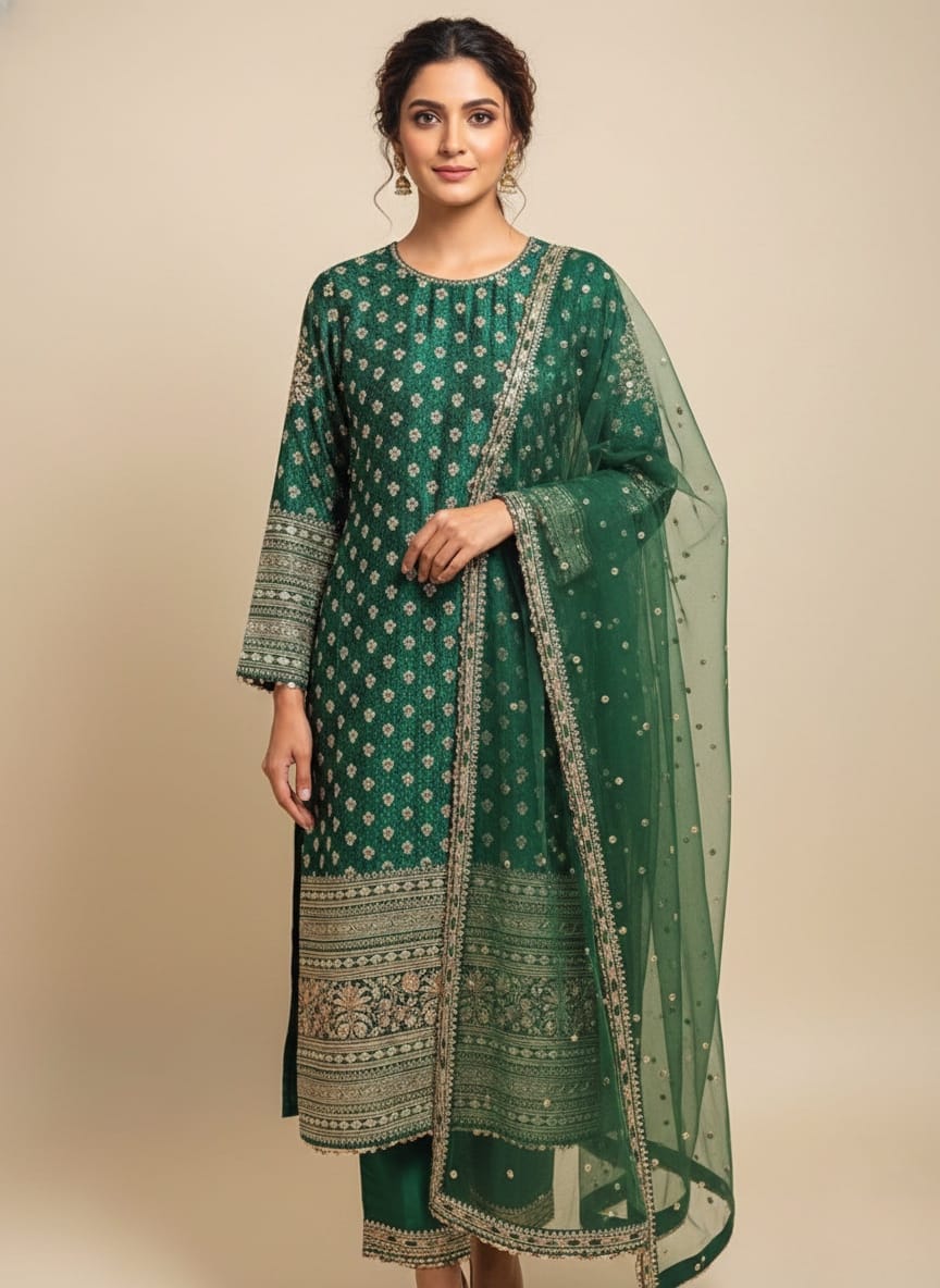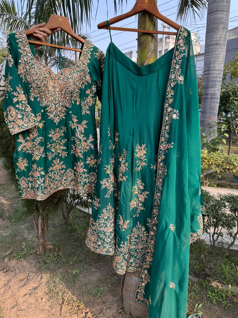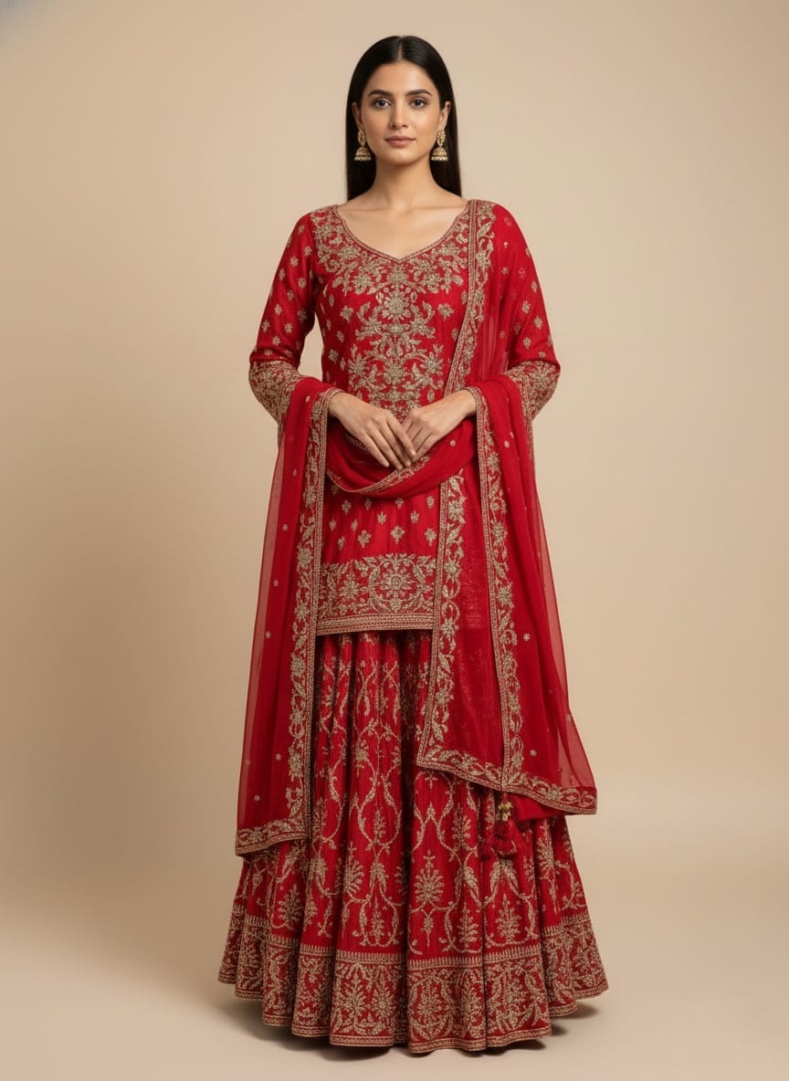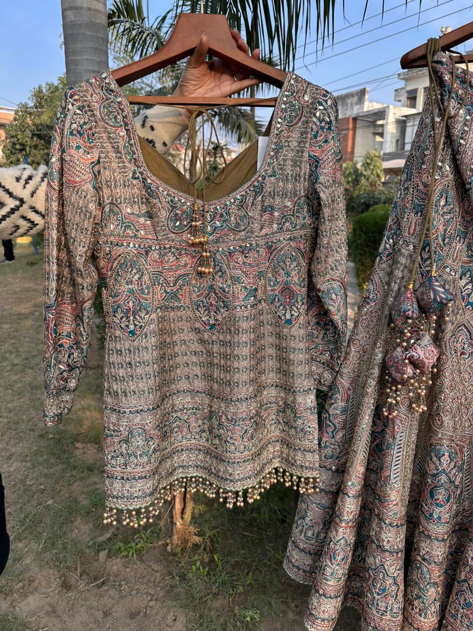 Pure raw silk ivory embroidered kurta palazzo set with dupatta