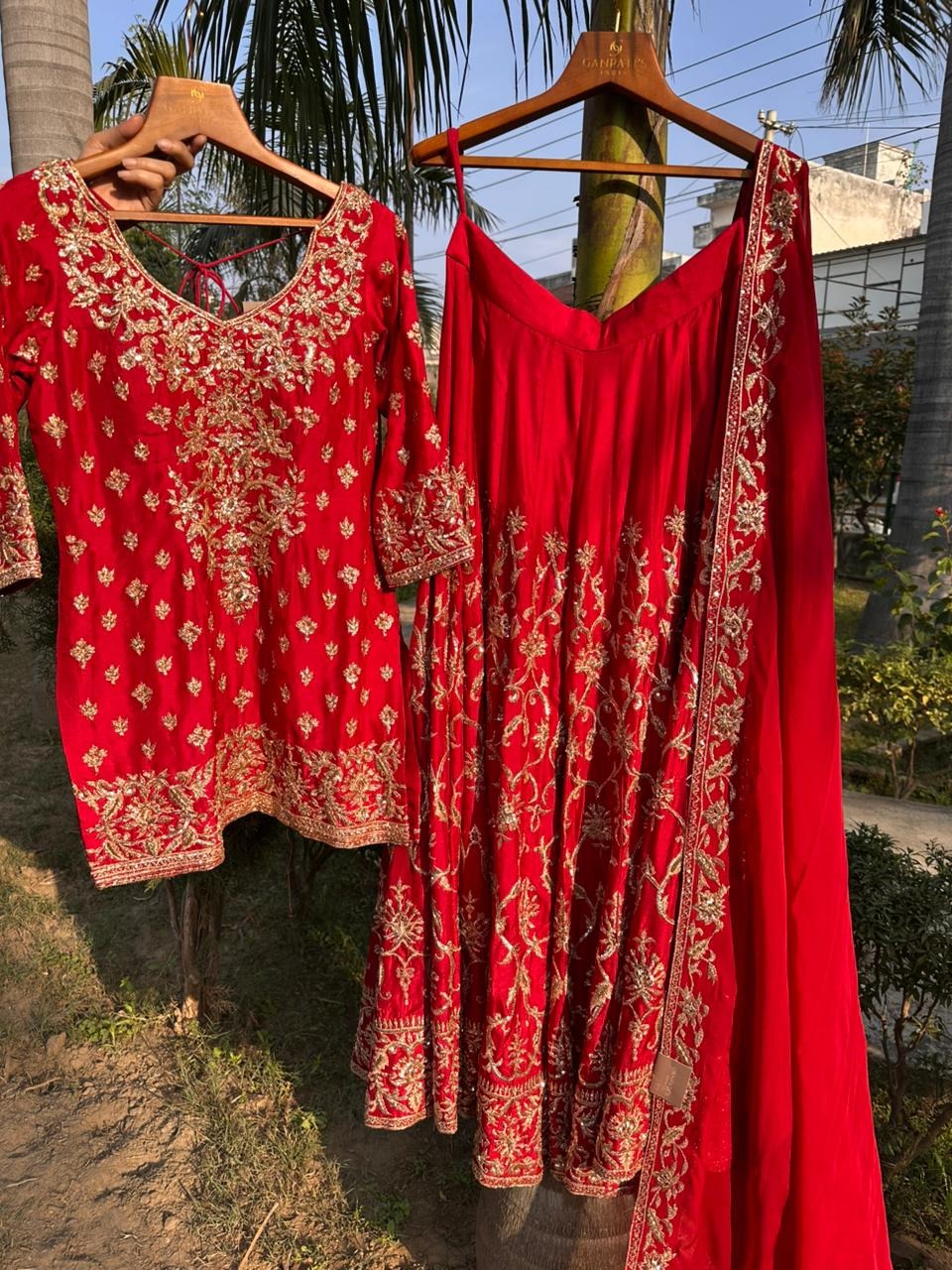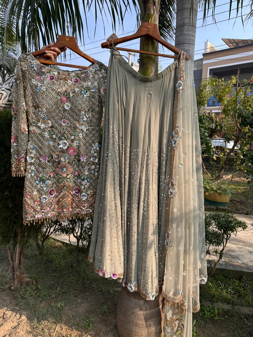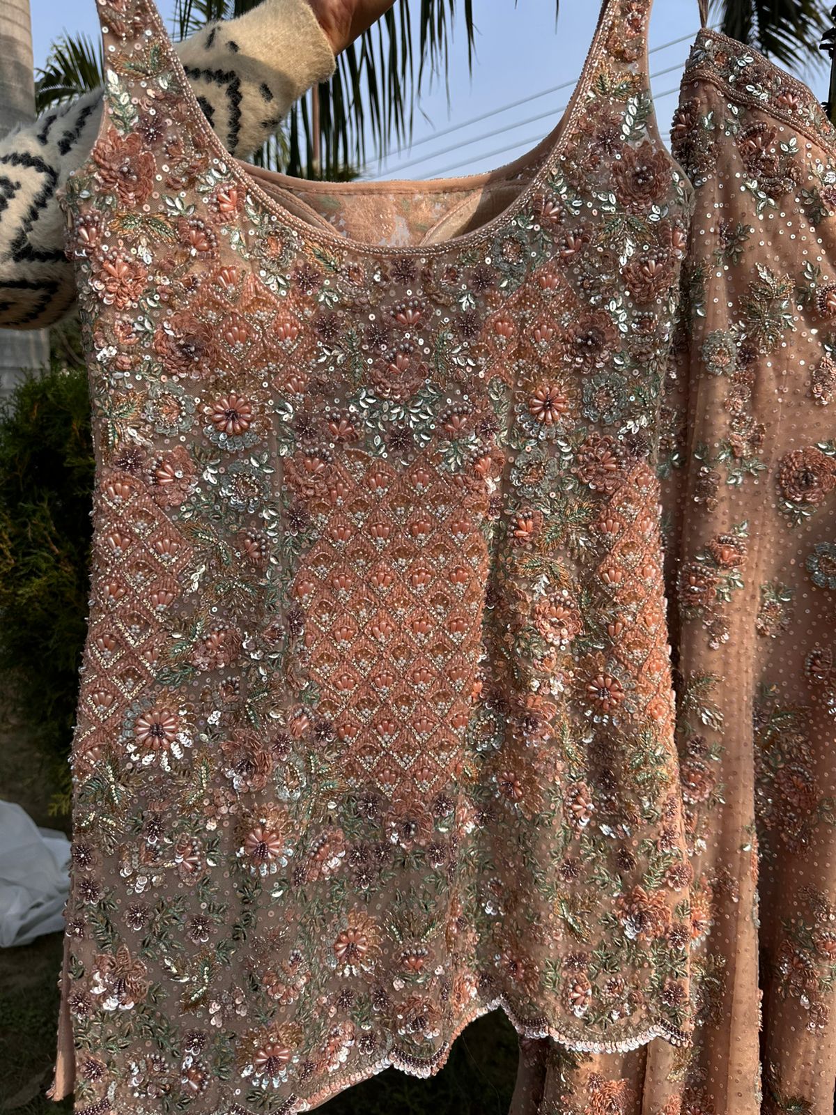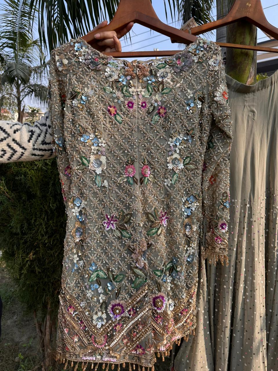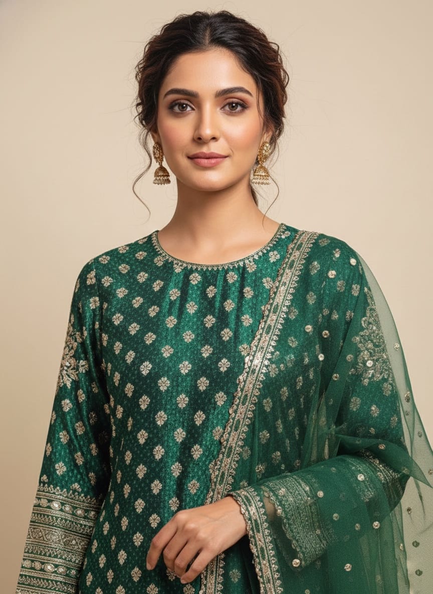 Pure raw silk ivory embroidered kurta palazzo set with dupatta