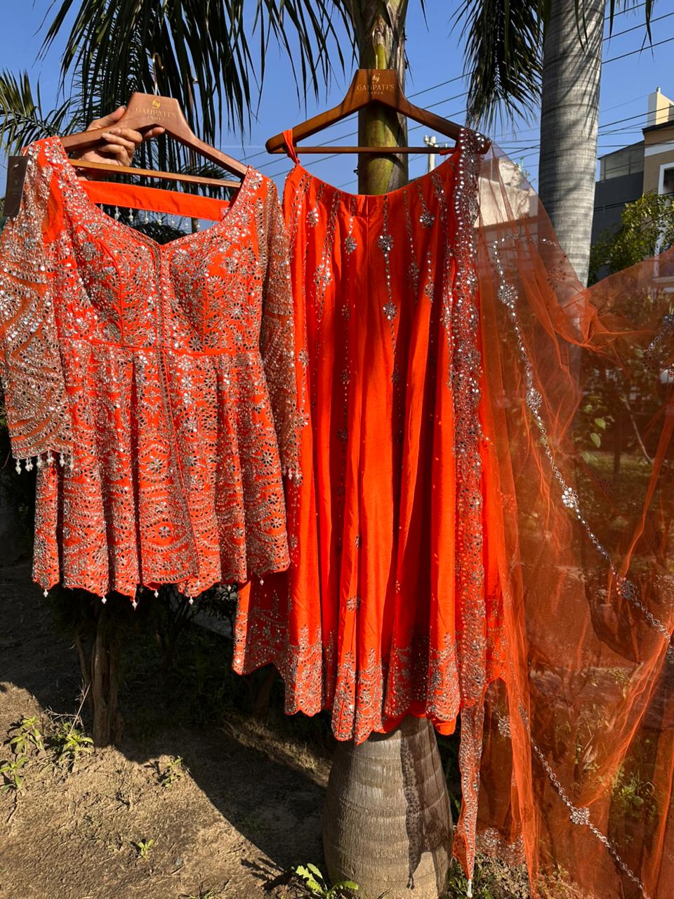 Luxury orange shimmer festive suit