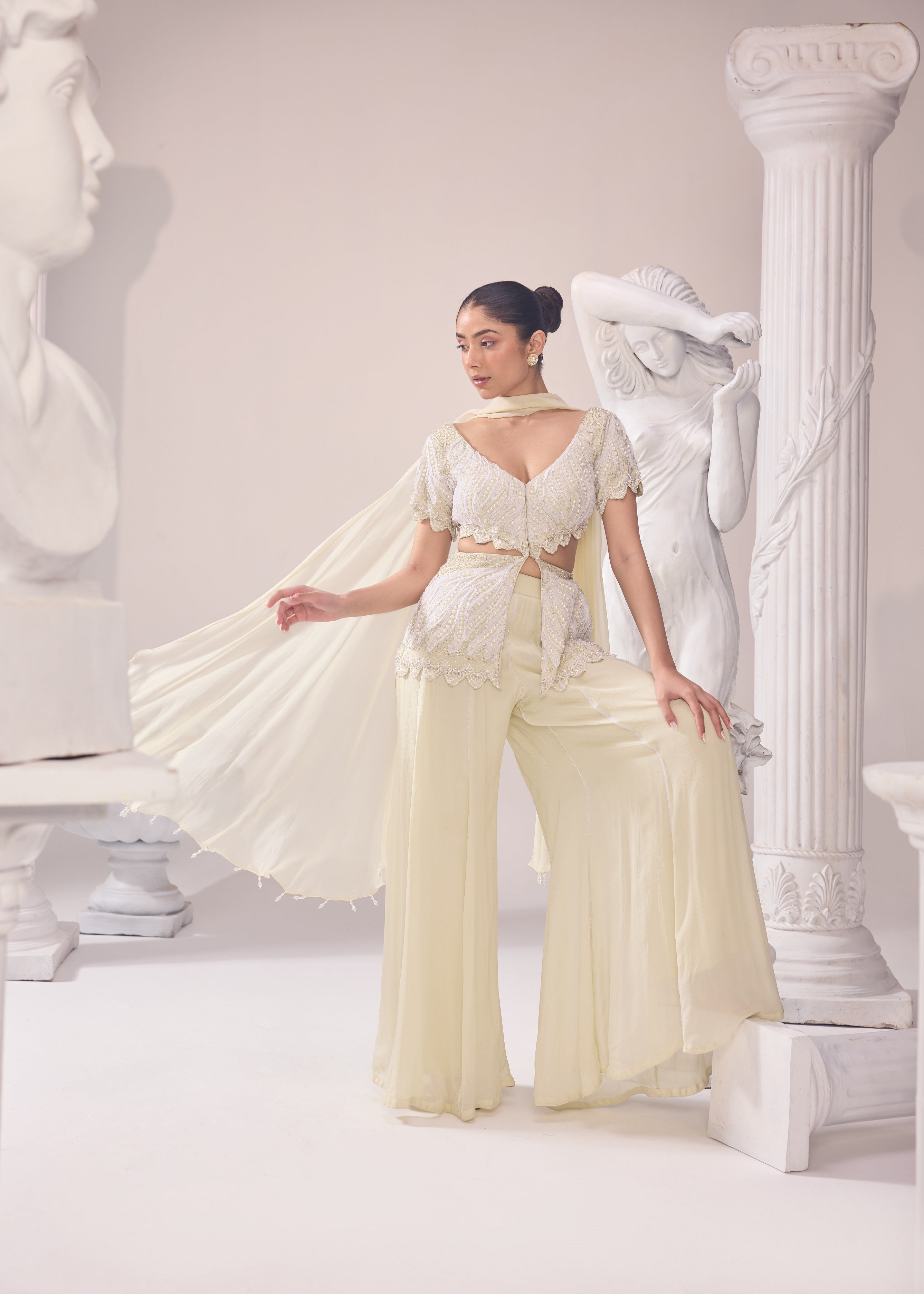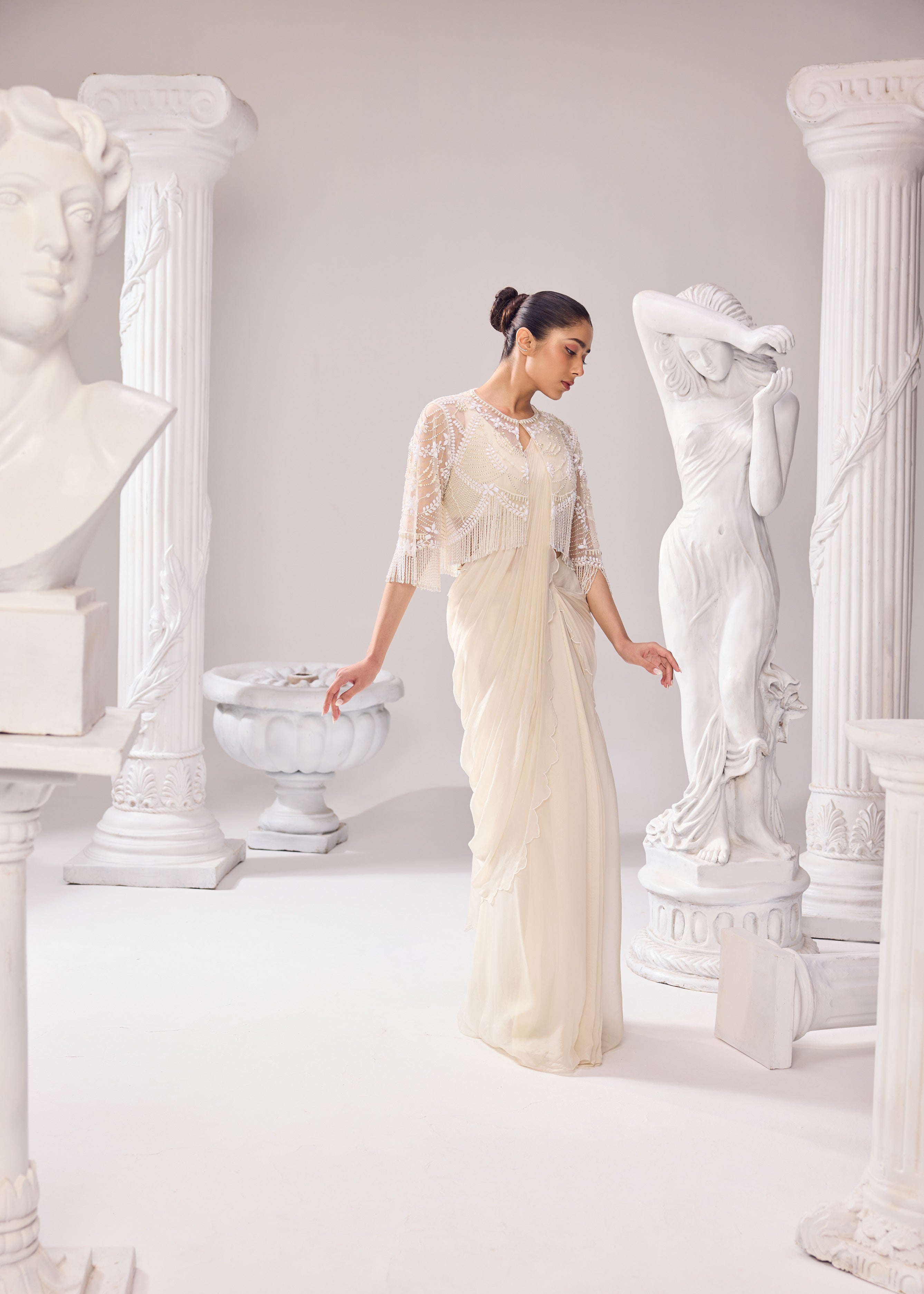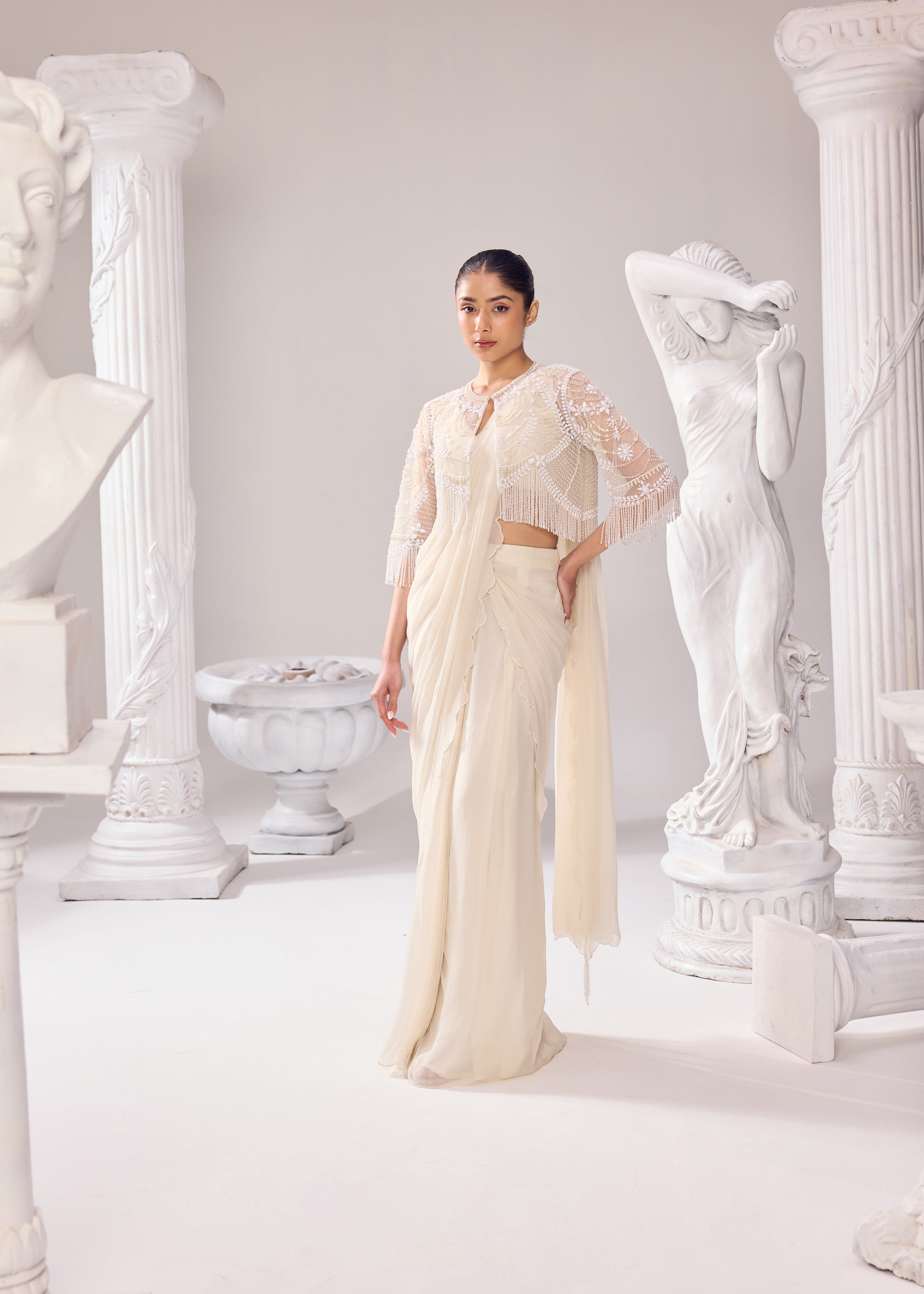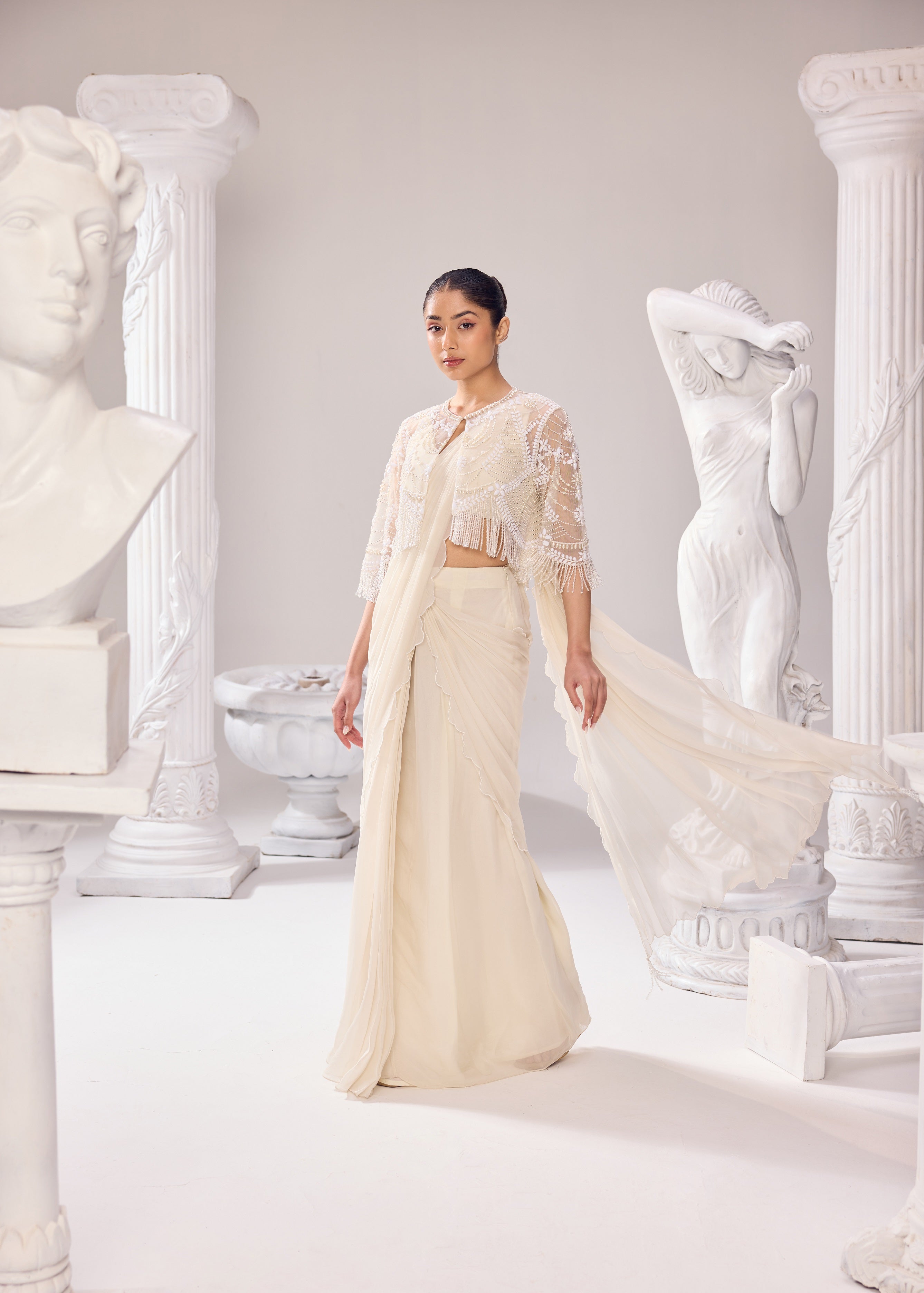Ivory drape saree