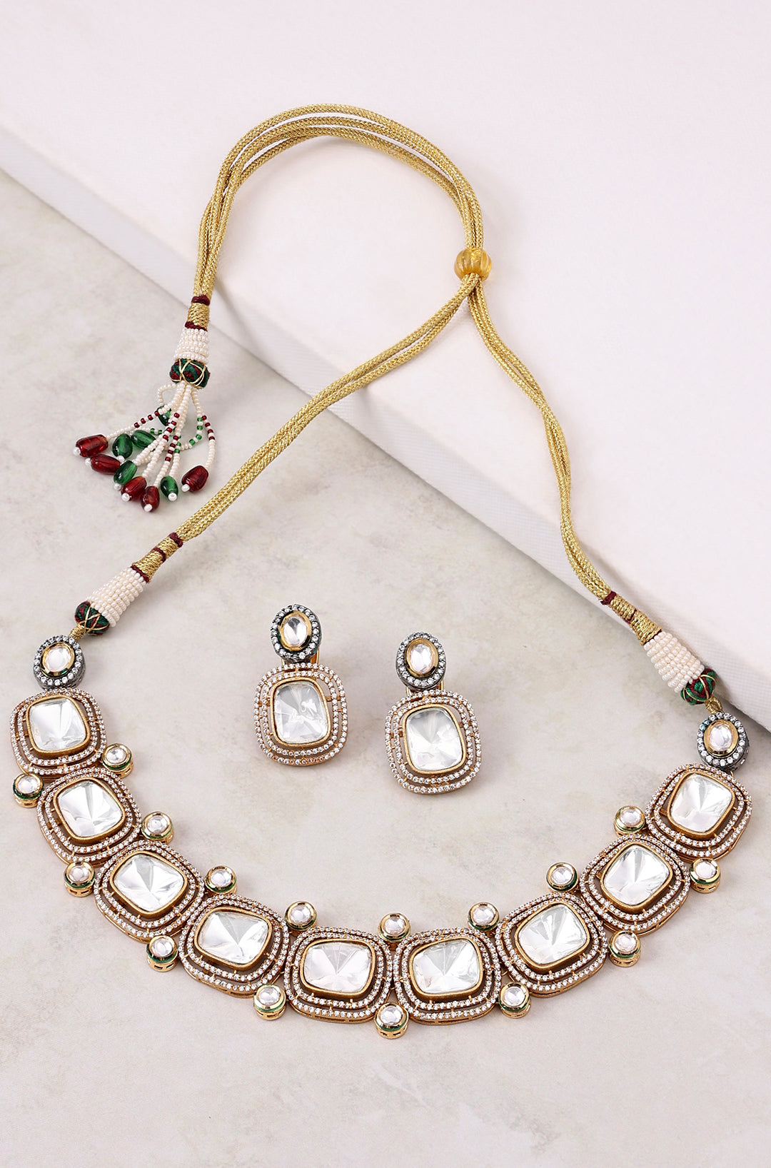 Gold tone polki necklace set