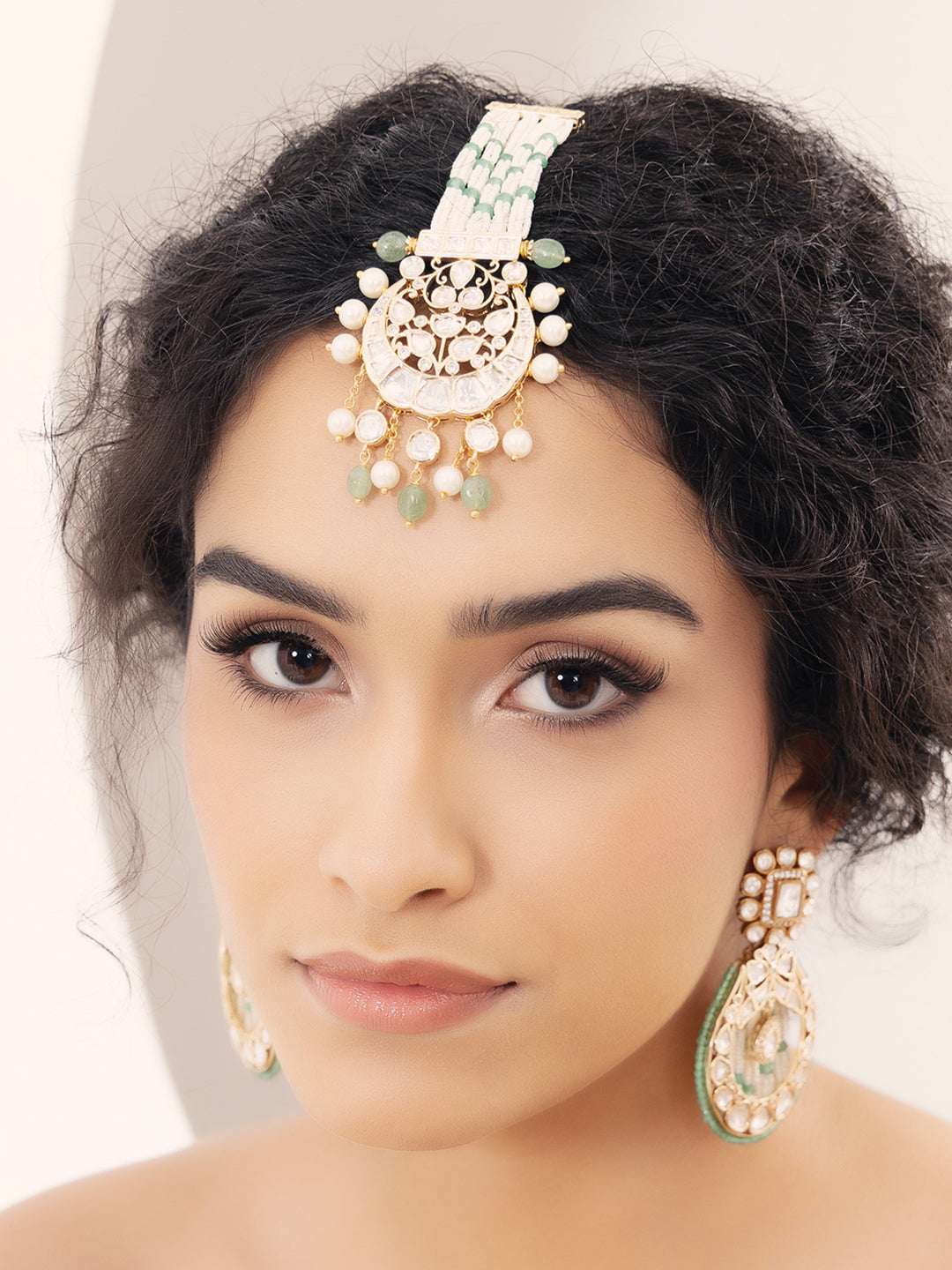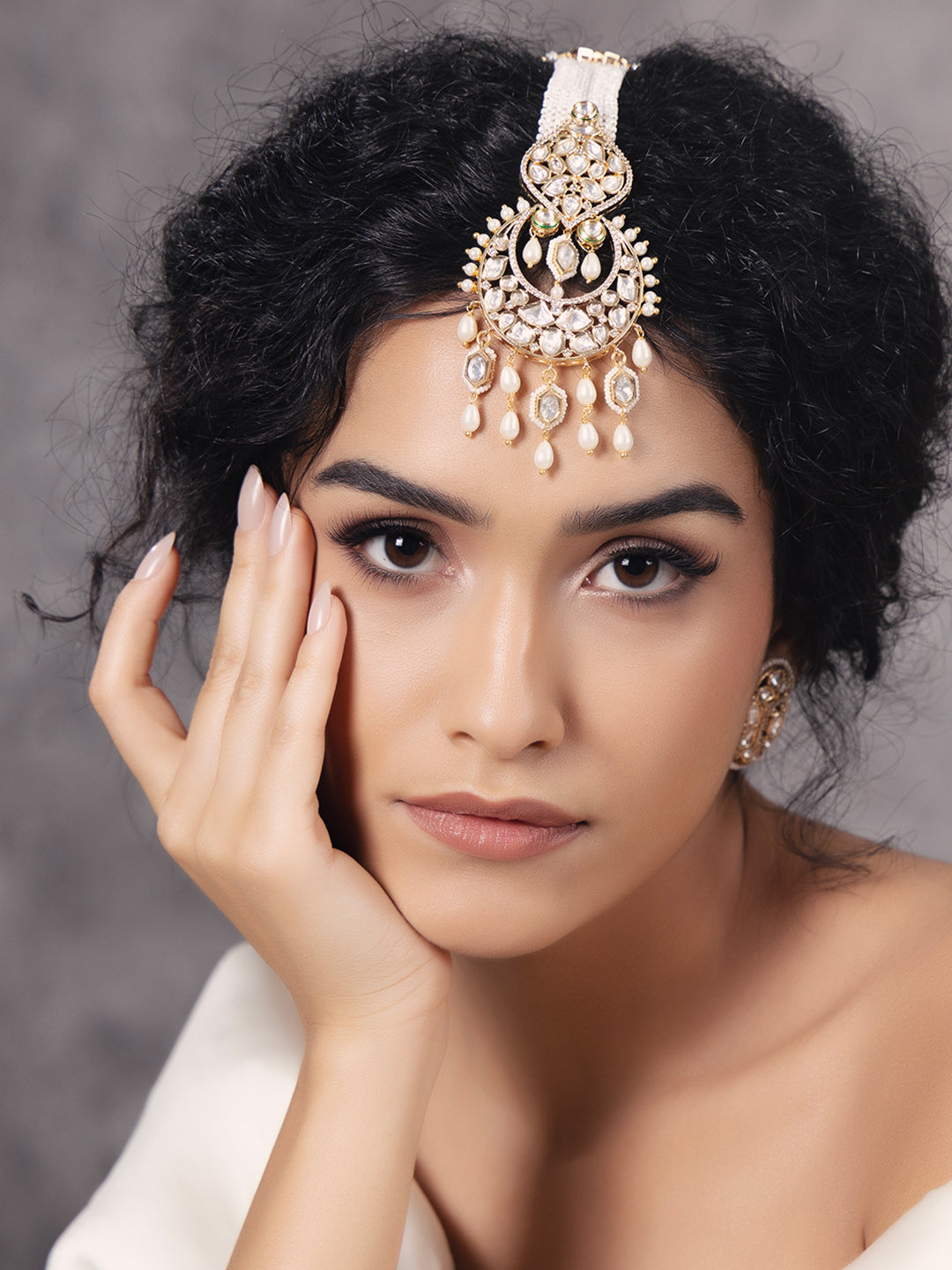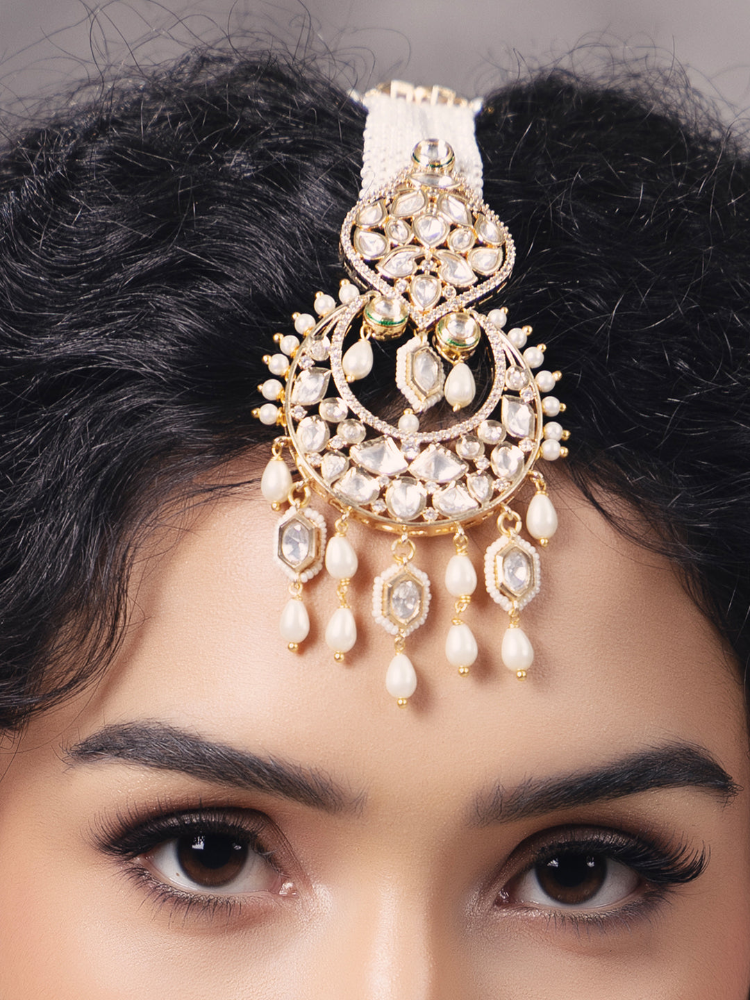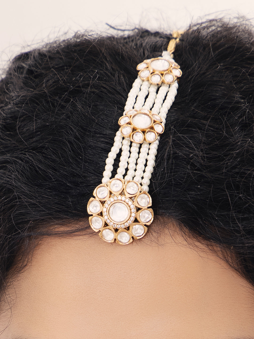 Polki-pearl radiant maang tikka