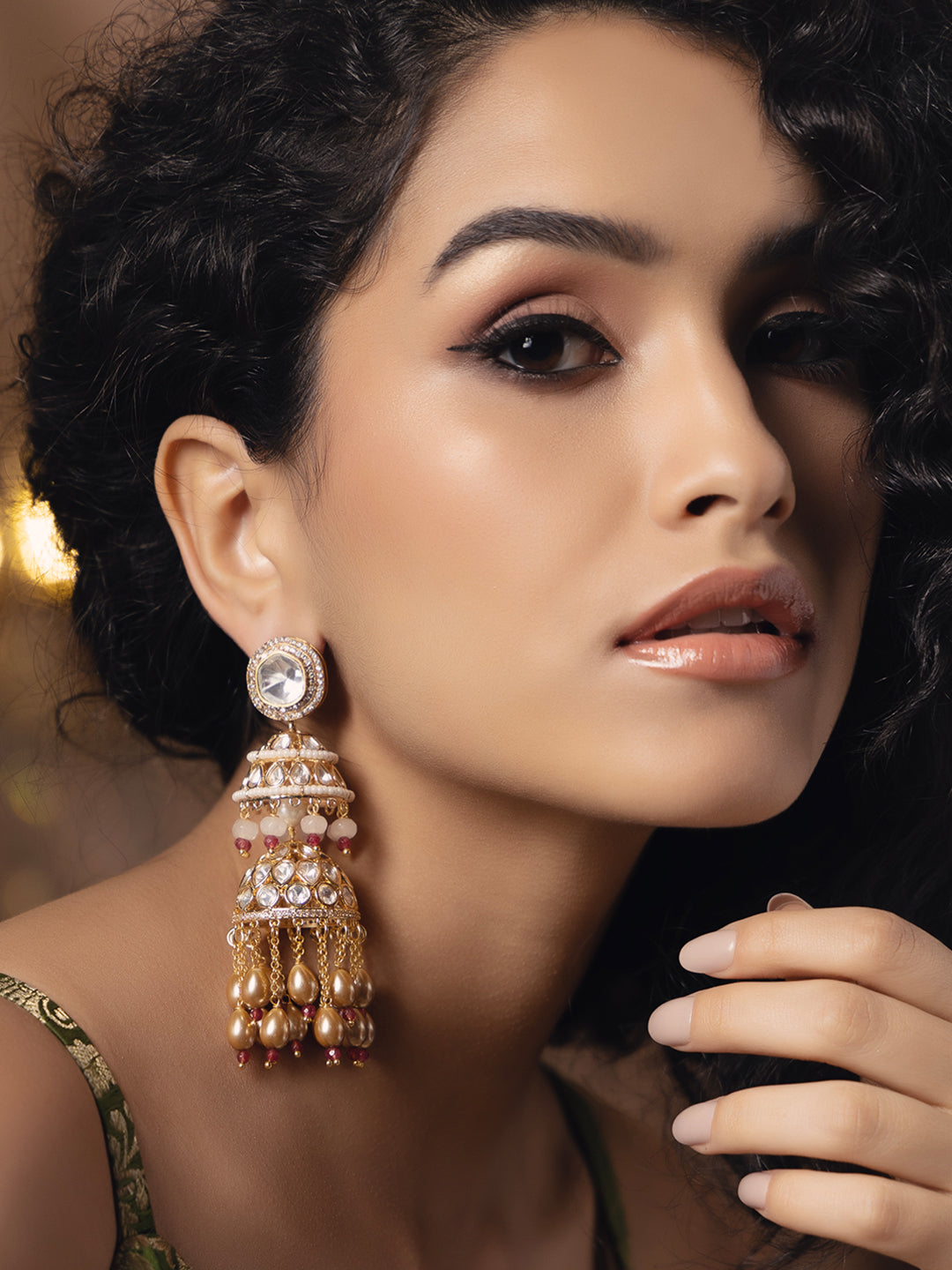 Royal kundan polki chand baali earring