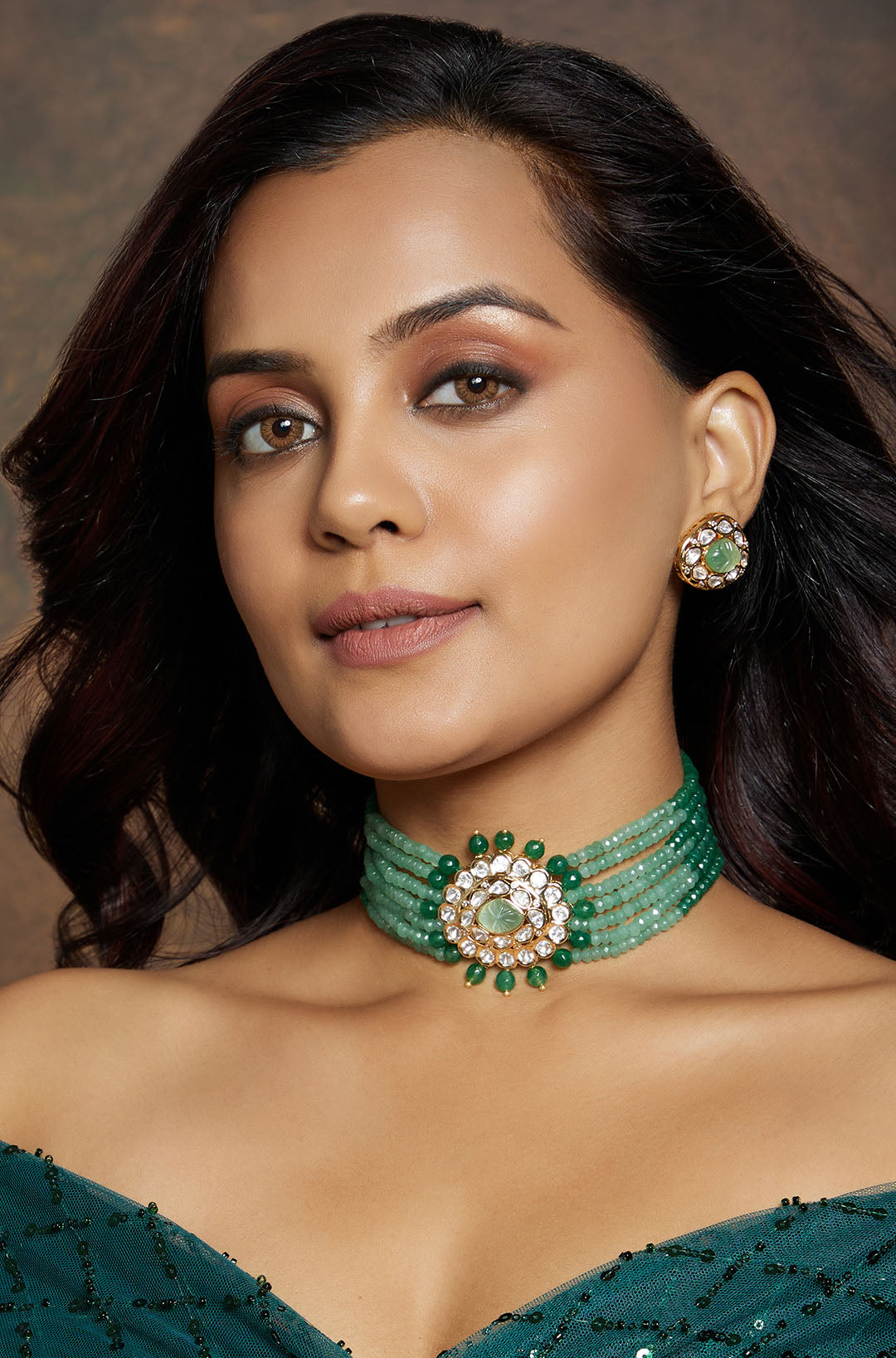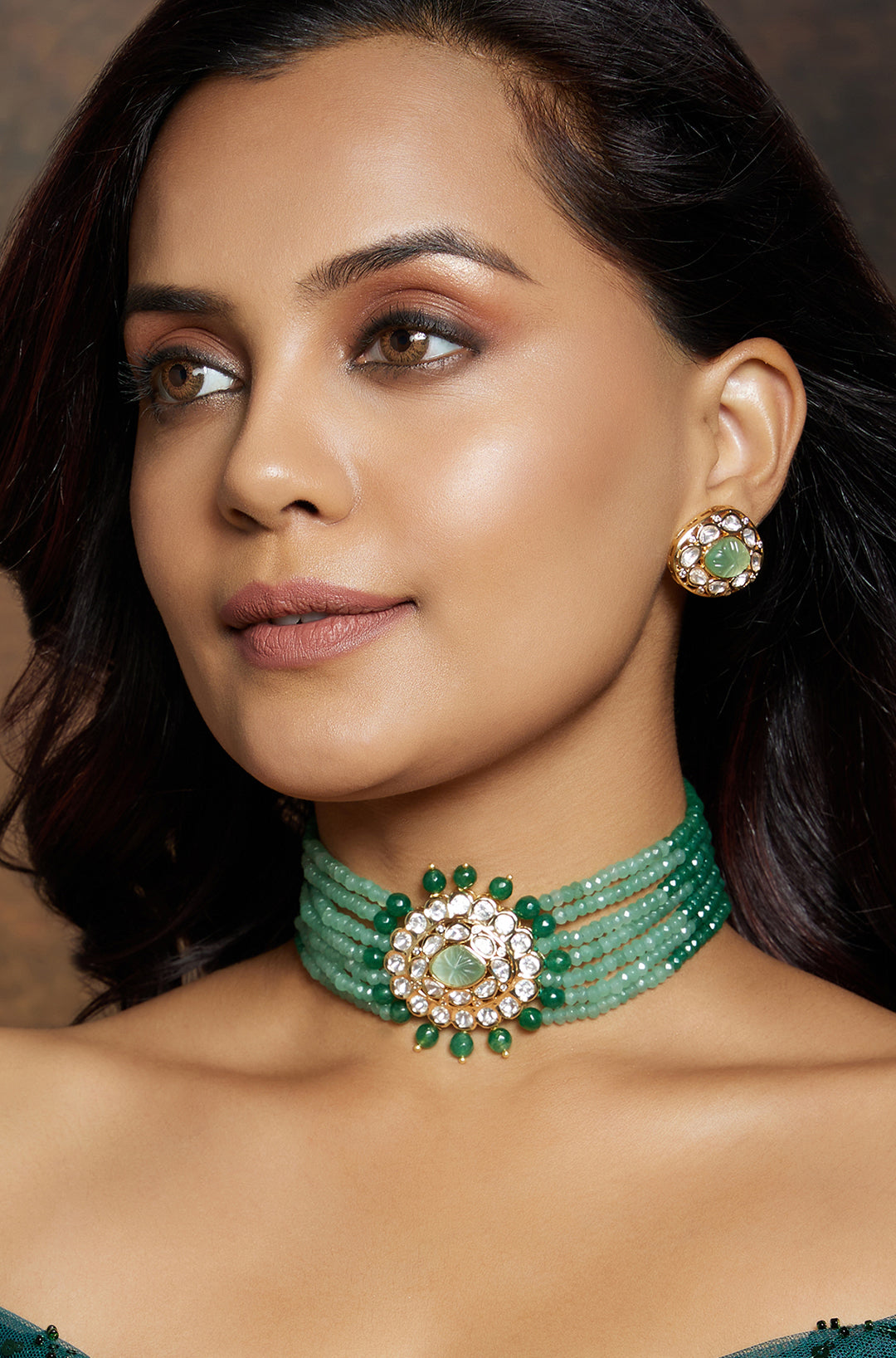 Multi shaded green polki choker set