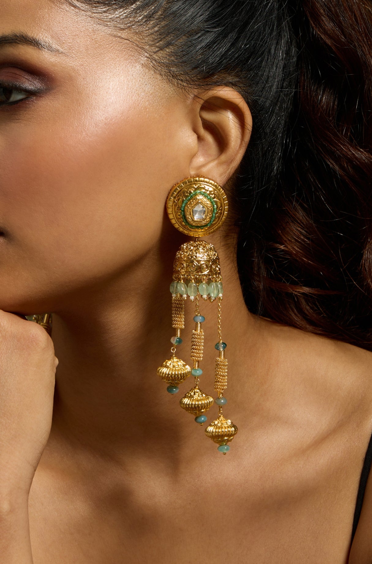 Golden cascade drop earring