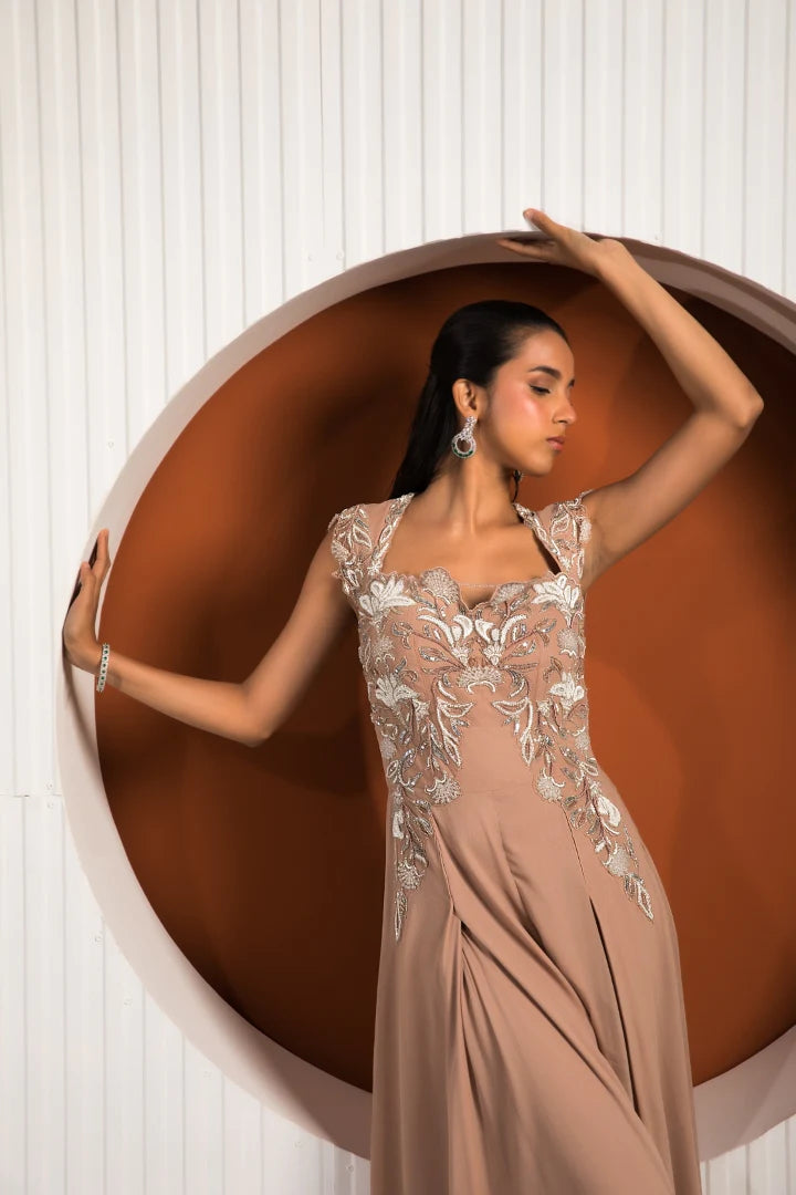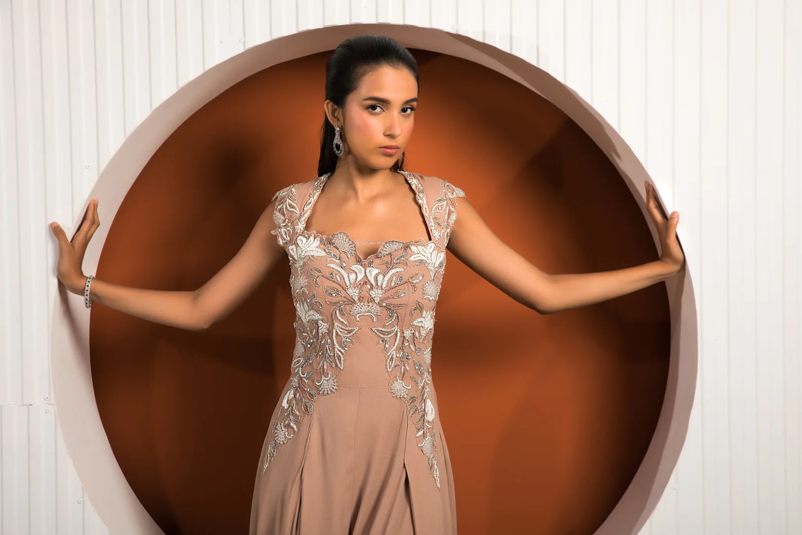 | Featuring one of the hottest colors of the season in a cutout back design, this outfit is sure to spruce up your glam quotient this season. The box pleats and flared hemline give the touch of elegance this number needs to help you shine bright. |