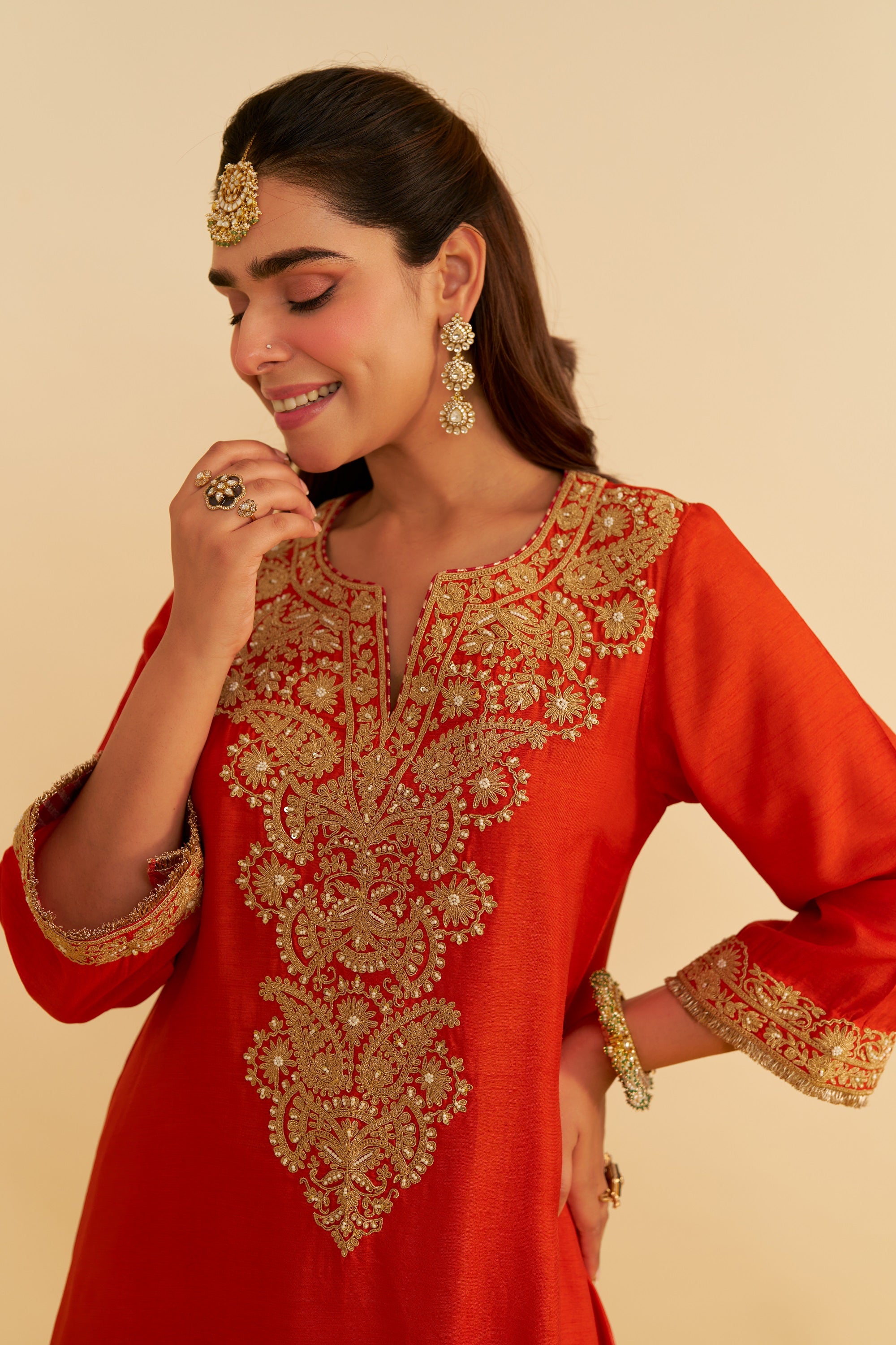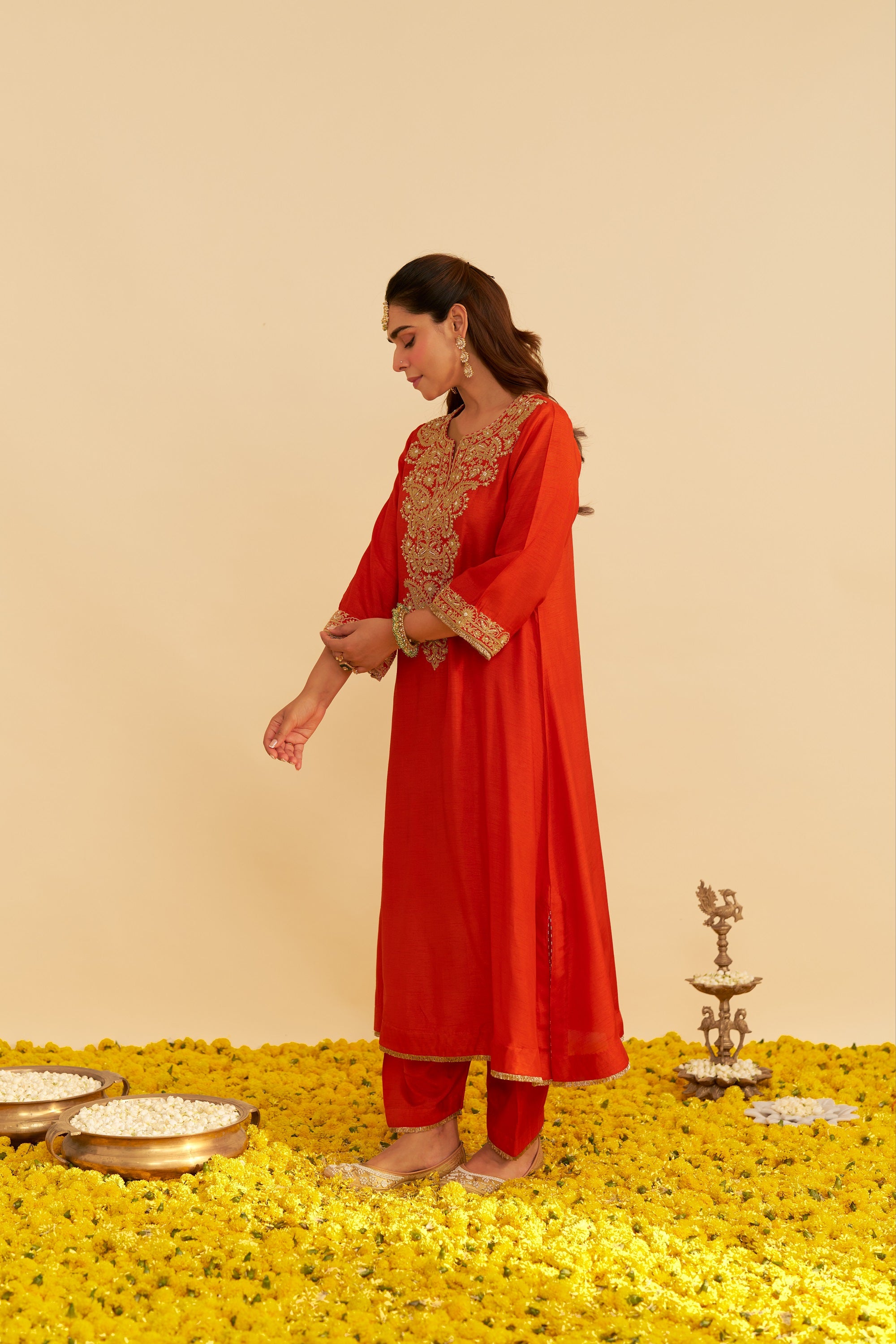Hiba - burnt orange long kaftan with salwar and dupatta