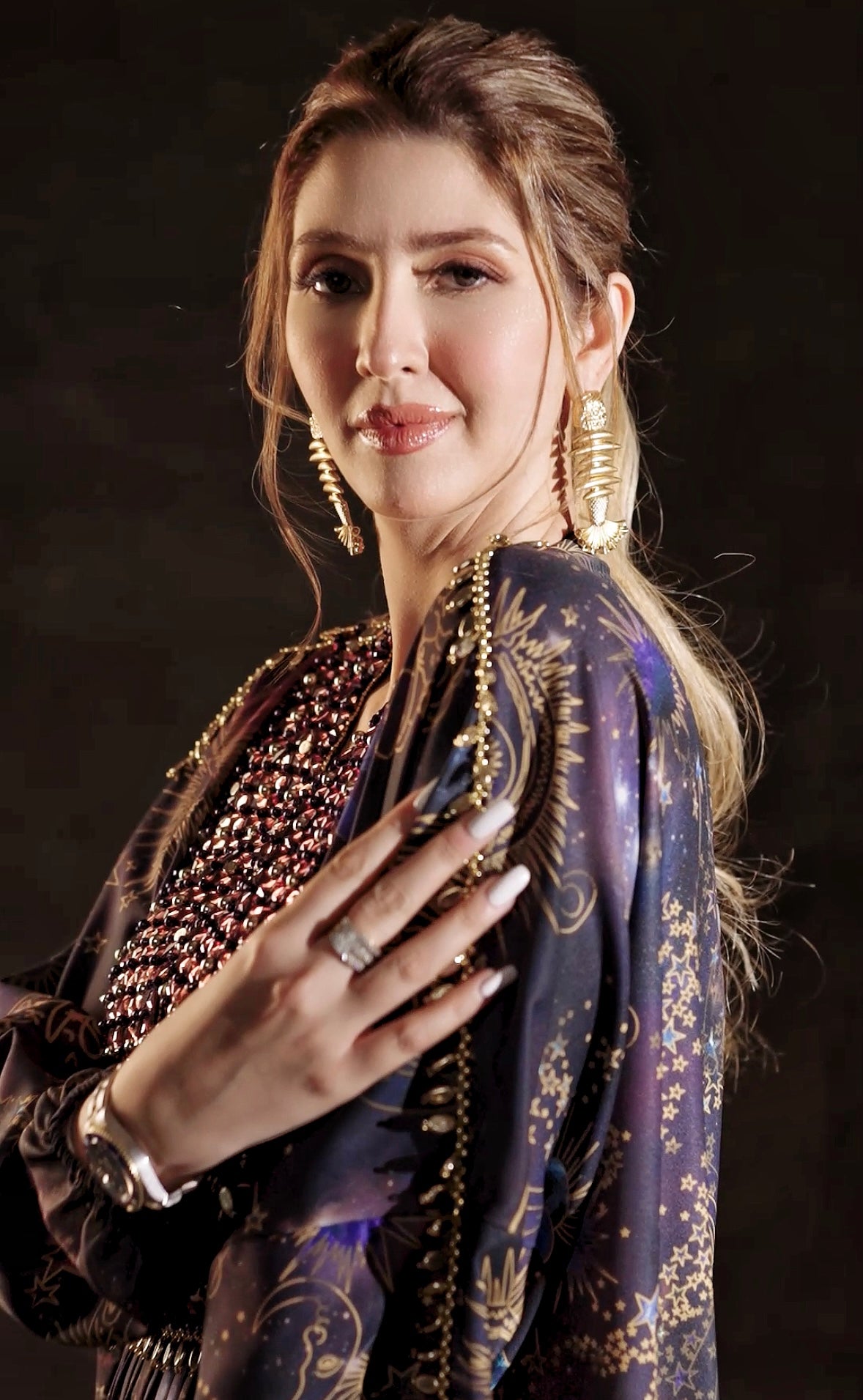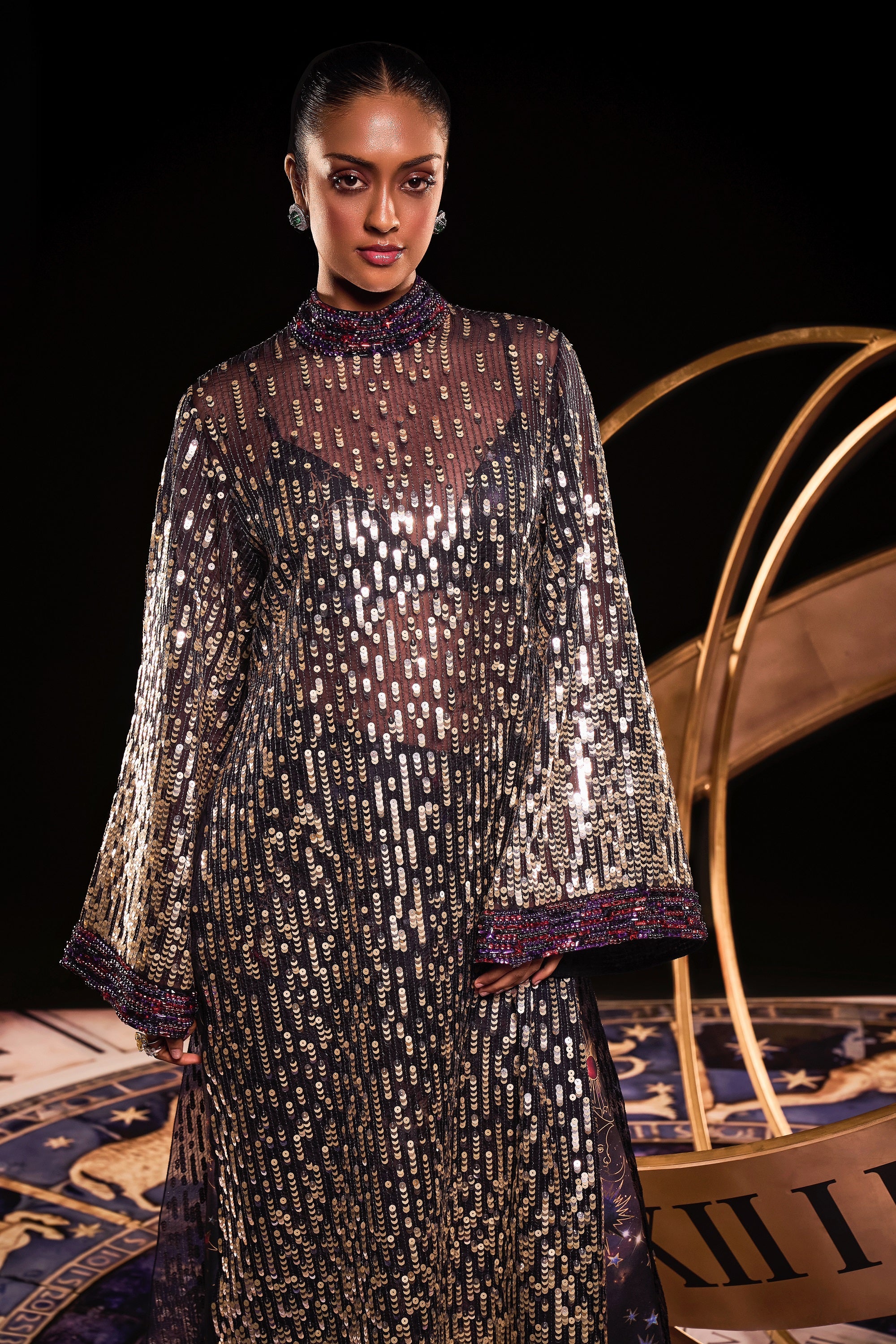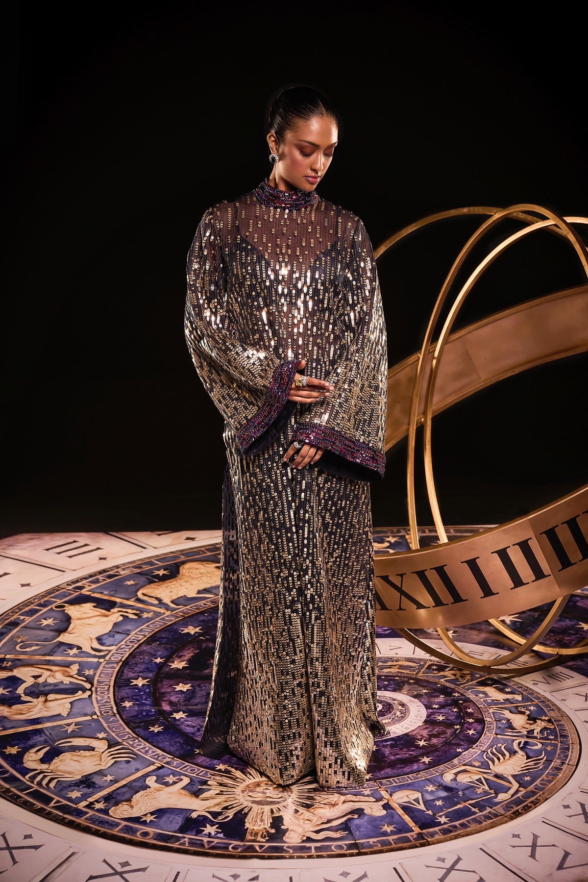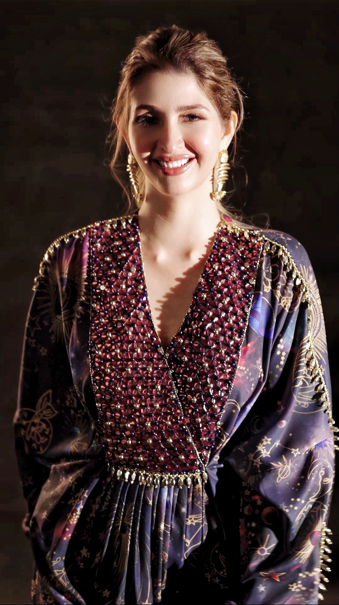 Gold cord draped kaftaan