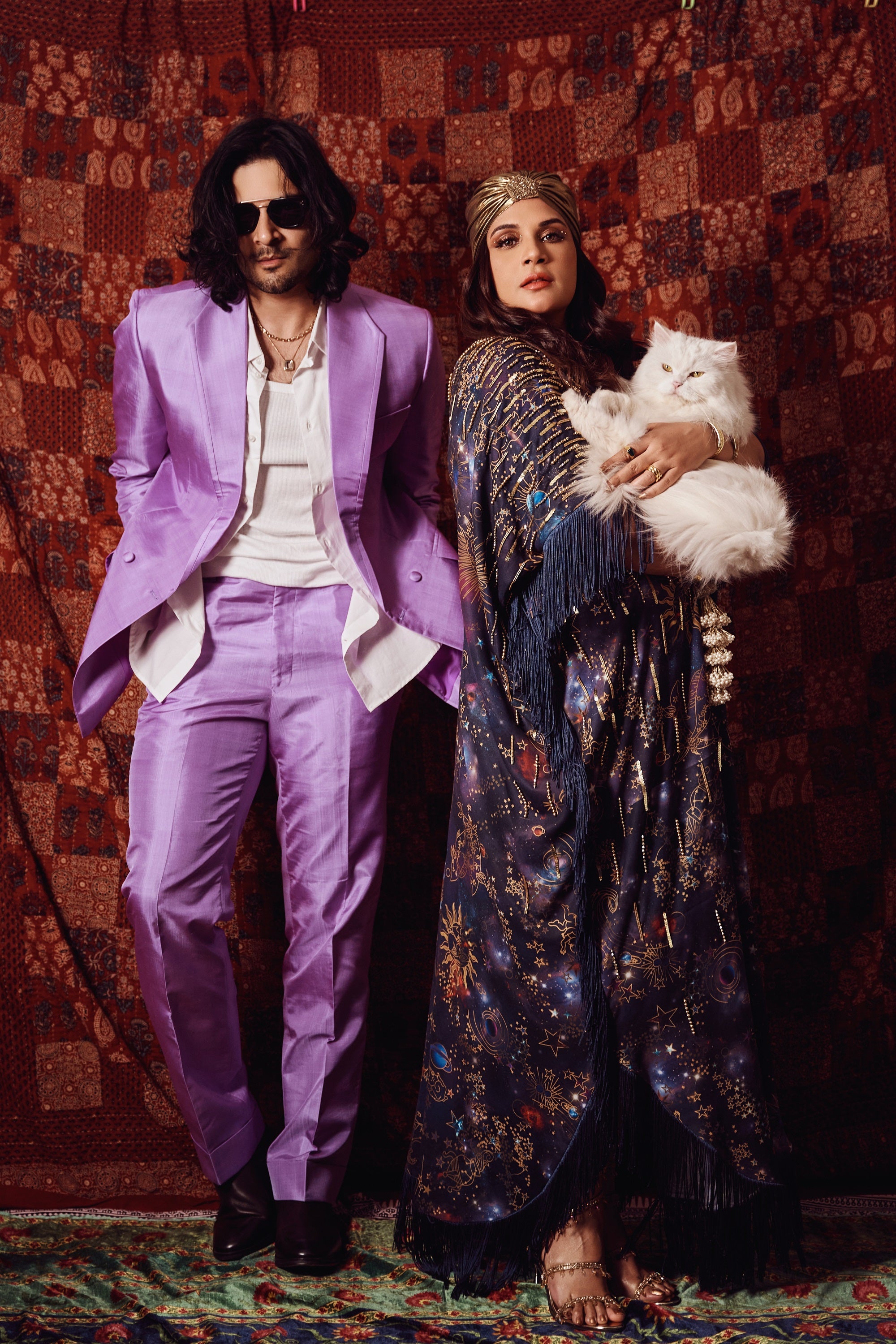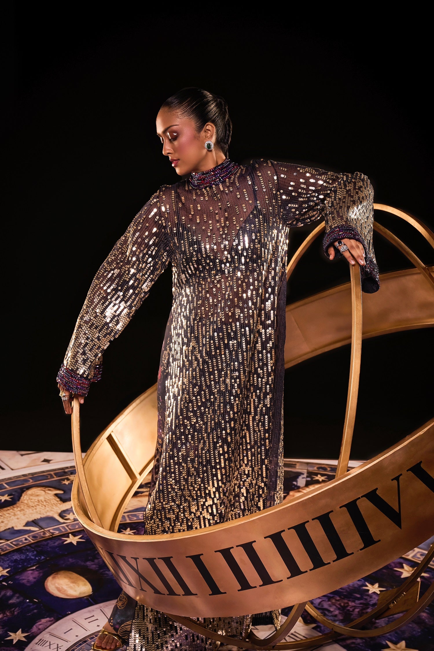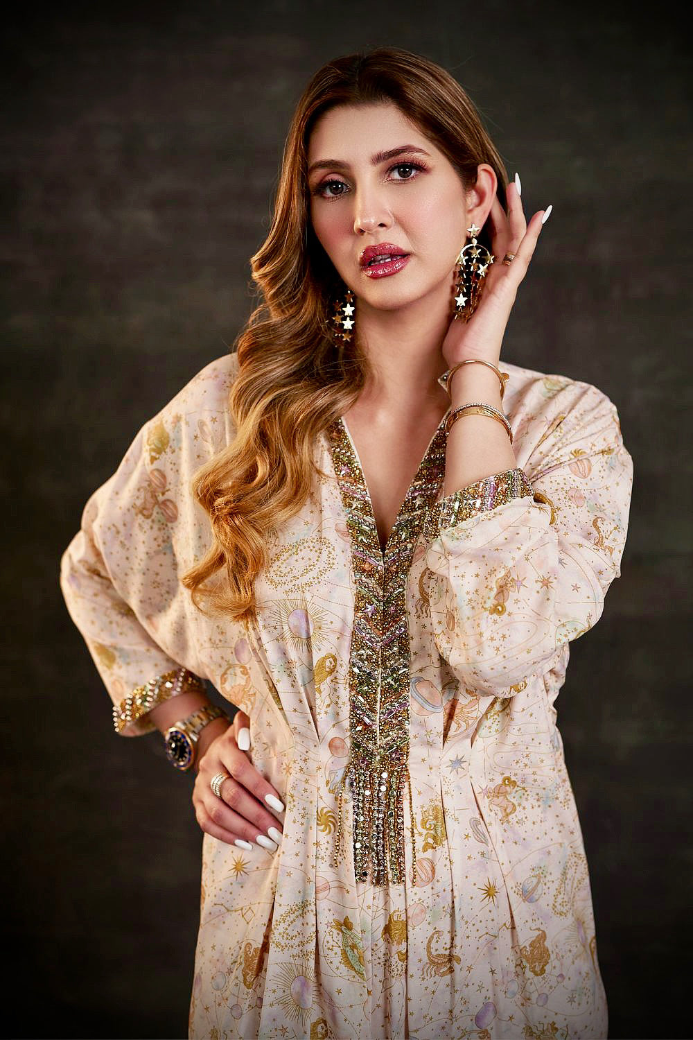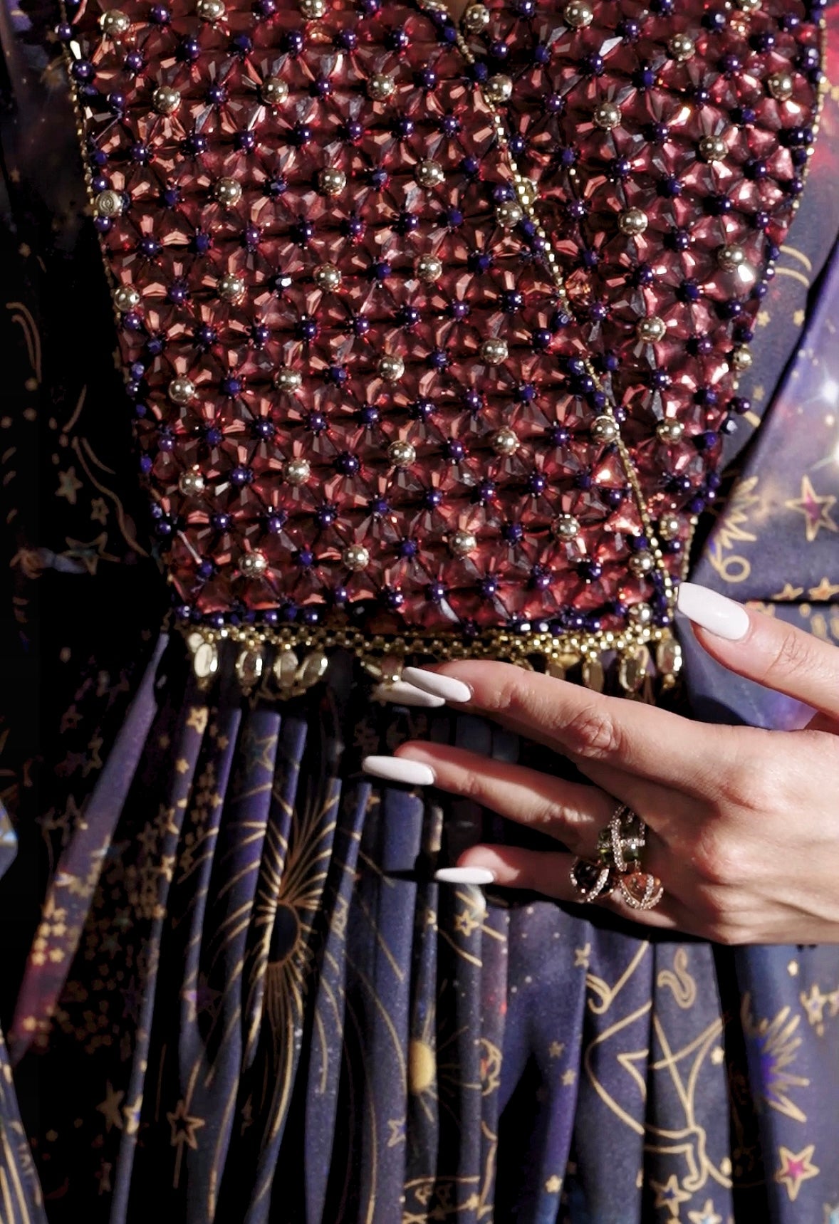 Gold cord draped kaftaan