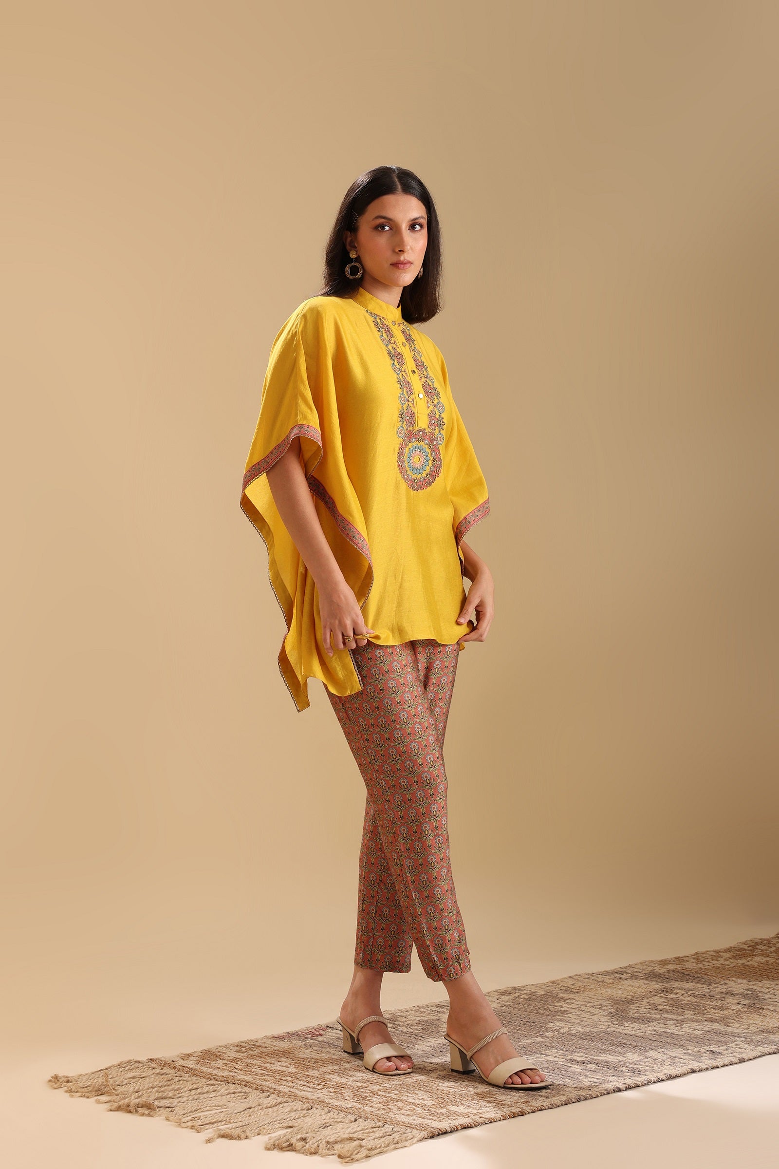 Yellow eraya embellished kaftan set