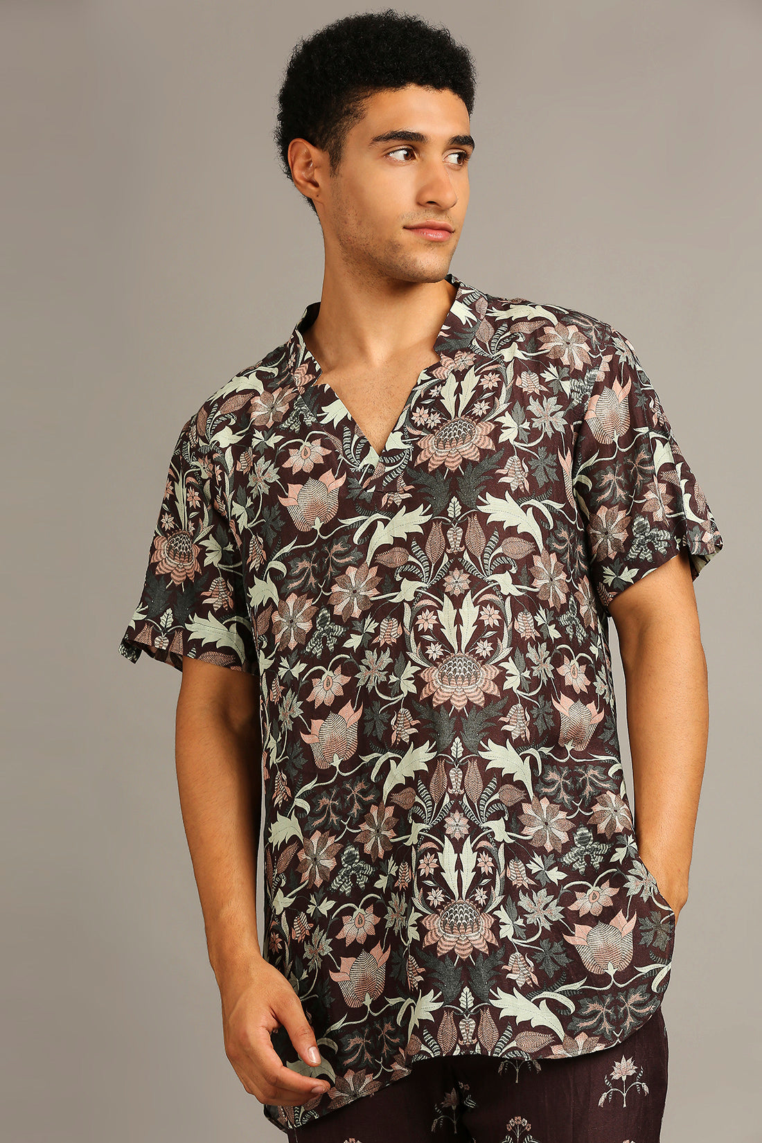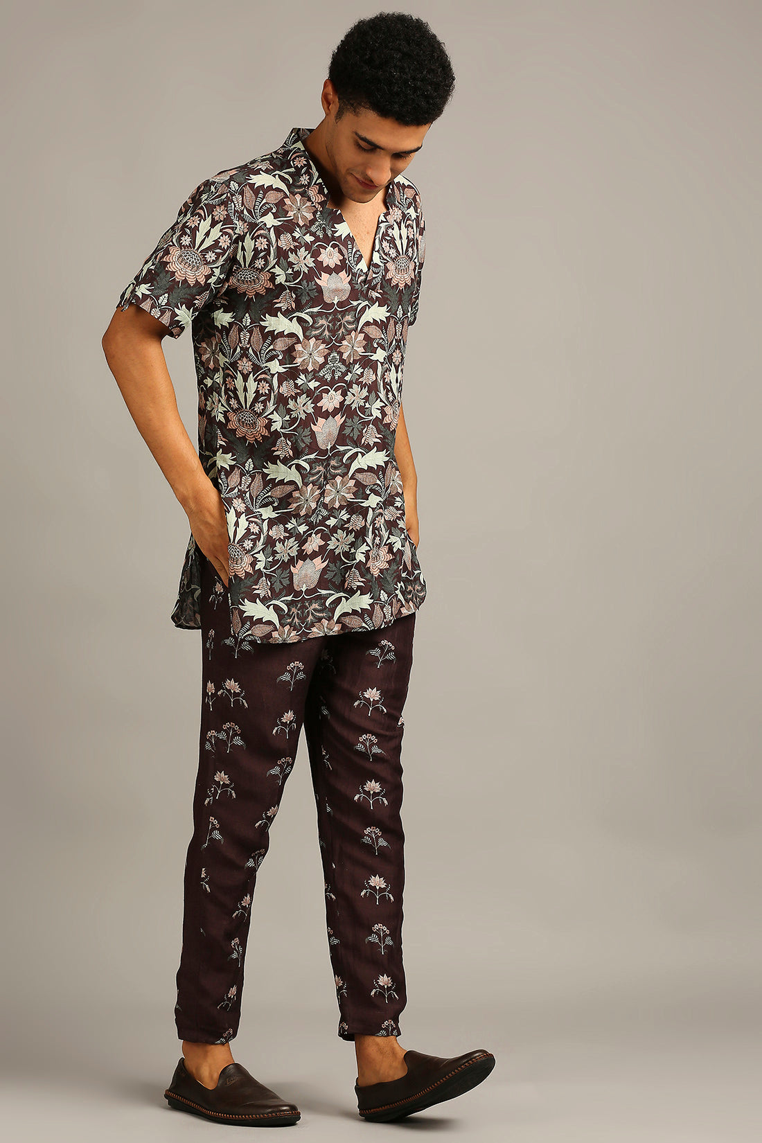 Pastel floral printed bandhgala set