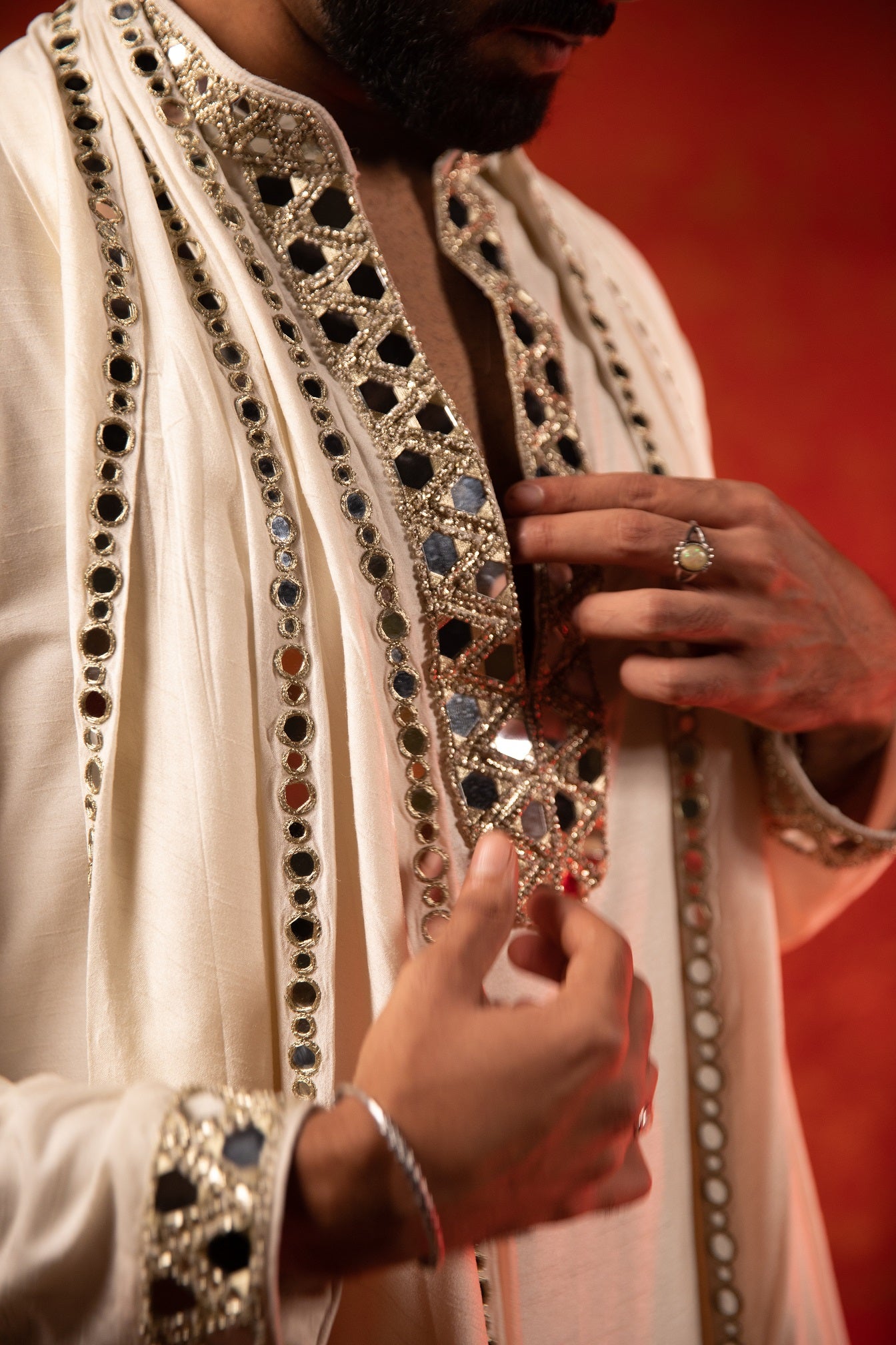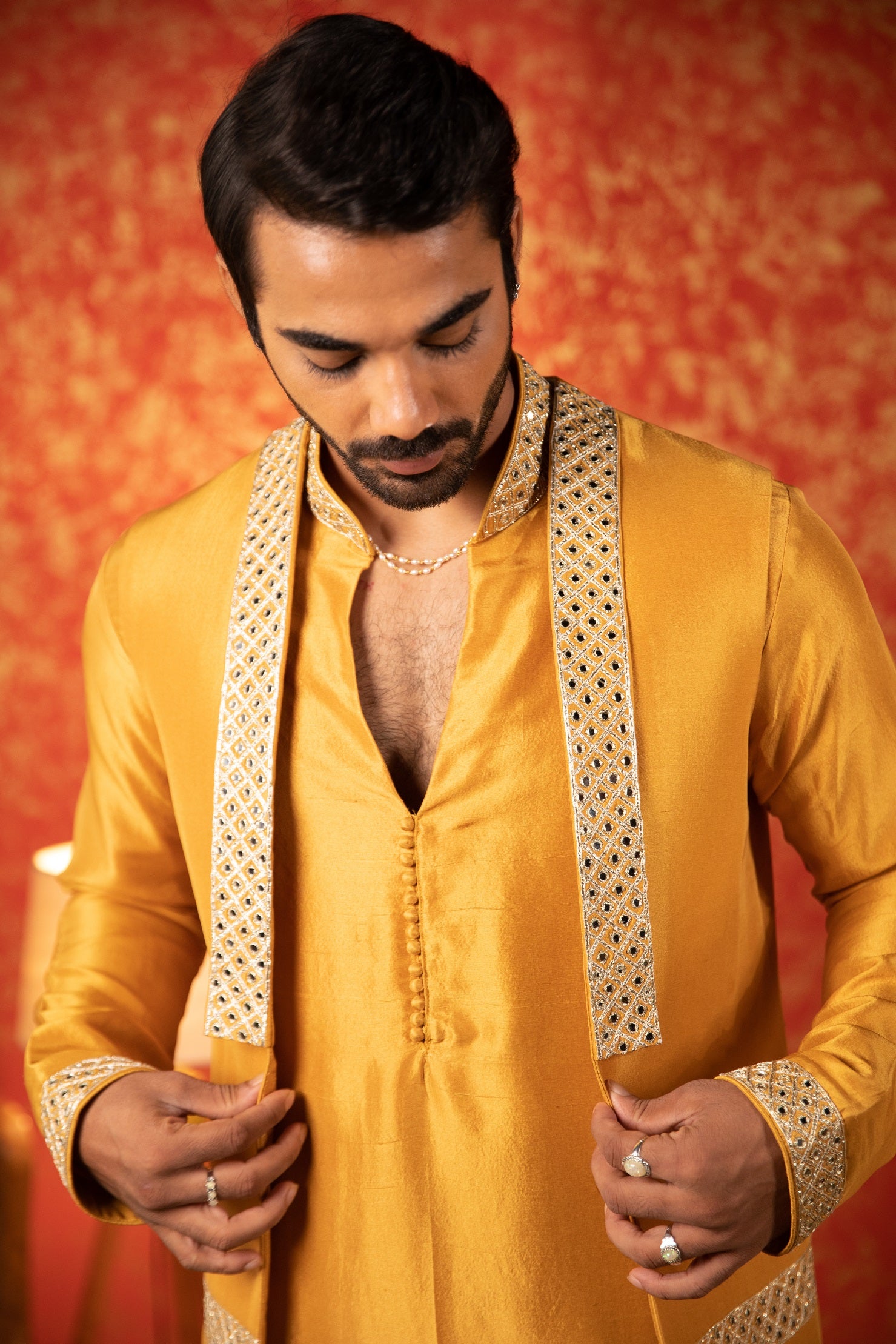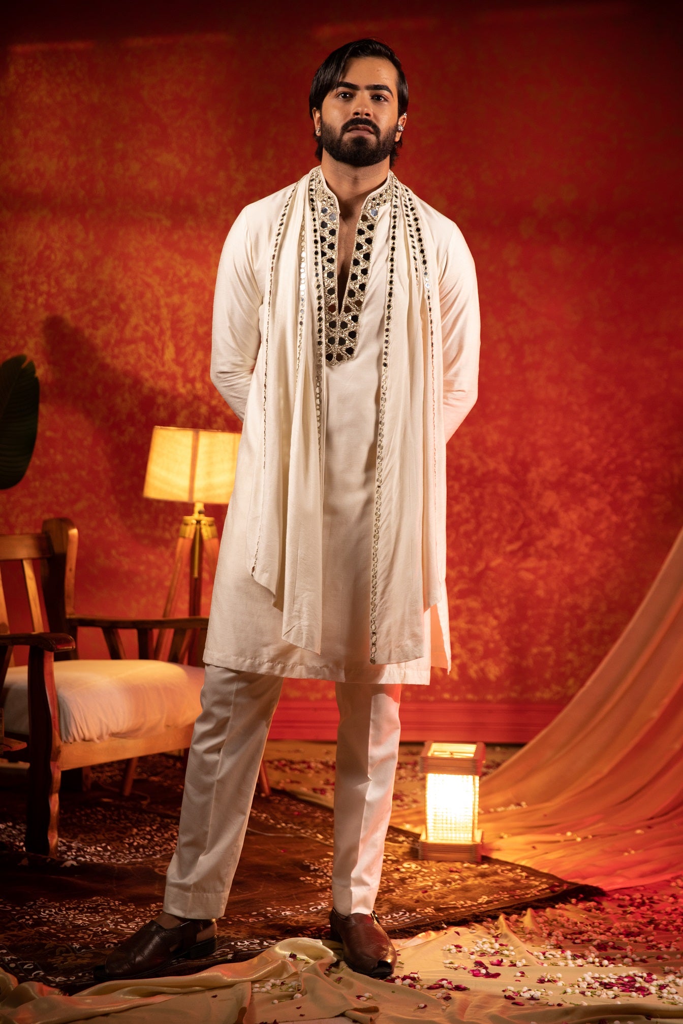 Mirror lapel kurta bandi set